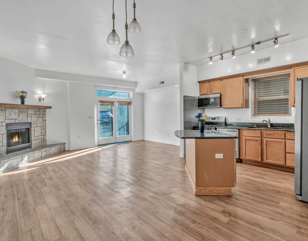 Discover this lovely Woodlawn condo, perfectly situated close to the University of Chicago and the exciting new Obama Presidential Center. The unit features beautiful hardwood floors, modern stainless steel appliances, elegant granite countertops, and the convenience of an in-unit washer and dryer. It offers three generous bedrooms and two full bathrooms. The main suite provides plenty of closet space, a luxurious ensuite bathroom with a relaxing Jacuzzi tub, and a spacious separate shower. Plus, you'll enjoy cozy evenings by the gas fireplace, stylish lighting fixtures throughout, a private backyard patio for outdoor enjoyment, and a dedicated parking spot for your convenience. This home combines comfort, style, and practicality in a welcoming community.
