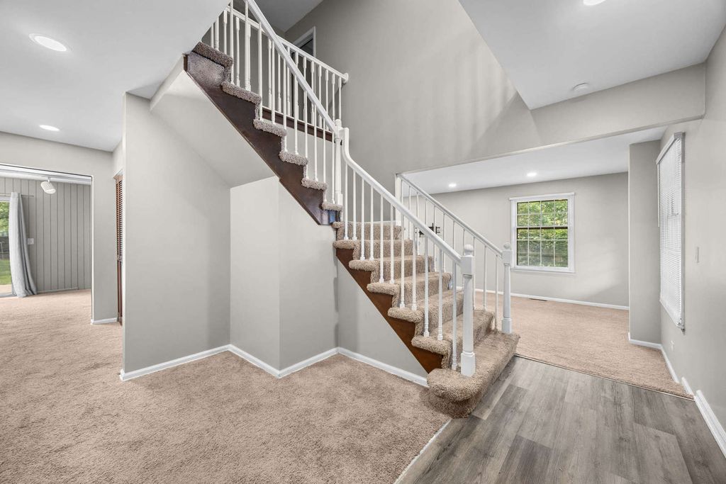 Stunning Colonial on Quiet Cul-de-Sac in Wheeling! This beautifully updated home offers an open-concept floor plan features a gourmet kitchen with custom cabinetry, stainless steel appliances, quartz countertops, and a subway tile backsplash that flows into the adjoining eating area. Enjoy a sun-filled living room, a cozy family room with a brick fireplace, a formal dining room, and a convenient first-floor laundry/mudroom. The spectacular primary suite includes a sitting area, private balcony, walk-in closet, spa-like bath with dual vanities, shower, and a freestanding tub. Three additional generously sized bedrooms with ample closet space. Additional highlights include hardwood floors, fresh paint, carpet, a full basement, attached 2 car garage with extra spots in the driveway, and an oversized backyard with a patio-perfect for entertaining.