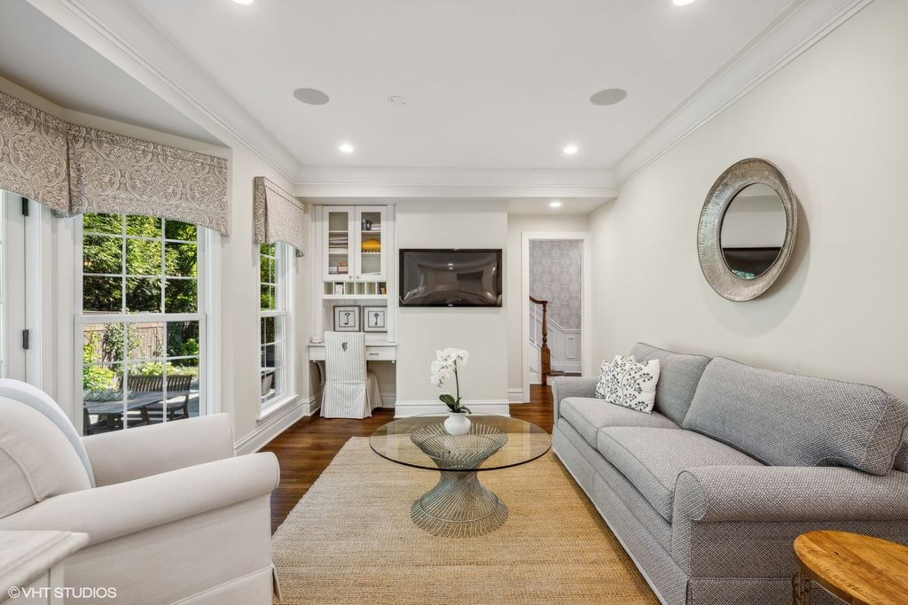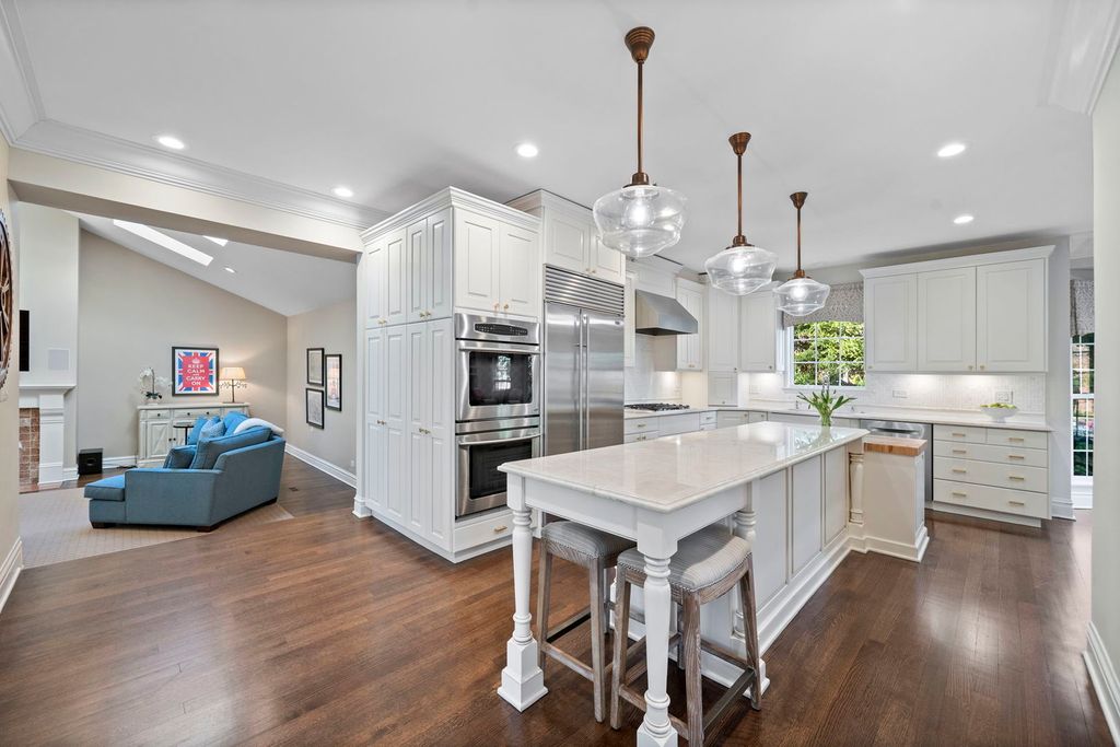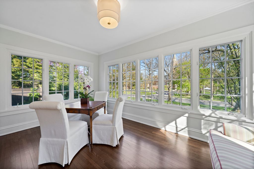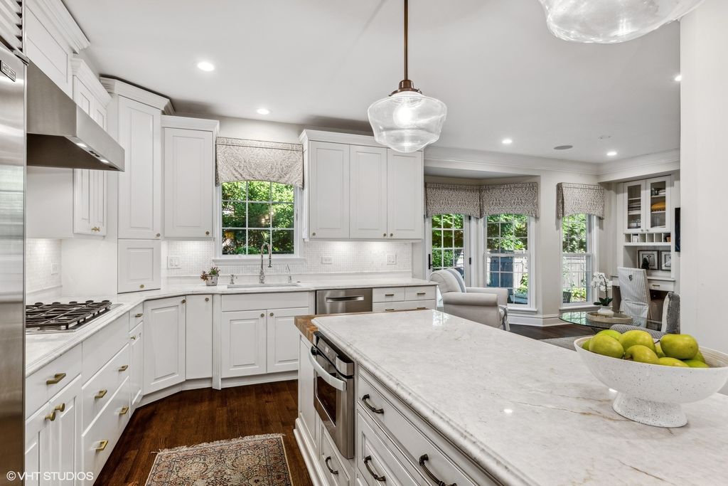 Extraordinary opportunity for an in town oasis in the heart of East Winnetka on ~ 1/2 acre of lushly landscaped grounds with walk to everywhere. A private, fully renovated classic located in a premier location with 150 ft frontage, just steps to town, train, beach, Community House and more. Meticulously transformed and completely reimagined inside and out with one of the best first floor living spaces, this 6 bedrooms and 5.1 bath home showcases the highest quality finishes and attention to detail, including a thoughtfully redesigned floor plan for today's lifestyle, exquisite architectural millwork and replaced hardwood floors, every modern amenity, and newer sun-filled windows with serene green views. Complete reworking of the landscape and hardscape by Midwest Arbor resulted in gorgeous panoramic grounds, gardens, grassy play areas, and bluestone patios, creating an incredible outdoor living environment. Spanning the front of the home, a bluestone patio overlooking the professionally manicured yard with magnificent mature trees, welcomes you to a picturesque verdant enclave. The inviting foyer with elegant wainscoting leads into a gracious living room complete with a gas fireplace framed by a handsome mantel adjacent to a bright, airy sunroom with stunning views of the breathtaking grounds. The dining room, accented with built-ins, flows seamlessly into the exceptional, recently reconfigured and renovated, cook's kitchen with a long island with new quartzite countertops, new marble backsplash, and high-end appliances. Adjacent is a sitting area perfect for play or relaxation with access to a private bluestone patio to enjoy al fresco dining and outdoor living. The sunny kitchen opens to the incredible family room with soaring ceilings, skylights, centered by a handsome fireplace, with patio doors opening to a stunning bluestone terrace. A great breakfast room, featuring a fireplace and architectural built-ins, shares a bluestone terrace: ideal for casual dining inside and out. Thoughtful design for everyday functionality is evidenced by a fabulous mudroom off of the heated 2 car attached garage and a full bath (great for beach days or muddy pups) on the main level. Upstairs the sublime primary suite is a retreat in itself, with a private office, warm gas fireplace, and laundry. The recently renovated truly luxurious bathroom (2021) features designer marble and tiles, a jacuzzi tub, heated floors, a heated towel rack, gorgeous custom cabinetry and hardware, as well as a spacious custom walk-in closet. Three large additional bedrooms with a renovated hall bath and an ensuite bath . Two of the bedrooms open to a charming sunroom, providing an ideal space for relaxation, homework, or play. Tree top views abound in the sizable 3rd floor with a great hang out space in the expanded rec room, additional bedrooms, a renovated full bath, and a private back staircase ideal for guests or family members needing their own space. The basement provides even more space whether a rec room with workout room, game room, and a wine cellar. The property boasts 4 garage spaces; a 2-car attached garage and a 2-car detached garage. The exterior was revamped with new stucco (2020), skylights, gutters/soffits, and roof (2019). Truly turnkey, this home offers a rare blend of unparalleled elegance, functionality, and privacy steps to shops, restaurants and beaches for a phenomenal East Winnetka lifestyle.