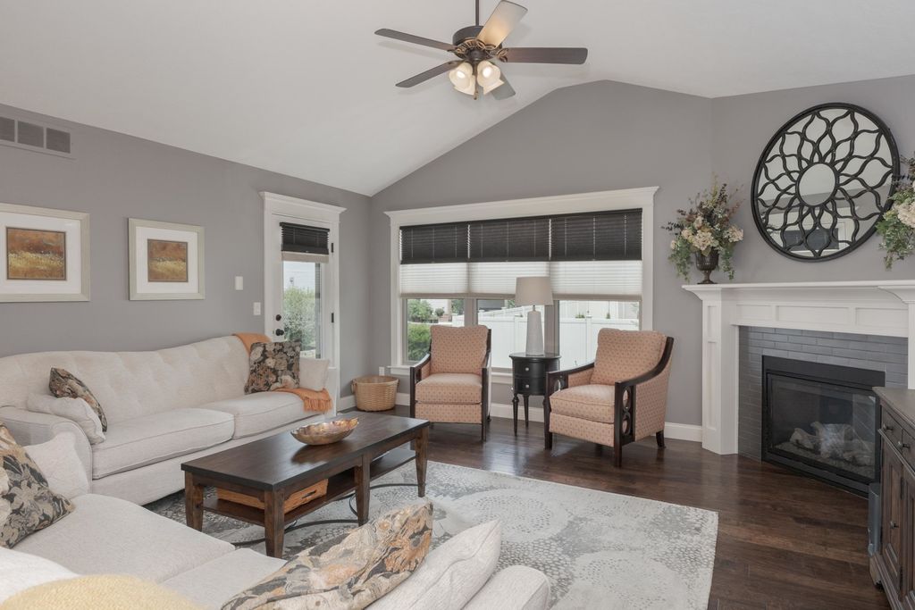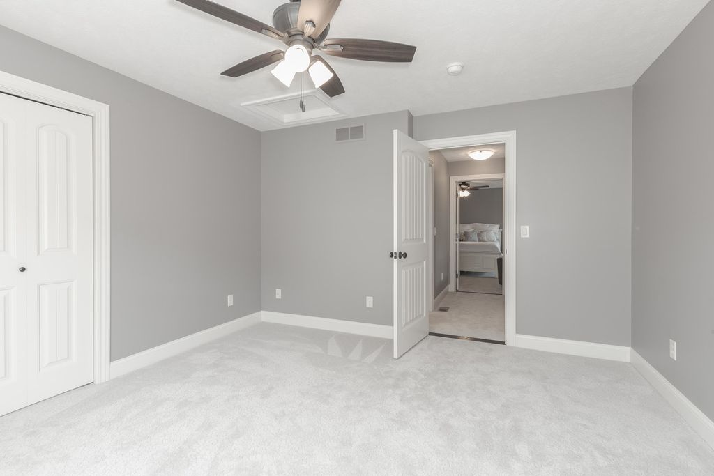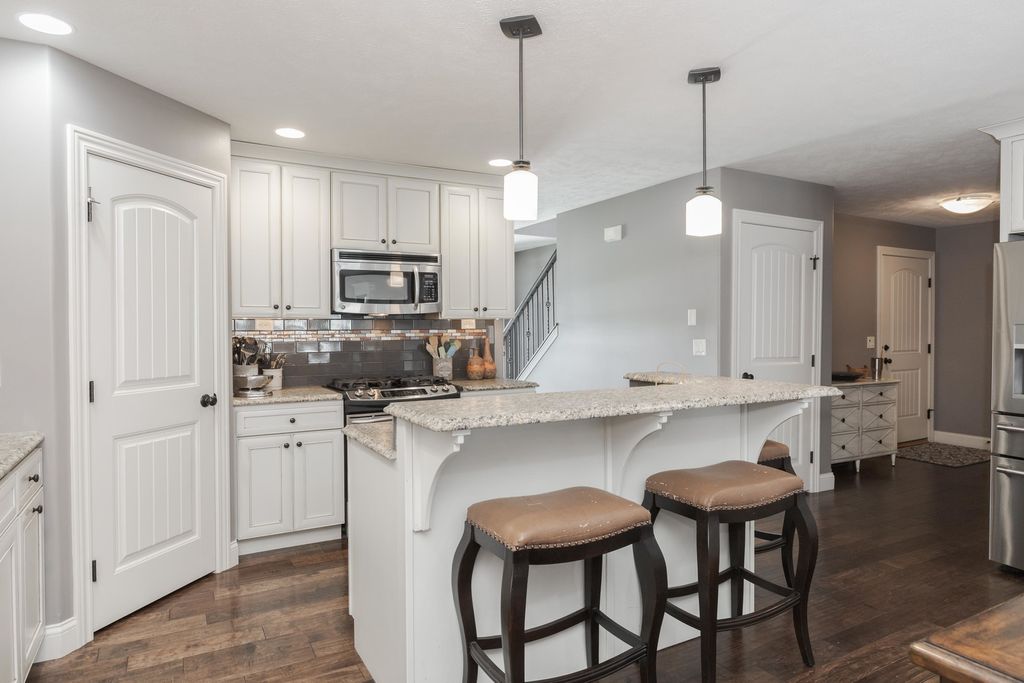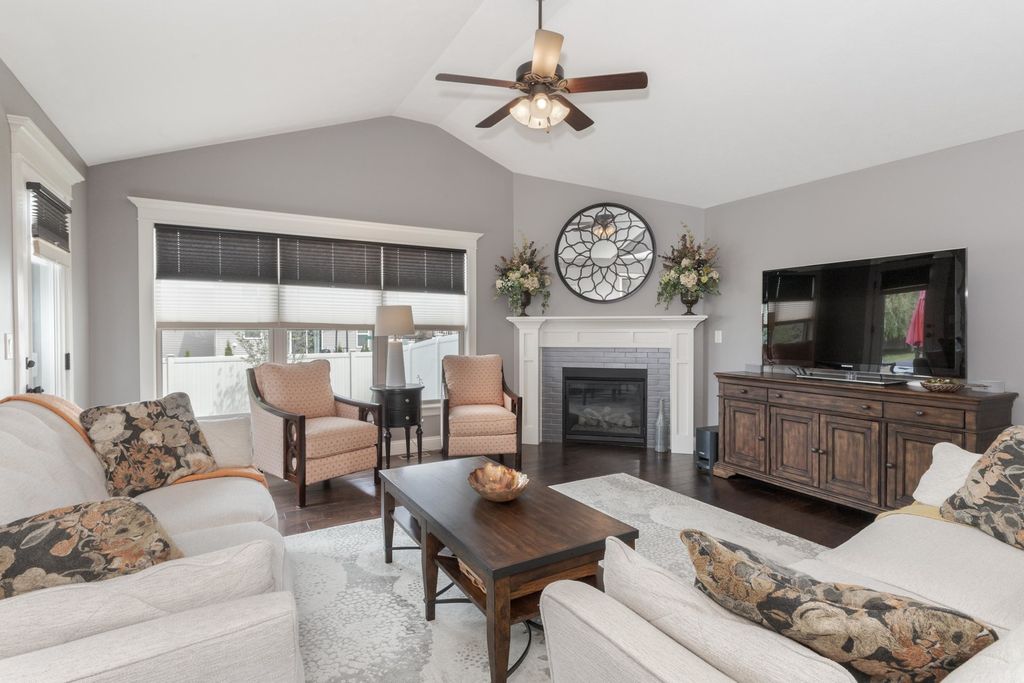 Beautiful 4-bedroom, 3.5-bathroom home in the desirable Blackstone Trails neighborhood. This home boasts an open and bright floor plan, featuring a main-level primary suite with an enormous closet that conveniently connects to the main-level laundry room. The large kitchen is equipped with white cabinetry, stainless steel appliances, island seating, and a walk-in pantry, opening seamlessly into both the dining room and spacious family room. Beautiful hardwood flooring extends throughout most of the main level. Two additional bedrooms and a full bathroom on the second level. The open-concept basement offers tall ceilings, a spacious lower-level family room, a fourth bedroom, and another full bathroom, along with ample storage space. The home is in pristine condition and includes a gorgeously landscaped yard with a custom extended patio, perfect for entertaining. There are no HOA fees. Recent updates include, but are not limited to:* New oversized A/C system installed within the last 5 years * New water heater in June 2025 * Custom closet added to a basement bedroom in 2016 * Extended patio with stamped concrete * New sump pump with water backup system in 2024 * GE Cafe refrigerator (around 2021) * Bosch dishwasher (around 2021) * New tile backsplash in 2016 * Freshly painted throughout in 2016 * All new carpet in 2016 *Please note that information is deemed reliable but not guaranteed.*