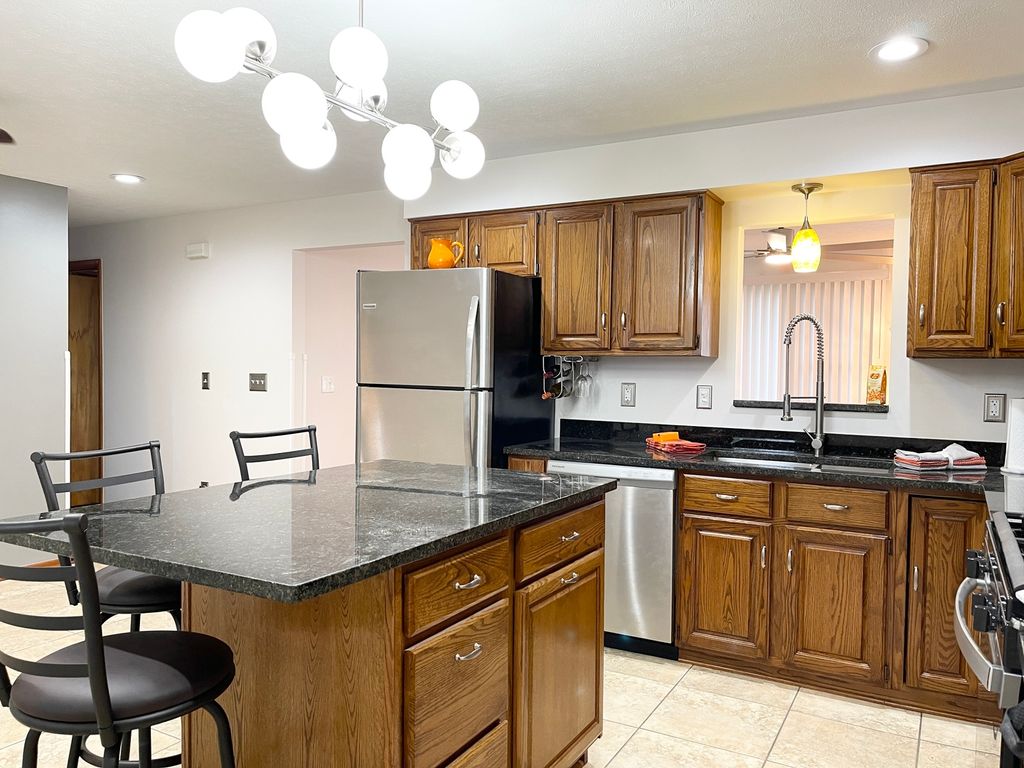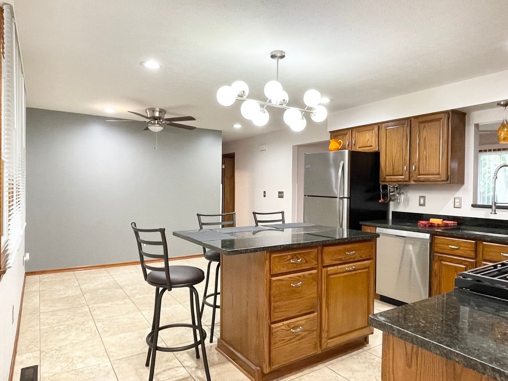 Beautifully Restored 1950s modern brick ranch style home located on a corner next to a park. This 3-bedroom, 1.5-bath home offers an attached garage, full basement, and a fully fenced backyard-perfect for kids, pets, and entertaining. Major updates include * 2025 new roof * 2021: new vinyl fenced backyard, remodeled bathrooms, remodeled kitchen with granite counters, refinished wood cabinets, island and new lighting, stainless steel appliances * 2019: New Trane furnace and air conditioning. * 2018 new water heater. There is luxury vinyl plank in the living room and hardwood flooring in the hallway & bedrooms * Open and clean basement with epoxy painted flooring. There is an EV charger in the attached garage that leads to the basement or kitchen. Relax on the rear patio, host gatherings in your spacious yard, and enjoy the convenience of living next to a park and being close to schools, restaurants and chopping. Call today to schedule your private showing. Realtor owned.