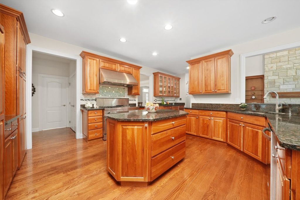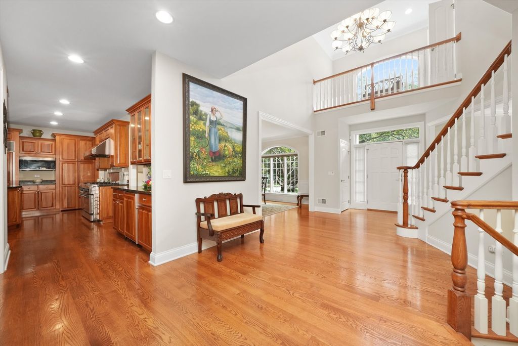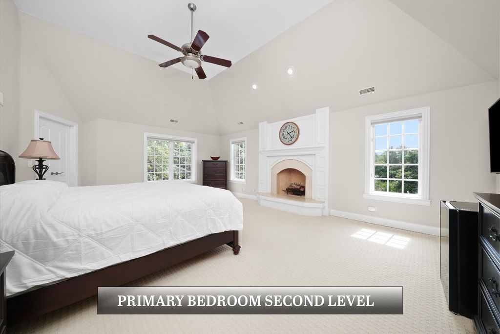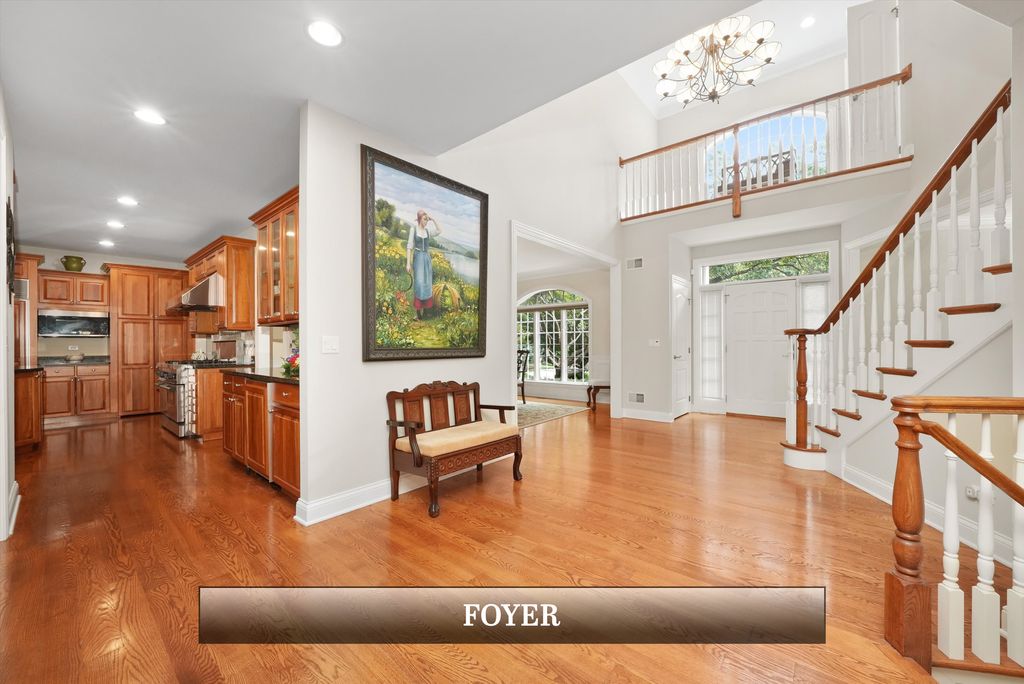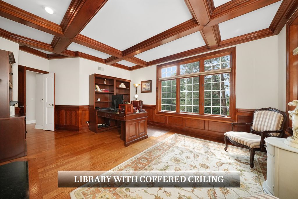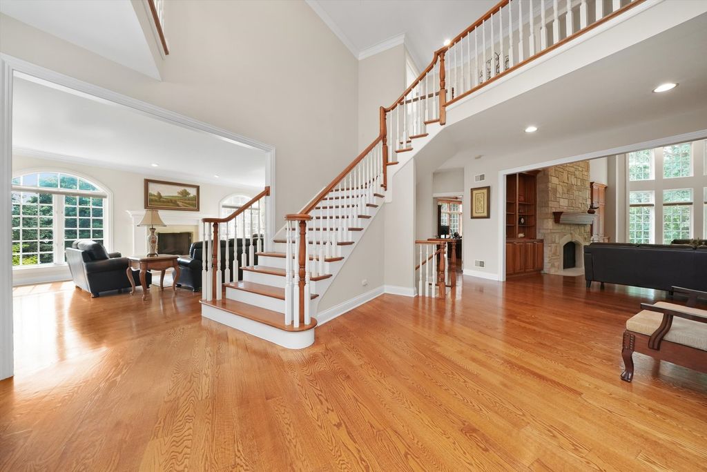 Located in the prestigious gated community of Wynstone, home to the renowned Jack Nicklaus Signature Golf Course, this stone-exterior residence boasts a 2025 cedar shake roof, lush landscaping, a circular brick-paver driveway/entryway, and a 4.5 car garage-perfect for your car and golf cart. Inside, exceptional craftsmanship is evident in six fireplaces, custom millwork, functional built-ins, and a spacious walk-out lower level. The two-story foyer with gleaming hardwood floors opens to formal living and dining rooms, while the great room features a dramatic floor-to-ceiling stone fireplace and soaring curved windows that flood the space with natural light. A handsome library with coffered ceiling and fireplace adds further elegance. The gourmet kitchen is equipped with top-of-the-line stainless steel appliances, including a SubZero custom wood-paneled refrigerator, a large hidden walk-in pantry, granite countertops, a generous island with breakfast bar, and a 6-burner Thermador cooktop with built-in griddle and heat lamps. A bright eating area opens to the expansive brick-paver patio and private backyard-perfect for entertaining. The main level also includes a laundry room and two powder rooms. Upstairs, the luxurious primary suite offers a cozy fireplace, tray ceiling, expansive walk-in closet, and spa-inspired en suite bathroom with dual vanities, whirlpool tub, and separate steam shower. The landing area includes an electrical outlet above the front door, ideal for holiday displays. Three additional bedrooms include one with en suite bathroom and two sharing a full bath. An unfinished same-level attic space is ready for customization. The finished walk-out lower level overlooks the side yard and features a recreation room, game room, bedroom/exercise space, and a full bath, along with abundant storage in both the lower level and the second attic. Smart-home amenities include Wi-Fi-enabled thermostats, garage door openers, and a remote-controlled doorbell system. ADT home security system installed.