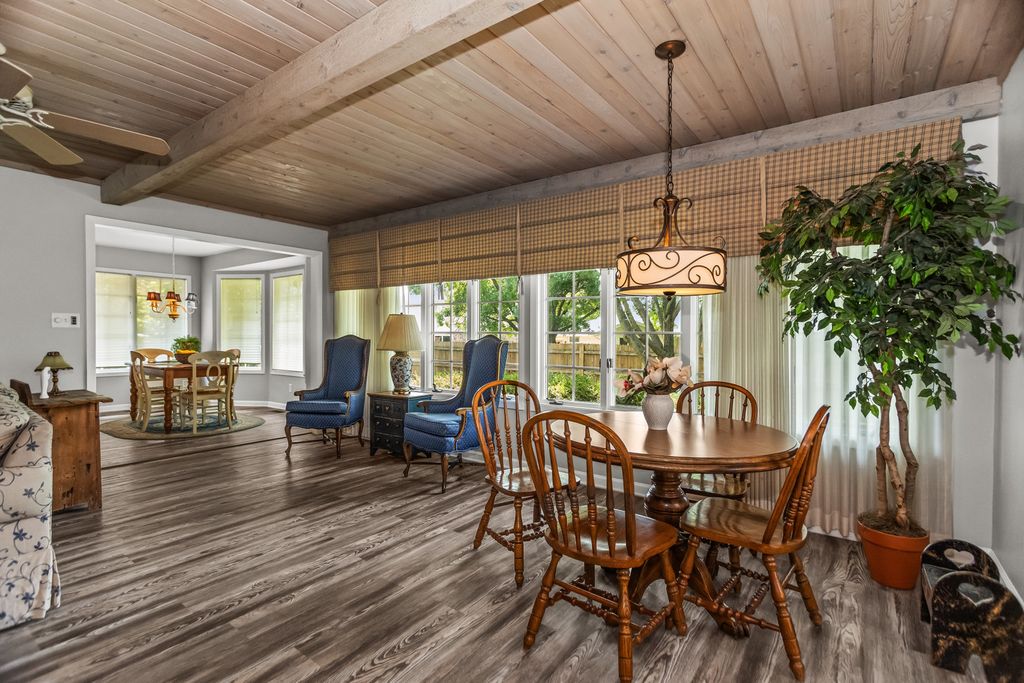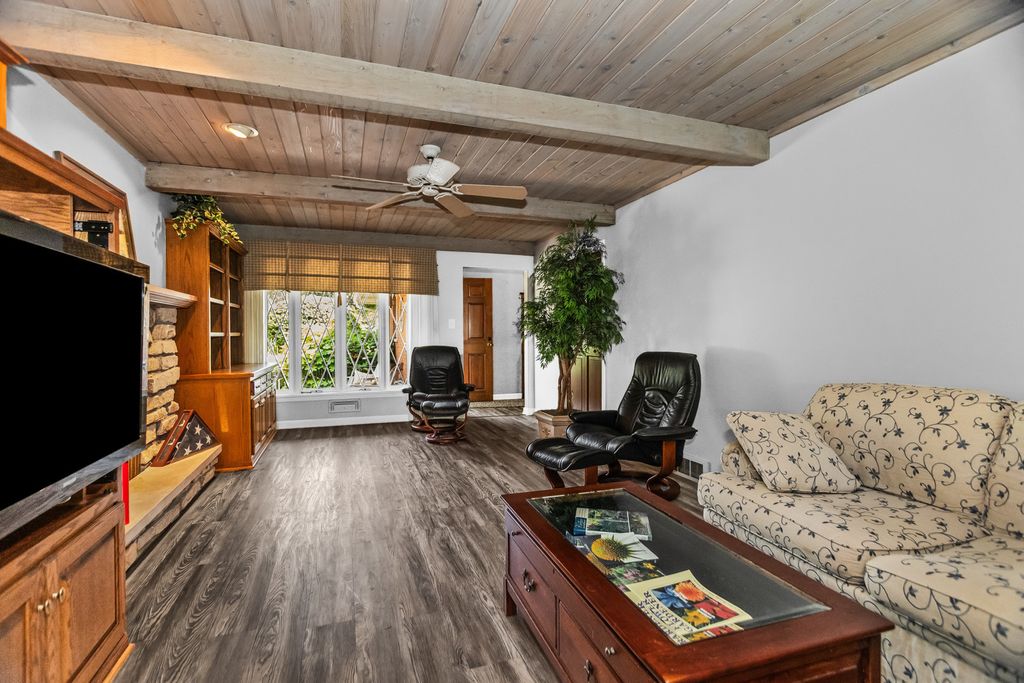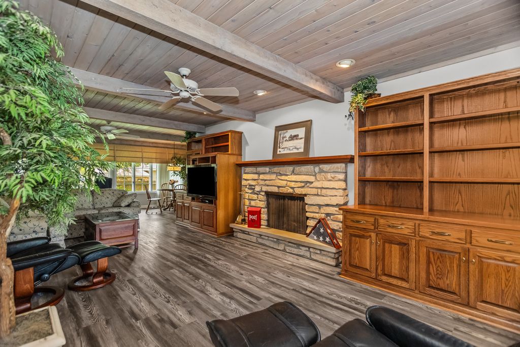 Welcome to this incredibly spacious 2,400 sq ft 4-bedroom, 3-bathroom brick ranch located in the rarely available and highly desirable Twin Oaks community of West Joliet, within the top-rated Troy School District. This home offers the perfect blend of comfort and functionality with a large 2-car garage and an expansive fully fenced backyard featuring a private patio area-ideal for entertaining or relaxing in peace. Inside, the main level boasts new flooring throughout the living room, dining room, kitchen, breakfast bar, hallway, and primary bedroom. The beautifully remodeled bathrooms (both primary and guest) feature modern finishes that add a fresh, updated feel. Cozy up in the spacious family room with beautiful wood beam ceilings, a gas fireplace complete with custom stonework, and built-in wooden shelving on both sides-creating a warm and inviting centerpiece. Natural light pours throughout, creating a bright and airy atmosphere in every corner. Downstairs, the finished 1,650 sq ft basement offers a huge living area ready your design ideas, complete with a bar, additional 4th bedroom, and a full bathroom. The current owners have invested significant time, care, and pride into maintaining this home, which is being offered in as-is condition. Don't miss the opportunity to own this rare gem in one of Joliet's most desirable areas!