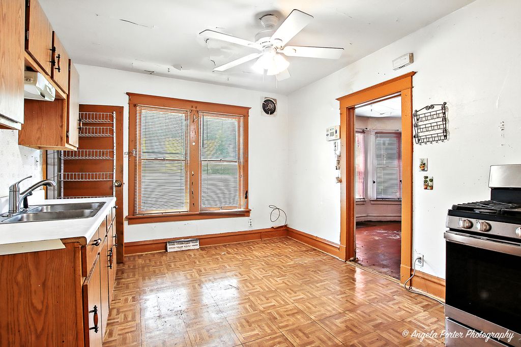 The possibilities here are .. well not endless but GOOD! A great opportunity to build sweat equity on this home with much character and excellent floor plan! New front steps lead to a large screened porch for summer relaxing! Open the door to a spacious living room w/hardwood floors, wide baseboards - charming details on the windows here! Arched entry to a formal dining room w/bay window. Kitchen is large, 13 x 11, and welcomes your ideas. There is a butler's pantry w/glass front cabinets and a rear porch/mud room and convenient back staircase going up. Check out the MAIN FLOOR BEDROOM w/recently updated full bath just last year, includes a walk-in shower. Wander up the solid front staircase to 3 bedrooms, a 2nd full bath, a large hallway/walk-in closet for extra clothes/storage. Yes, this home needs some work - remove wallpaper, paint, refinish hardwood floors, some other repairs, but it does have newer windows upstairs (4-5 yrs), hot water heater newer 1-2 yrs, roof was tear-off new 6-8 yrs, sewer line new from house to street 2 yrs, new water supply pipes just last year. Location is close to Abbvie, Great Lakes Naval Base, train station, Lake Michigan - just a few blocks west of Sheridan Road for easy commute. Come and imagine the possibilities yourself and what a charming home this could be!