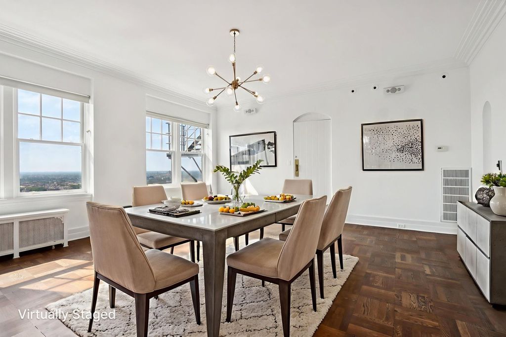 The Eddystone, located at 421 W Melrose Street. Constructed in 1929 and housing 77 distinguished condominiums across 21 stately stories. Upon entering off the private elevator, you are greeted by a graceful foyer with original ceiling arches. Ascend two steps up into a double living room that serves as the heart of this 3400+ sq ft home, featuring a hand-carved, finely detailed original marble fireplace that stands as a masterpiece of artisanal craftsmanship. Solid oak floors, set in a beautiful parquet and herringbone pattern, span the entirety of the home. Natural light floods the space through a series of elegant French swinging windows-gracing both the living room and Dining room. For those seeking functionality, the home offers an optional library or flexible office space adjacent to the living room. Culinary enthusiasts will delight in the expansive kitchen with an adjoining large eat in area, with its ample storage. The primary ensuite bedroom is a sanctuary of relaxation, featuring a cozy sitting area, and panoramic views of the western horizon and Lake Michigan. Two additional spacious bedrooms, complemented by a total of three full bathrooms. The 4th bedroom is being used as a small TV room off the Primary bedroom. Residents also enjoy thoughtful amenities. A recently added rooftop deck and a refreshed laundry and workout facilities. A dedicated 24-hour door person and on-site part-time management & security. One block off the sparkling lakefront along with the vibrant charm of East Lakeview's premier shops and dining. This remarkable listing offers a residence with architectural integrity and an unbeatable urban location.