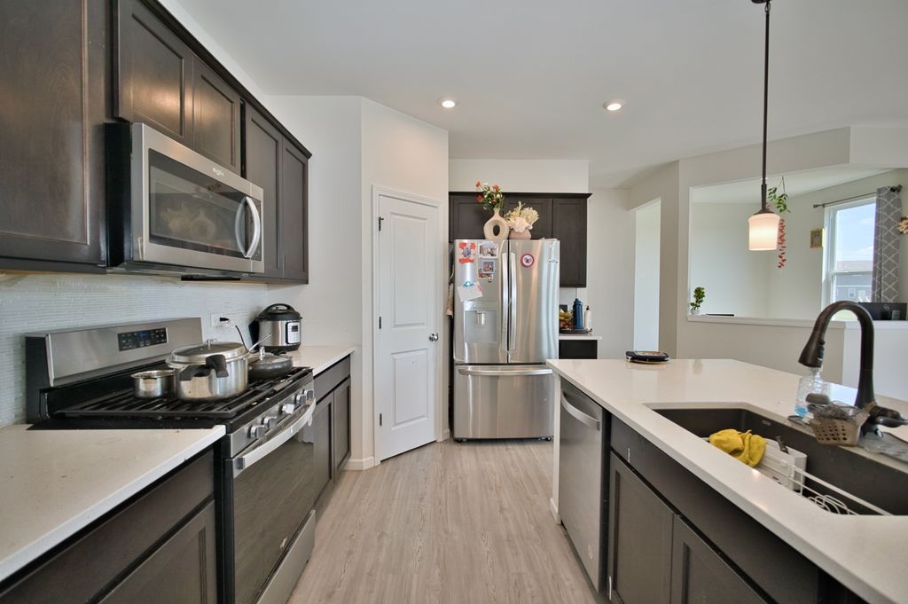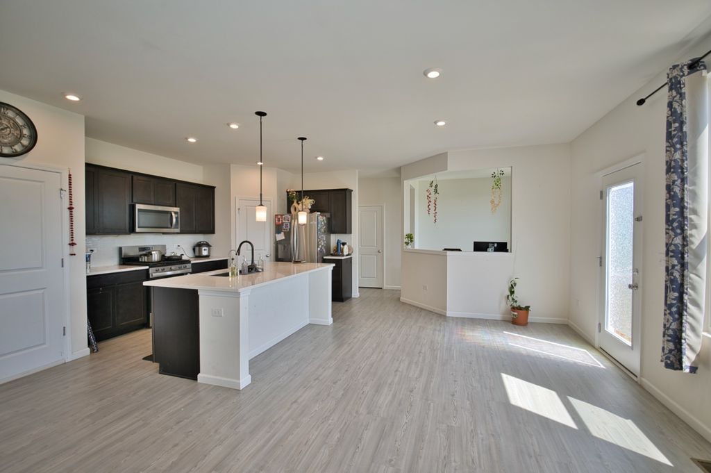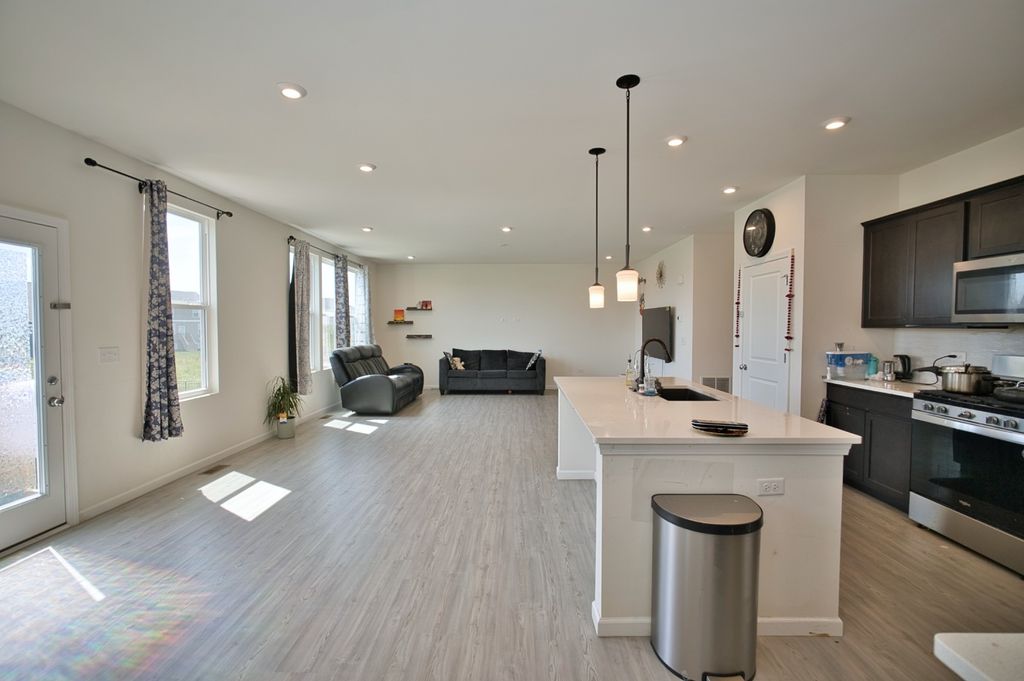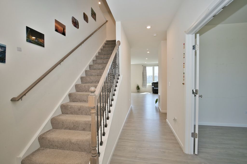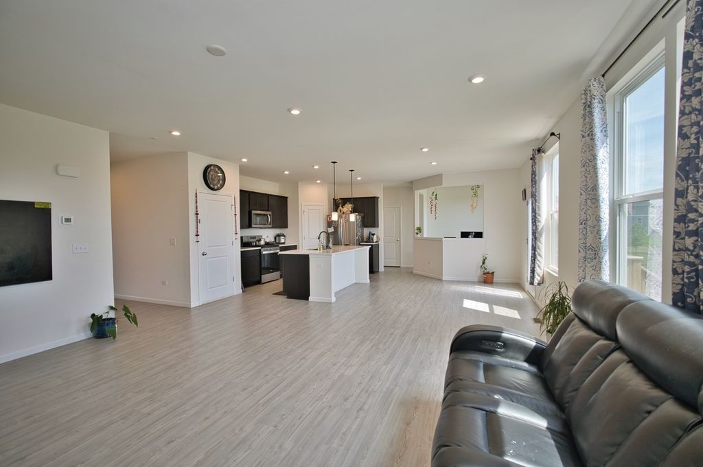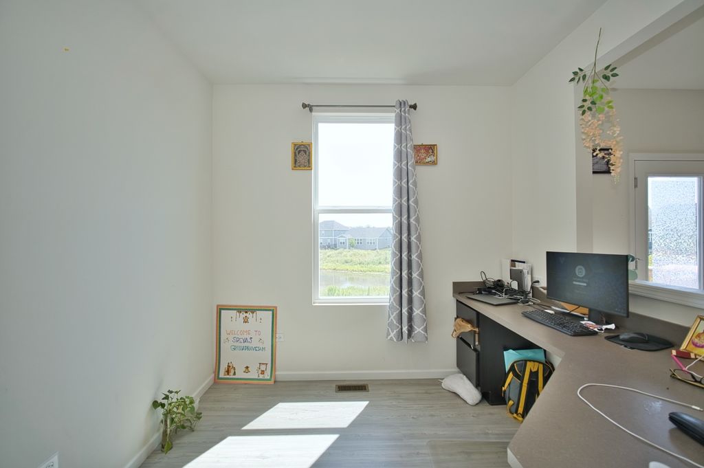 Welcome Home! SUPER RARE Sheldon Woods 2024 Built Home that sits on a Premium Lot Backing to the Pond with a Walk-Out Basement and Includes 4 Bedrooms 2.5 Bathrooms! Coming in at a Discount of Nearly 100K for the Same Home if Replicated now with the Builder on this Lot! You'll LOVE the Curb Appeal of this Mercer Model the moment you see it! Enter into a 1st Level with Maintenance Free Luxury Vinyl Flooring throughout which includes a Den & Unique Office Space set off the Open Kitchen Boasting Dark Maple Cabinetry with Crown Molding, Glass Tile Backsplash, SS Appliances, Pantry Closet & Large Eat-In Island, Quartz Tops and Recessed Lights! Upstairs you'll find a Convenient Laundry Room, 4 Spacious Bedrooms Including the Primary Suite that includes a Walk-In Closet & En-Suite Bath with Raised Dual Vanity & Massive Shower with Glass Door! The Basement is a Walk-Out to the Rear Lot and has Loads of Natural Light and Insulated Walls, just waiting to be Finished! Located Near Shopping & So Much More with Highly Rated Schools, Come See it TODAY!