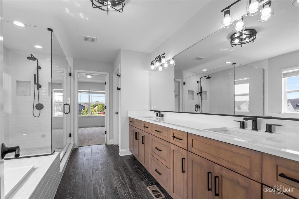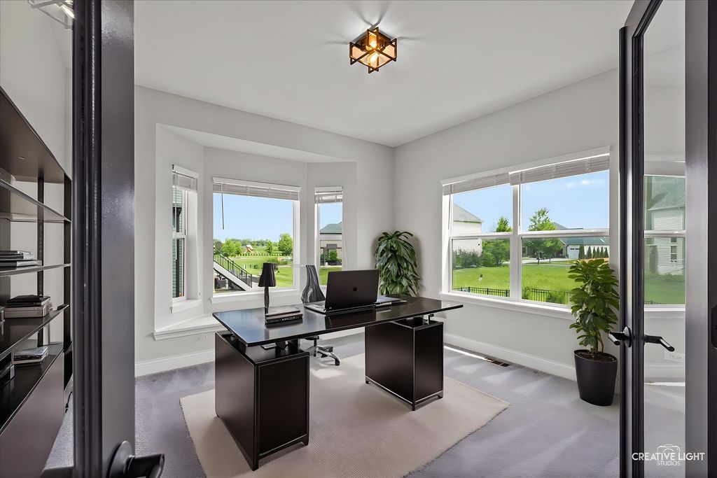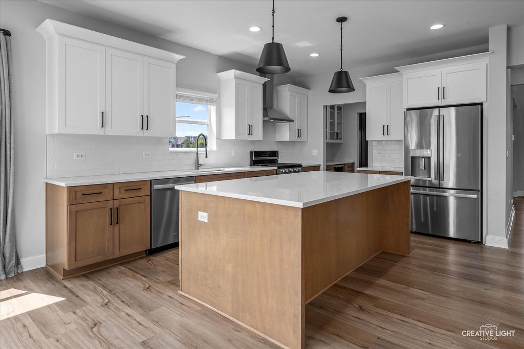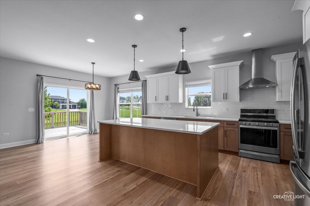 Move-in ready, Plainfield's prestigious Stewart Ridge subdivision, why wait for new construction. Beautiful open concept built by 5th Avenue Construction. Two story family room features fireplace with custom accent wall, flanked by windows! Family room opens to kitchen, perfect for entertaining! Kitchen features stainless steel appliances, oversized center island, 42 inch white upper cabinetry, trendy lighting, butler pantry and walk-in pantry. Office with French doors and bay window. Large main level laundry room. Primary suite includes soaking tub, oversized shower, dual vanity and walk-in closet. Second bedroom has ensuite bath. Third and fourth bedrooms share Jack and Jill bath. Full unfinished lookout basement awaits finishing ideas. Three car garage with heater. Fenced backyard has deck, brick paver patio and hot tub. Stewart Ridge is conveniently located minutes from Shopping, Dining, and Downtown Plainfield and I55 expressway. Located in highly acclaimed District 308, Grande Park Elementary, Murphy Junior High and Oswego East HS!