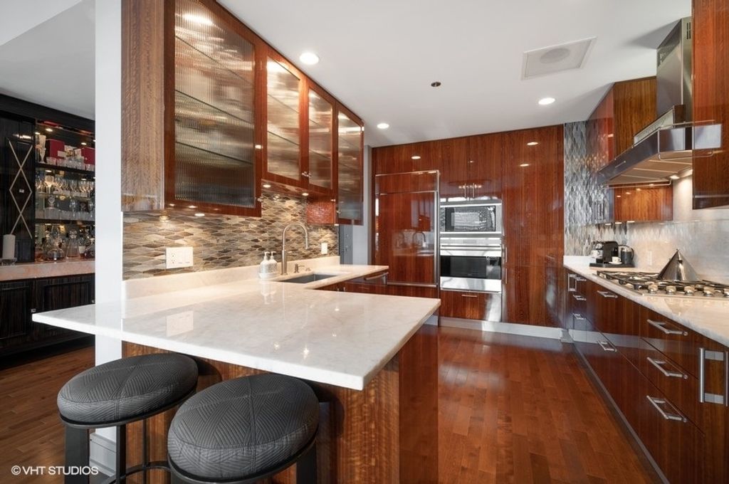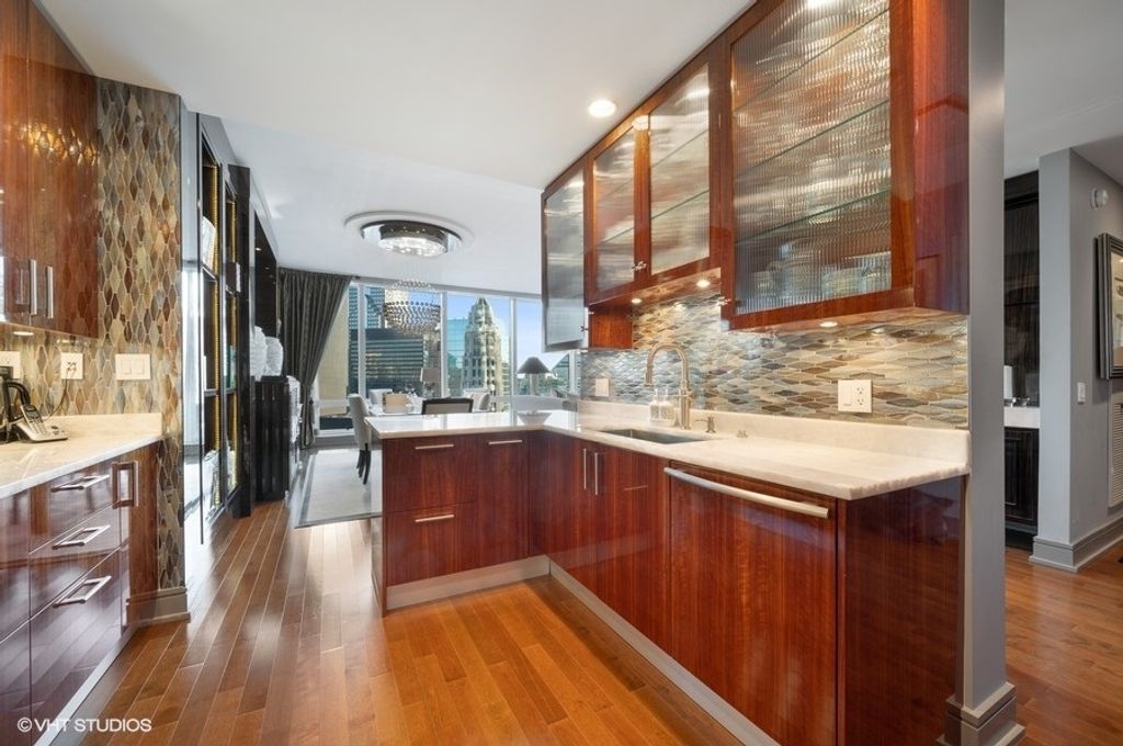 Designed by world-renowned architect Adrian Smith of Skidmore, Owings & Merrill, this rare 30J tier has been masterfully remodeled in collaboration with Lalique, featuring imported Macassar Ebony built-ins for a truly refined aesthetic. What sets this residence apart - and justifies its premium - is the combination of its exceptional design, expansive layout, and remarkably low HOA fees. Spanning approximately 2,100SqFt, this stunning 2-bedroom, 2.5-bath home boasts soaring ceilings and dramatic southeast views where the Chicago River meets Lake Michigan. The thoughtfully designed floor plan includes a chef's kitchen with Wolf, Miele, and Sub-Zero appliances, and spa-inspired baths with Kohler fixtures and a separate glass-enclosed shower. Every detail reflects impeccable craftsmanship and elevated style. Residents enjoy world-class amenities including 5-star hotel services, a state-of-the-art fitness center, and an unbeatable location - steps to the Loop, lakefront, fine dining, and premier shopping. Parking available.