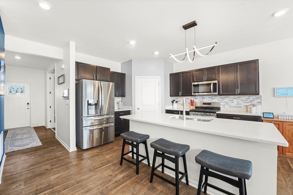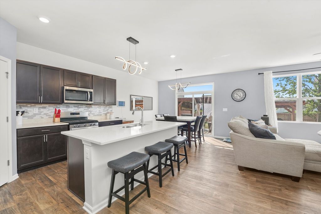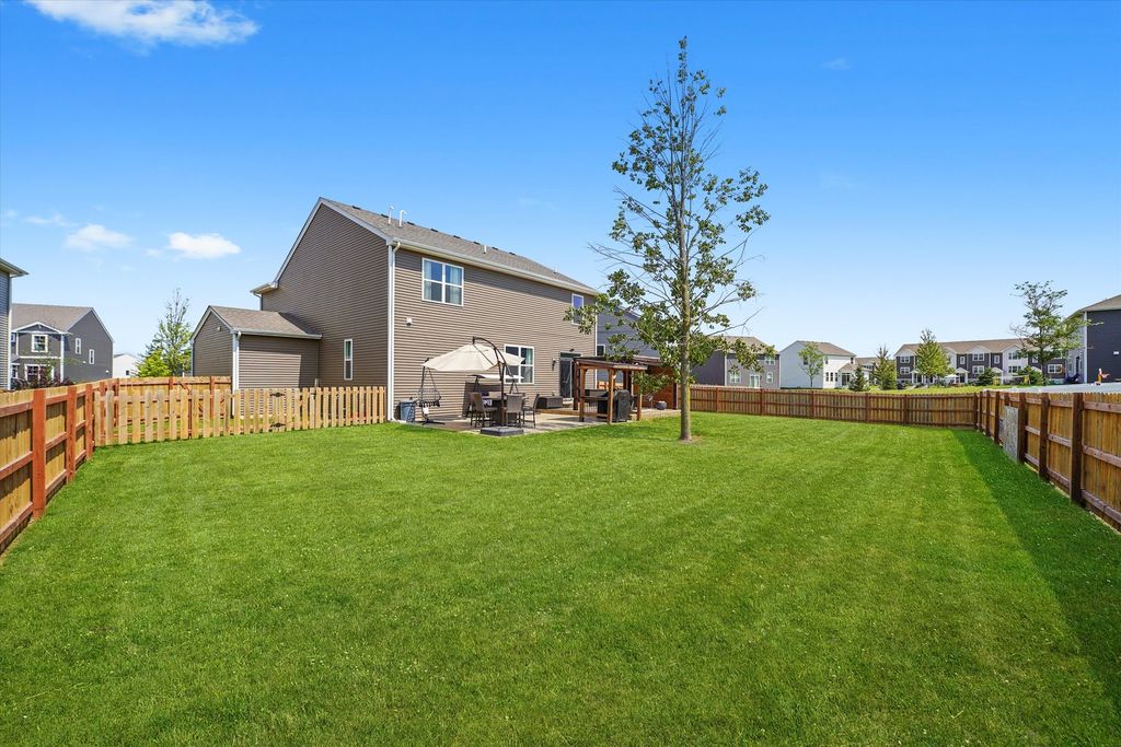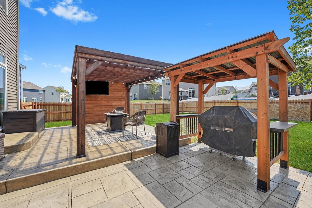 Welcome to Stonewater! This stunning newer-construction Henley model combines modern comfort with a show-stopping outdoor retreat. With 4 bedrooms, 2.5 baths, a first-floor study, loft, and a 3-car garage, this home offers thoughtful spaces for work, play, and relaxation. Inside, the open-concept main level features a bright family room and a chef's kitchen with a large island, walk-in pantry, striking dark cabinetry, and stainless steel appliances which is truly perfect for hosting or everyday living. Upstairs, you'll find a spacious loft, laundry room, and a luxurious Primary Suite with huge bathroom, separate toilet and dual vanities and an oversized walk-in closet. Step outside and you'll fall in love with the backyard built for entertaining, complete with a covered pergola, mounted TV, cozy fire pit area, dedicated grilling station, stamped concrete patio, and plenty of fenced green space. Whether it's game night under the lights or summer BBQs, this backyard delivers. All in a fenced yard. A full basement provides endless possibilities for future expansion. You'll love being part of the Stonewater community, with it's clubhouse community like no other. This is more than a home, it's a lifestyle. Welcome in!