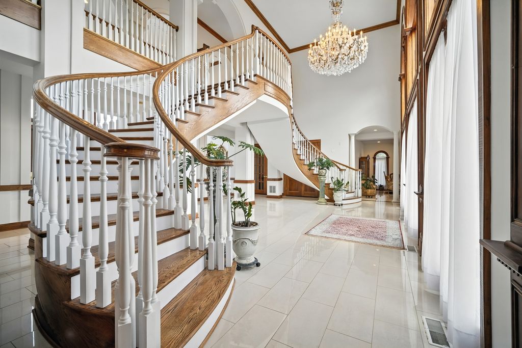 Nestled on over an acre of serene, private grounds in Inverness's prestigious Braymore Hills, this impressive two-story masonry estate offers more than 7,900 square feet of refined living space. Built in the early 2000s, the home features 7 bedrooms and 8 baths (6 full, 2 half), along with a partially finished lower level perfect for recreation or entertaining. The versatile floor plan allows for easy conversion to 4 primary bedrooms while still providing additional rooms ideal for a library, home office, or media space. Highlights include a butler's kitchen, built-in pizza oven, elegant double front staircase, and a secondary back staircase leading to a convenient second laundry and storage area. Positioned on a corner lot with a partial water view, the residence is filled with high-end details throughout. Architecturally striking with its shake roof and multi-level design, the home blends luxury and functionality with central vacuum, central air, a dual fireplace in the master suite, and a spacious four-car attached garage.
