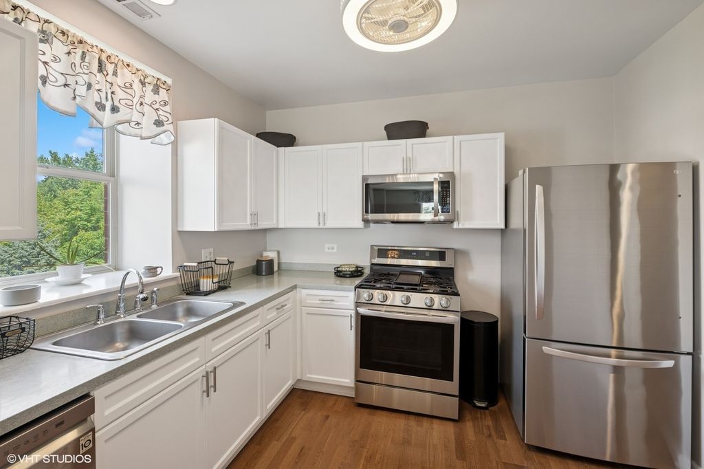 Rare opportunity! This meticulously-maintained corner unit is located in the sought-after Residences of Riverwoods (Active Adult Community). The all-brick building is nestled up to breathtaking Thatcher Woods. Features of this West-facing two-bed, two-bath corner unit include the spacious primary Bedroom with two closets, a large bath (consisting of a full tub and separate shower), a spacious second bedroom, a second full Bath with a newer vanity, and an extra-large shower (with seat). The spacious living room/dining room combo offers beautiful sun-filled windows, including glass sliding doors to the fabulous private balcony with views to the North. Spacious in-unit closet houses a washer and dryer. Bright full Kitchen with newer stainless steel appliances. Newer furnace and A/C. Newer flooring in the Kitchen, Hallway, and Primary Bedroom. Heated garage and secured storage (#41). Roof Top deck and exercise Room on "The PentHouse" 9th Floor. The Party Room is on the 1st floor by the mail room. Great 55 and older community nestled against the forest preserve. (A percentage to be occupied by younger residents with board approval).