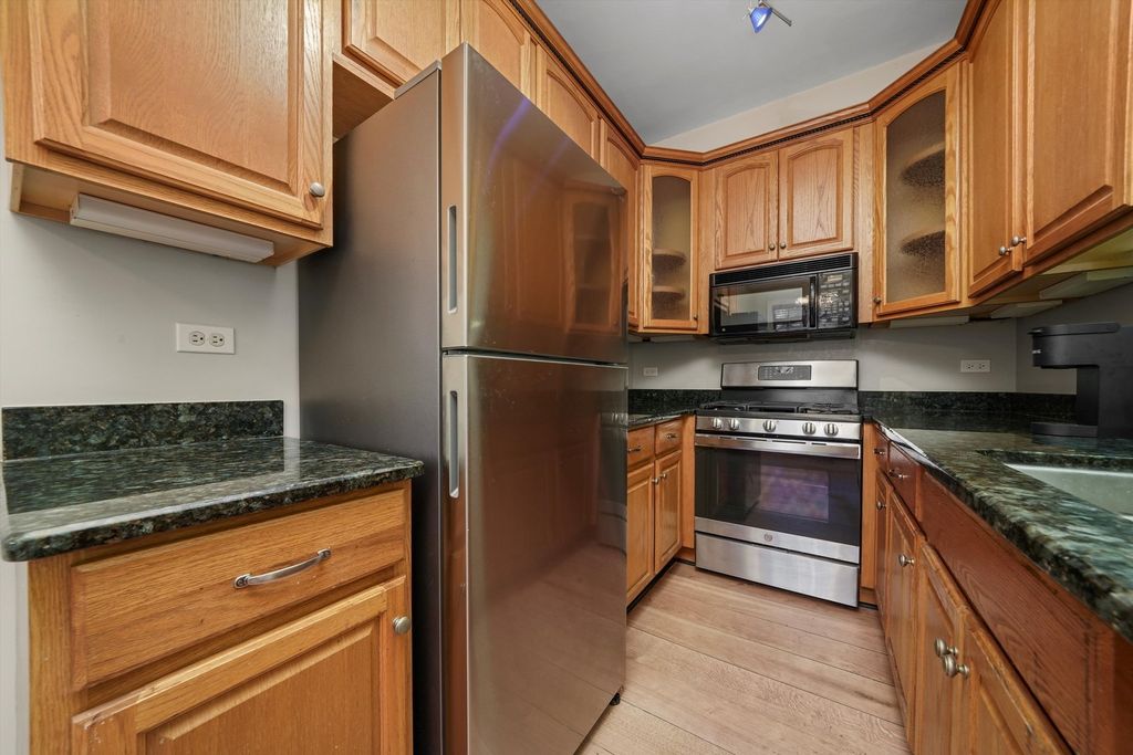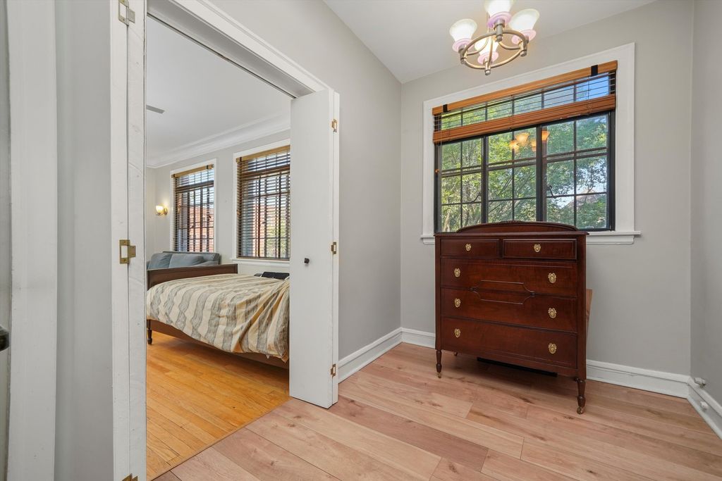Discover the perfect blend of vintage charm and modern convenience in this beautiful sunlit corner co-op, located just two blocks from Northwestern University and the scenic lakefront. Less than a block away, you'll find the Red and Purple CTA lines, six restaurants, a full-service grocery store, coffee shops, and other everyday conveniences. A short ten-minute walk leads to downtown Evanston, where you can enjoy Target, CVS, Lou Malnati's Pizza, the Metra, RTA buses, and express service to O'Hare Airport-all within easy reach. This inviting studio is filled with natural light from north- and west-facing windows, enhanced by custom wooden blinds and cross ventilation. Classic details include nine-foot ceilings, crown moldings, wall sconces, and pocket doors leading to a California-style closet. Recent upgrades include a new vanity in the bathroom, a new ceiling fan, and an air conditioning unit under warranty. The eat-in dining area can be separated by folding doors from the main living space, while the kitchen offers granite countertops, oak-faced cabinets, and new waterproof flooring. Brand-new appliances, including a refrigerator and stove still under warranty, complete the modern updates. Rookwood Gardens is a well-managed, historic building offering individual storage closets, a secure bike room, and a free laundry room for residents. Outdoor amenities include a beautifully landscaped private garden perfect for relaxing or reading, as well as a refreshed side garden that enhances the building's classic curb appeal. Both cats and dogs are welcome, making this a truly special place to call home.
