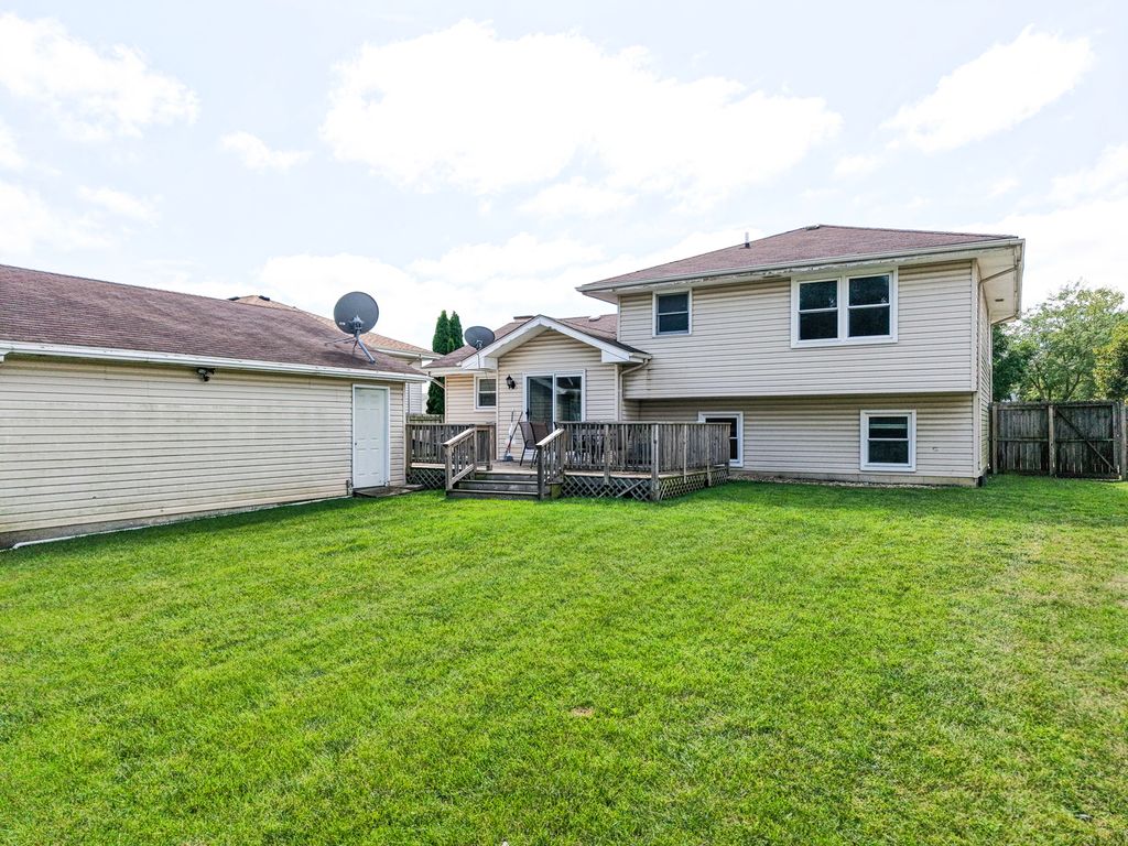 Once upon a time, there was a family searching for a home that had space to grow, room to gather, and a place for everyone to belong. They found it here, in this custom 4-bedroom, 2-bath split-level with a finished basement in Plainfield. Each day, the main level welcomed them with vaulted ceilings, hardwood floors, and sunshine streaming through a bay window. Meals were shared in the dining room that opened to the deck, while the kitchen-with its maple cabinets, stainless appliances, pantry, and ample counter space-became the heart of their home. Because families need room, the upper level offered three generous bedrooms with ample closets and an updated full bath with dual sinks. And because every parent deserves a retreat, the lower level held a hidden treasure: a spacious 19x13 primary suite with a walk-in closet and a spa-like bath featuring a full-body walk-in shower. This level also offered a flexible space-perfect for a study, gaming zone, or creative craft area. But life is also about play and togetherness, so the finished basement became the ideal family room and storage hub. Outside, the freshly top-coated driveway, newly painted soffits, oversized 2.5-car garage, backyard shed, and large yard with a deck gave them space for projects, laughter, and memories that lasted a lifetime. Recent updates include: stove, dishwasher, washer/dryer, and microwave (13 months old); flooring and carpeting (approx. 20 months old); new windows plus front, back, and screen doors (2 years old); and hot water heater (2020). And ever since, the story of this home has been about 4 bedrooms, 2 bathrooms, vaulted ceilings, multiple finished levels, and endless possibilities. Maybe the next chapter is yours.