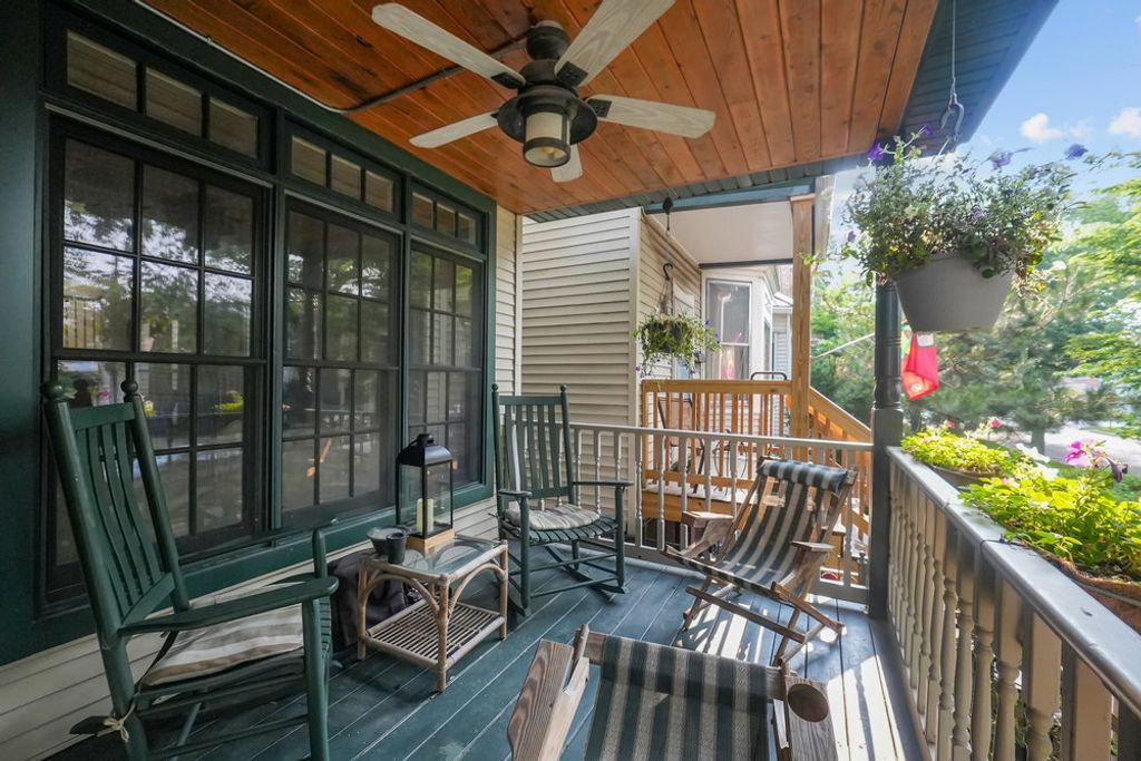 Nestled on a quiet, picturesque, tree-lined street in the heart of Ravenswood, this classic-style home seamlessly blends timeless character with contemporary updates. A welcoming, covered front porch offers the perfect spot for morning coffee, remote work, or evening gatherings. Step inside to an expansive open-concept main floor designed for both comfort and entertaining. The sun-filled living and dining area features rich custom hardwood floors, a full-sized gas fireplace framed by a beautifully crafted mantle, and a convenient powder room tucked away for guests. At the rear of the home, the bright and airy kitchen is a true centerpiece-complete with a generous island, abundant cabinetry, a walk-in pantry, double ovens, and a seamlessly connected family room bathed in natural light, open to a spacious back porch. Upstairs, hardwood floors continue throughout three well-appointed bedrooms. The primary suite offers incredible light, walk-in closet, and a luxurious ensuite bath featuring a tub, glass-enclosed shower and double vanity. The fully finished lower level offers incredible versatility-ideal as a media room, game space, or home gym-and includes a built-in bar, fourth bedroom, full bathroom, and ample storage. This level also connects to the detached two-car garage via a private interior hallway. This unbeatable location puts you steps from the vibrant Southport Corridor and Lincoln Avenue, with dining, shops, parks, and entertainment just around the corner. Commuters will love the proximity to major thoroughfares like Ashland and Irving Park, as well as easy access to Lake Shore Drive and the expressway. Public transportation is a breeze from this location.