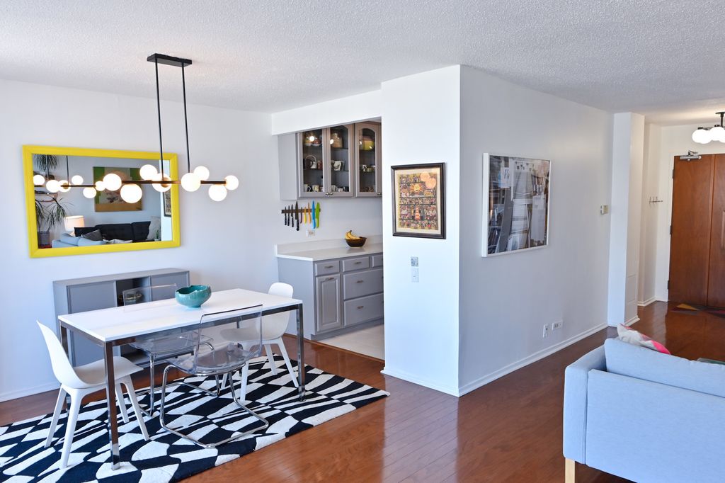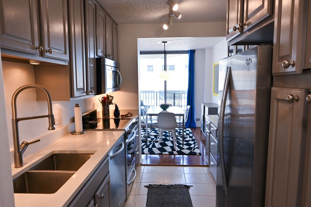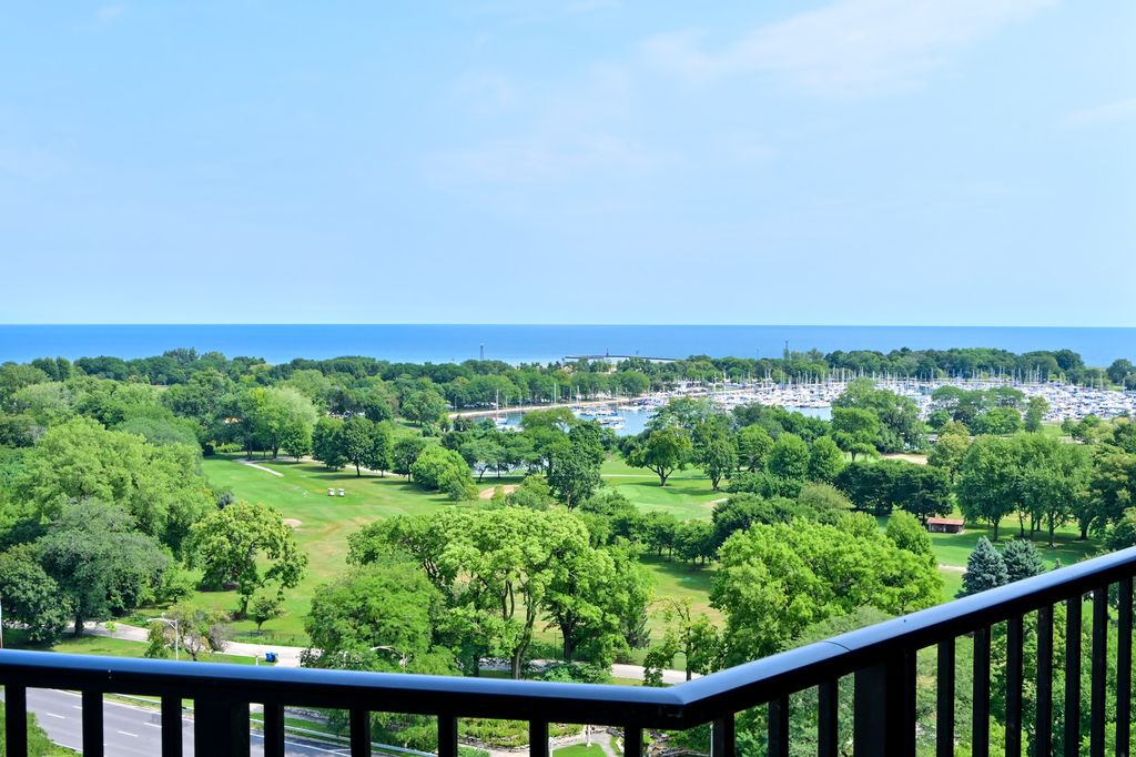 Spacious & stylish 1 bedroom unit in "The Waterford" with great North, East & West exposures; views of Montrose Harbor, Lake Michigan and the city from the balcony! Hardwood floors & carpet in bedroom. Updated kitchen flooring & newer KitchenAid SS appliances. Updated bath. Renovated balcony. In-unit laundry. Year-round heated rooftop pool, deck & exercise room. Full amenity building includes dry cleaner, 24/7 door staff, on-site management/maintenance staff & hospitality room with kitchen. Heated valet parking available immediately for $250/month, (wait list for self-parking). Pet-friendly, no rentals. Perfect location close to lake, walking/bike paths, bus & Red Line CTA!