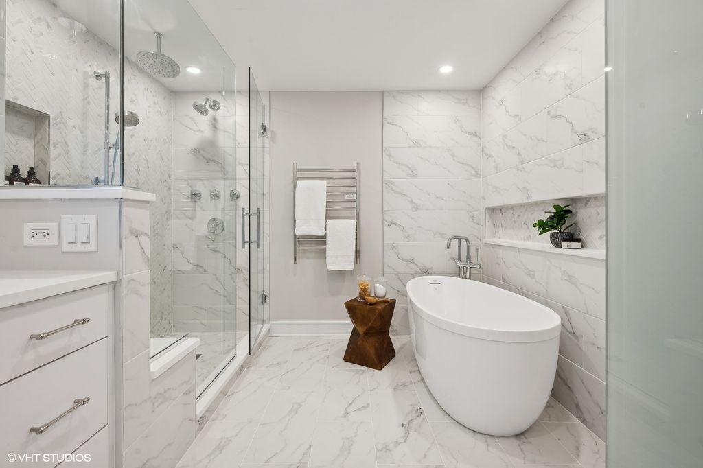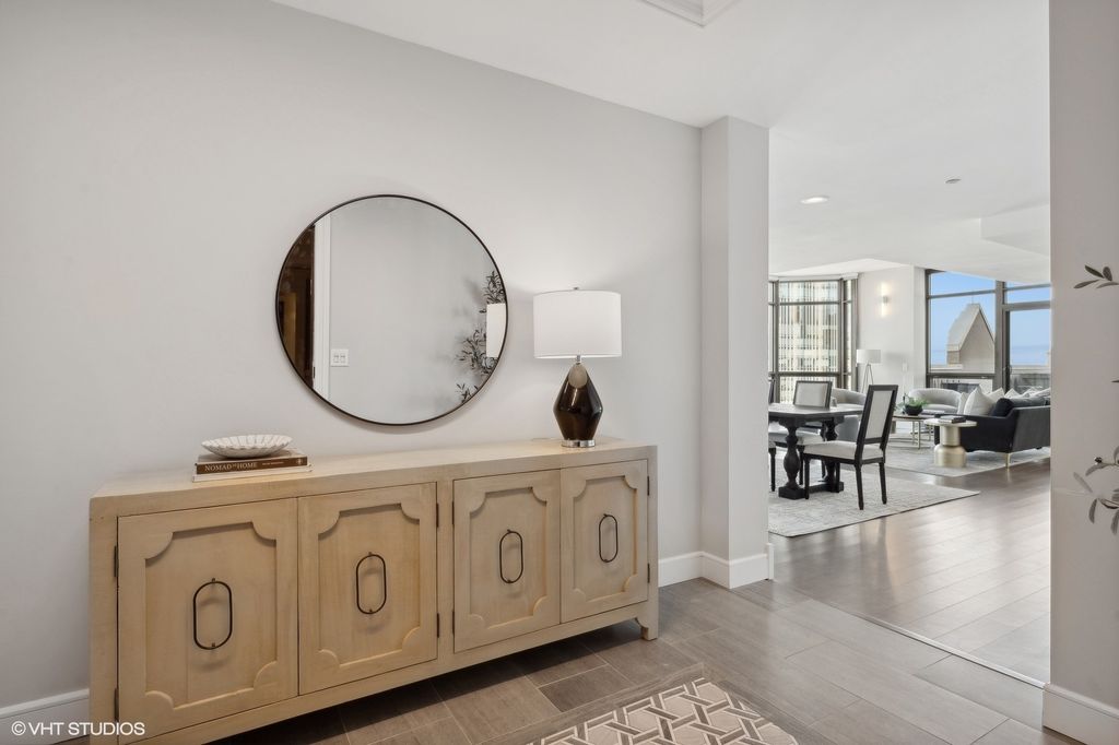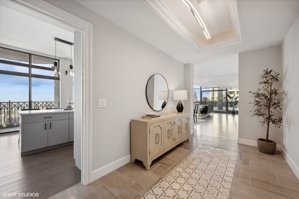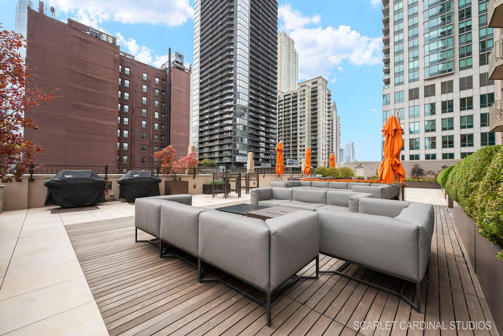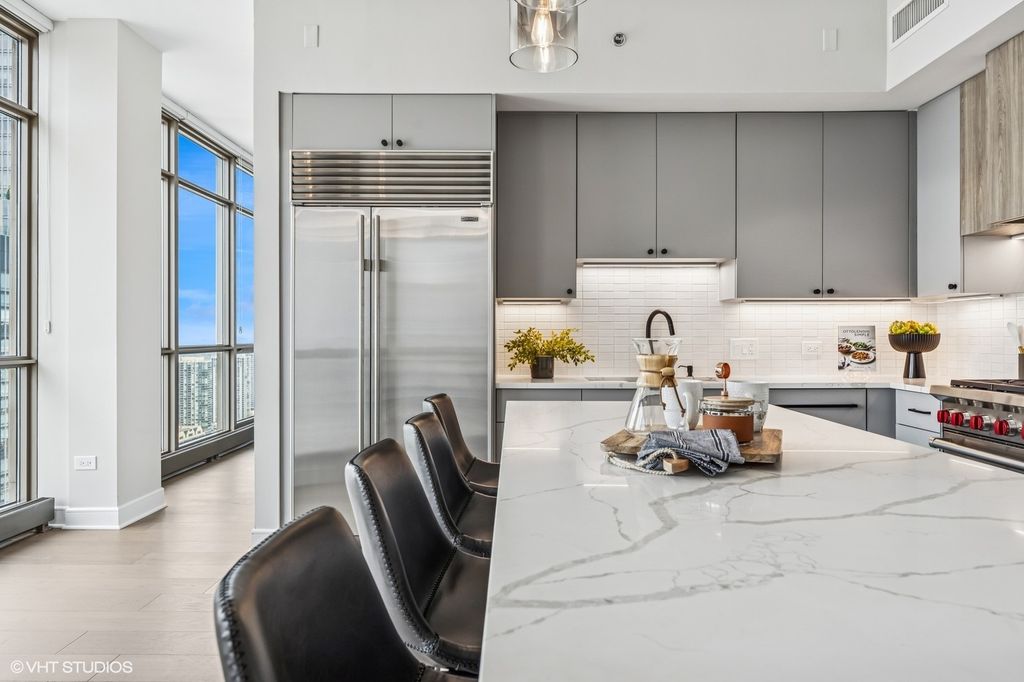 Unmatched LUXURY in the Heart of the Cathedral District. Welcome to an extraordinary PENTHOUSE RESIDENCE in the prestigious PINNACLE BUILDING-a half-floor home that blends sophisticated design with sweeping, unobstructed skyline views. This ONE-OF-A-KIND property offers TWO EXPANSIVE TERRACES AND A PRIVATE BALCONY, creating over 1,900 SQUARE FEET OF OUTDOOR LIVING SPACE, 43 floors above the city. A Grand First Impression as you enter through a gracious foyer with CUSTOM INLAY TILE and an elegant tray ceiling, setting the stage for the LIGHT FILLED, open-concept interiors. The dining and family rooms feature FLOOR-TO-CEILING WINDOWS, soaring 10' ceilings, and a GAS FIREPLACE. From here, step onto the sprawling 41' x 39' MAIN TERRACE-complete with IRRIGATION AND ELECTRICAL-ideal for an elevated garden retreat, private entertaining, or simply taking in the panoramic views. The PRIMARY BEDROOM is a sanctuary, featuring two walk-in closets and a spa-inspired ensuite with radiant heated floors, a heated towel rack, soaking tub, and walk-in shower. Direct access to the main terrace allows you to start and end your day surrounded by breathtaking views. The designer CHEF KITCHEN is equipped with sleek light-gray cabinetry, quartz countertops, and a large center island. HIGH-END APPLIANCES include a Wolf oven, Sub-Zero refrigerator, and Miele dishwasher. A sunny breakfast room and beverage bar with wine fridge provide casual elegance, while the SEMI-CIRCLE BALCONY offers a serene spot for morning coffee above the city. Two additional ensuite bedrooms, each with 10' ceilings and stunning views, ensure privacy and comfort. One suite opens directly to the 21' x 18' SECOND TERRACE, perfect for hosting guests or creating a private outdoor escape. Living at the Pinnacle means enjoying a wealth of world-class amenities. Residents have access to an indoor pool and whirlpool, fully renovated cardio and strength-training gyms, and relaxing steam and sauna rooms. An expansive outdoor sundeck is equipped with grills and a fire pit, perfect for gatherings under the city lights. For pet lovers, there's a PRIVATE DOG WALK AND PLAY AREA, while entertainment options include a theater room, a hospitality suite with terrace, and private wine lockers. Additional conveniences include bike storage, a personal storage room, and two deeded parking spaces, with the option to purchase a third. PRIME LOCATION-Just blocks from Northwestern Memorial Hospital, Northwestern Law & Medical School, Lurie Children's Hospital, Michigan Avenue shopping, Ohio Street Beach, and acclaimed dining. This penthouse delivers UNPARALLELED INDOOR-OUTDOOR LIVING in one of the city's most sought-after addresses. Opportunities like this are rare-experience the Pinnacle lifestyle today.