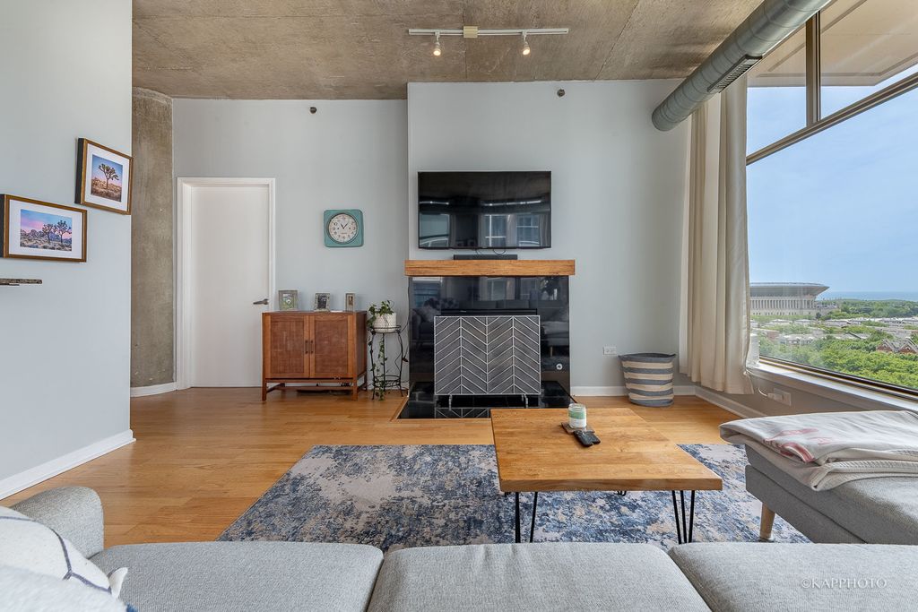 Exceptionally bright and stunning 2 bed/2 bath corner unit with tree top and lake views in highly coveted Museum Park building and location. Southwest exposure and floor to ceiling windows allows for a plethora of natural light and spacious feel. Unit features gracious foyer, split floor plan, spacious main living space, hardwood floors, fireplace, tall ceilings, in unit washer/dryer, and balcony. Kitchen is appointed with light cherry cabinets, tile backsplash, stainless steel appliances, large island, and granite countertops. Luxurious primary suite with dual vanity, marble countertop, separate shower/tub, walk-in-shower, and frameless glass door. Both bedrooms with California Closets. Amenities include fitness center, bike room, storage, and package room. Prime indoor parking space an additional $35,000. Enjoy access to a pool, party room, billiards, and more for an additional $500 a year. Located in the best part of the South Loop and super walkable location just steps to the lake, Jewel, Starbucks, Grant Park, Millenium Park, Soldier Field, dog parks, shops, restaurants Field Museum, Skate Park, public transportation, movie theatre, and so much more.