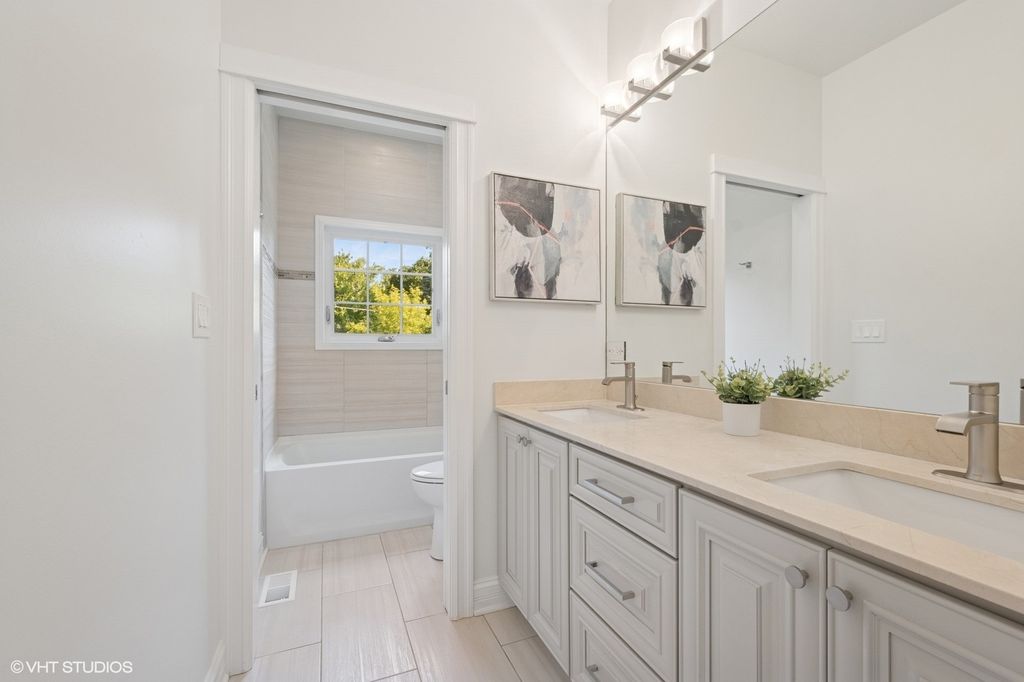 Rarely Available 2013 New Construction in Avoca/New Trier School District! Don't miss this exceptional opportunity to own a beautifully updated home in a prime location-just steps from playgrounds, shops, restaurants, and the forest preserve. Thoughtfully refreshed in 2025 with high-end custom finishes, this sun-drenched home features gleaming hardwood floors and soaring 9-foot ceilings on every level. Enjoy the spacious living room with a cozy fireplace, overlooking a brand-new Trex deck with gas grill hookup and a private backyard-perfect for entertaining. The formal dining room boasts a stylish tray ceiling, while the bright breakfast nook and inviting front porch offer ideal spots to relax. Upstairs, you'll find 4 spacious bedrooms with the convenience of a second-floor laundry room. The home is equipped with zoned HVAC for year-round comfort. The finished basement adds 600+ sq ft of versatile living space, complete with multiple egress windows, dual sump pumps with backup systems, and a Generac generator for peace of mind. Additional upgrades include elegant Hunter Douglas plantation shutters throughout the home and Hardie cement board siding.