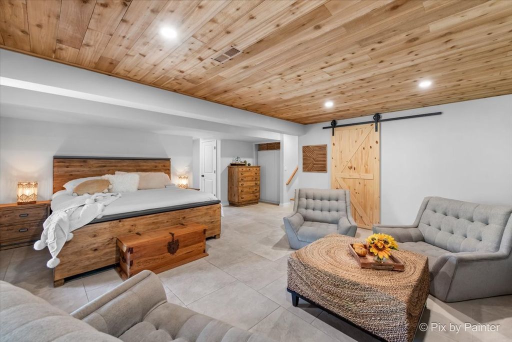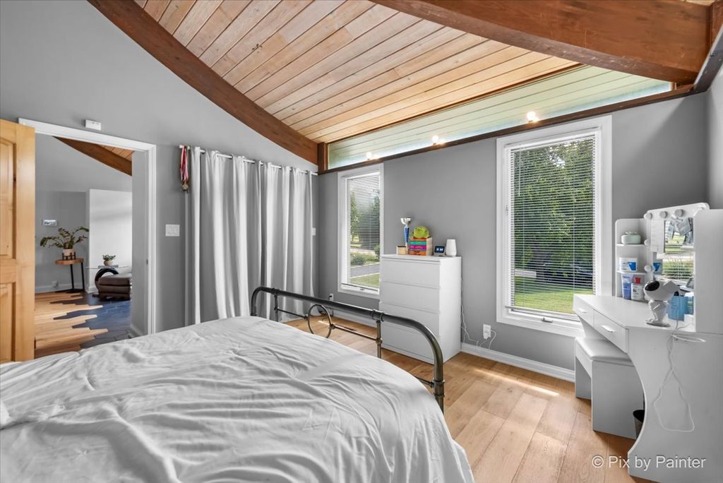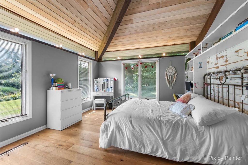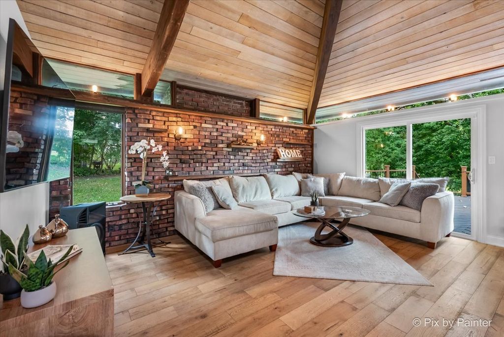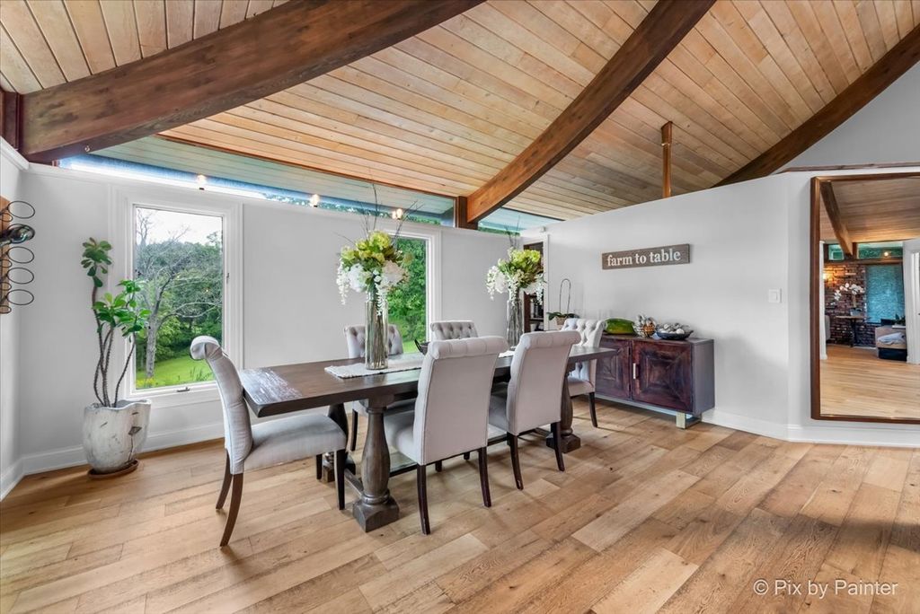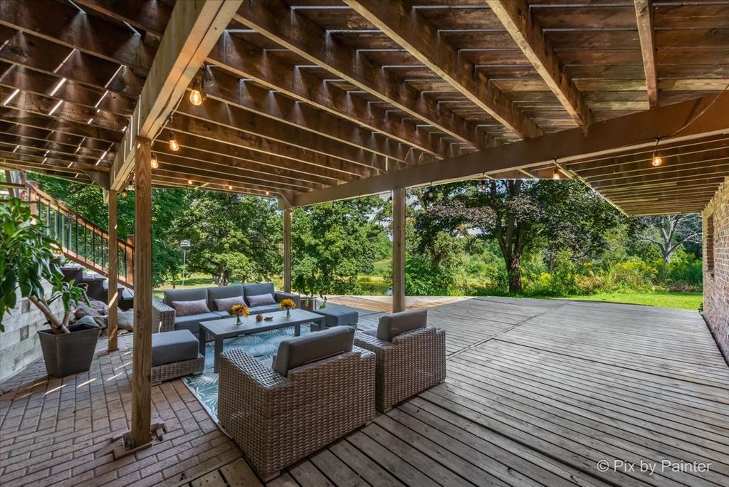 Multiple Offers RECEIVED!!!! You are buying both Lot #1 with the house and a barn and Lot # 2 buildable lot that will give you an option to have almost 5 Acres of One-of-a-Kind Don Erickson Masterpiece with Pond & Barn!!! Designed by renowned architect Don Erickson, a protege of Frank Lloyd Wright, this extraordinary exposed ranch blends timeless design with modern updates. The soaring wood-paneled ceilings peak at the center beneath a dramatic skylight, while clerestory windows line the tops of every room, flooding the home with natural light. Updated home features a new roof (October 2024), new electrical and plumbing (2022), and a remodel completely in 2022-25 -including a brand-new kitchen with an impressive 12-foot island. New Bathroom, New redesigned lower level. The open-concept main level connects the kitchen to the dining and entertaining areas, plus two spacious bedrooms with vaulted ceilings. Step out onto the deck overlooking your private oasis, complete with a pond and barn-perfect for hobby farming, gardening, or simply enjoying nature. The walk-out lower level offers exceptional versatility, featuring two additional bedrooms and a large family room transformed into a stunning master suite with an impressive brick fireplace. Sliding doors lead to another deck area, creating multiple outdoor living spaces. The property itself is a year-round playground-sled down your very own hill in winter, and in warmer months, enjoy swimming, kayaking, and fishing in the pound and near by community lake. Zoned Residential Estate-bring your animals and make it your own! Located in District 158 with Leggee Elementary, Marlowe Middle School, and Huntley High School. A rare architectural gem offering style, space, and recreation in one perfect package!