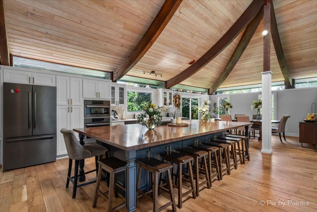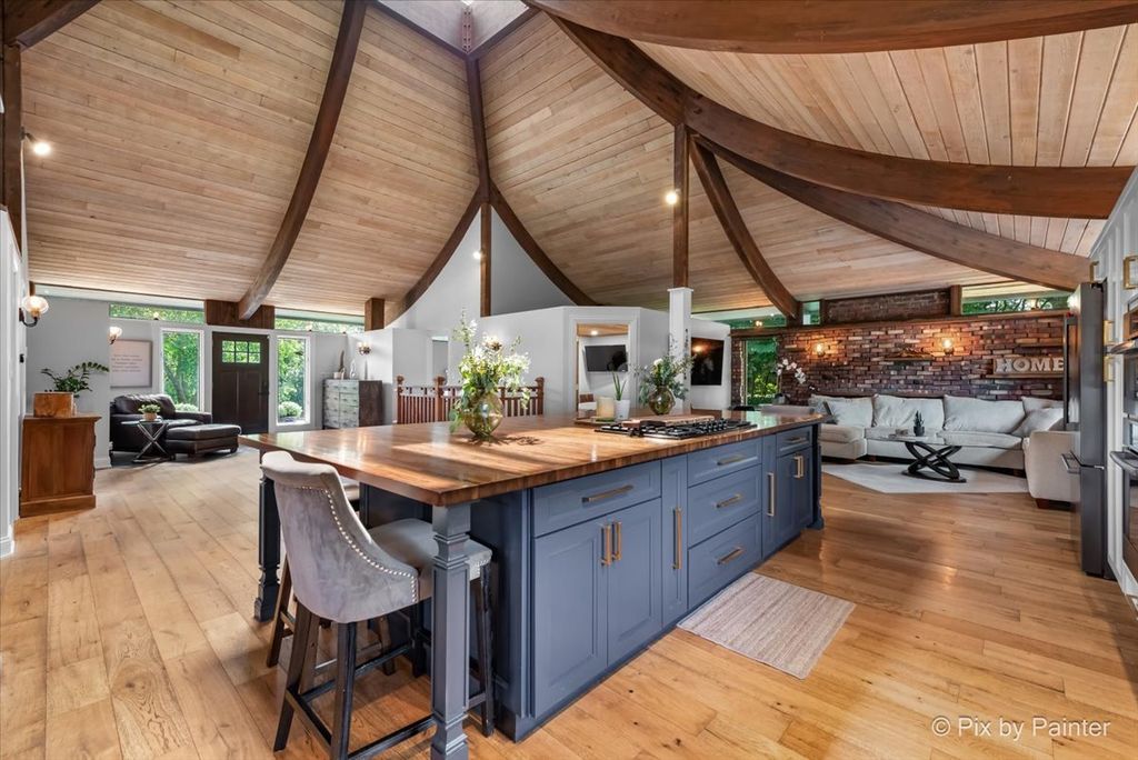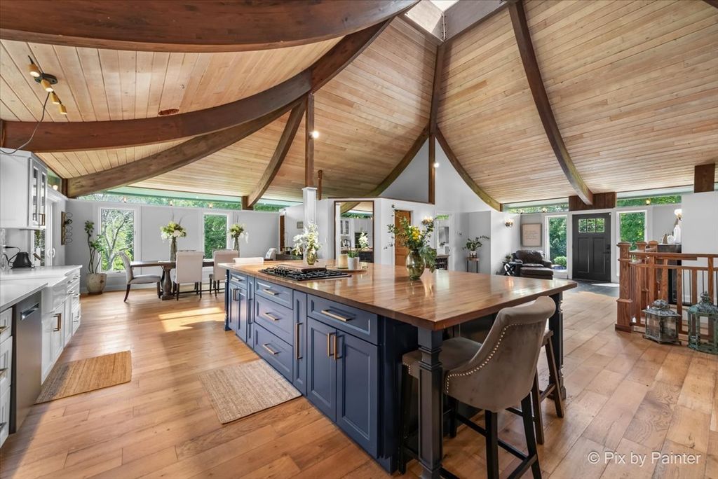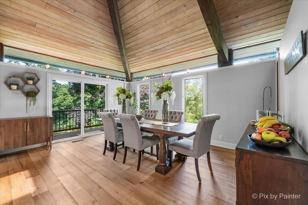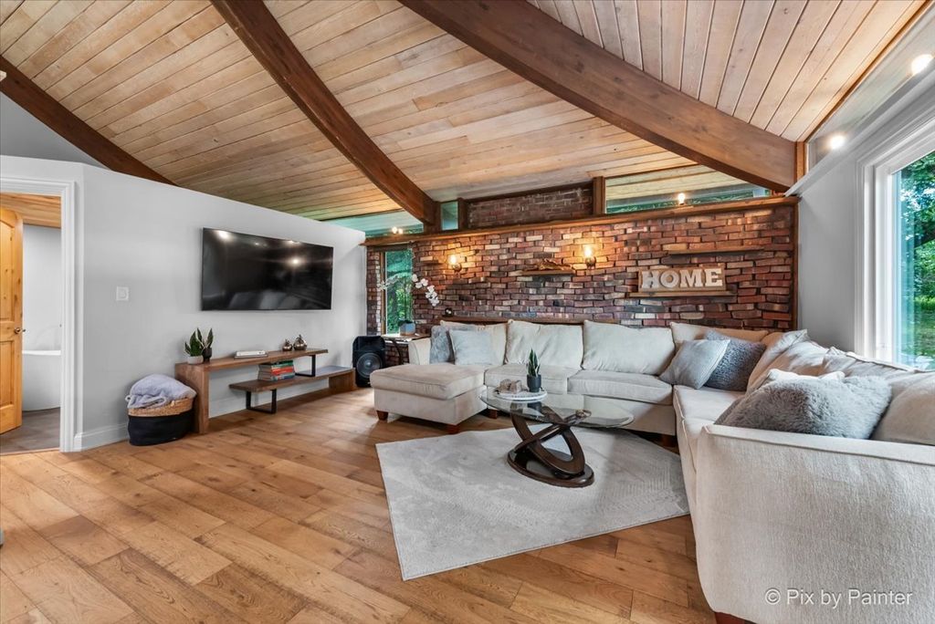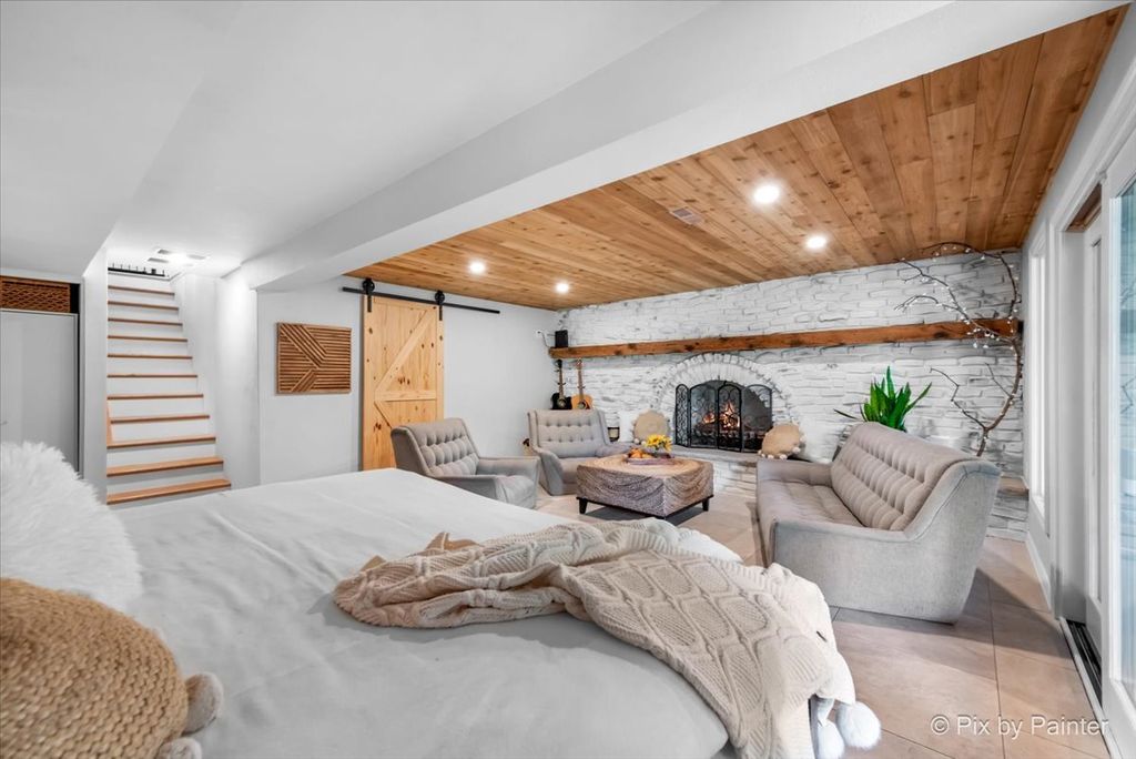 Multiple Offers RECEIVED!!!! You are buying both Lot #1 with the house and a barn and Lot # 2 buildable lot that will give you an option to have almost 5 Acres of One-of-a-Kind Don Erickson Masterpiece with Pond & Barn!!! Designed by renowned architect Don Erickson, a protege of Frank Lloyd Wright, this extraordinary exposed ranch blends timeless design with modern updates. The soaring wood-paneled ceilings peak at the center beneath a dramatic skylight, while clerestory windows line the tops of every room, flooding the home with natural light. Updated home features a new roof (October 2024), new electrical and plumbing (2022), and a remodel completely in 2022-25 -including a brand-new kitchen with an impressive 12-foot island. New Bathroom, New redesigned lower level. The open-concept main level connects the kitchen to the dining and entertaining areas, plus two spacious bedrooms with vaulted ceilings. Step out onto the deck overlooking your private oasis, complete with a pond and barn-perfect for hobby farming, gardening, or simply enjoying nature. The walk-out lower level offers exceptional versatility, featuring two additional bedrooms and a large family room transformed into a stunning master suite with an impressive brick fireplace. Sliding doors lead to another deck area, creating multiple outdoor living spaces. The property itself is a year-round playground-sled down your very own hill in winter, and in warmer months, enjoy swimming, kayaking, and fishing in the pound and near by community lake. Zoned Residential Estate-bring your animals and make it your own! Located in District 158 with Leggee Elementary, Marlowe Middle School, and Huntley High School. A rare architectural gem offering style, space, and recreation in one perfect package!
