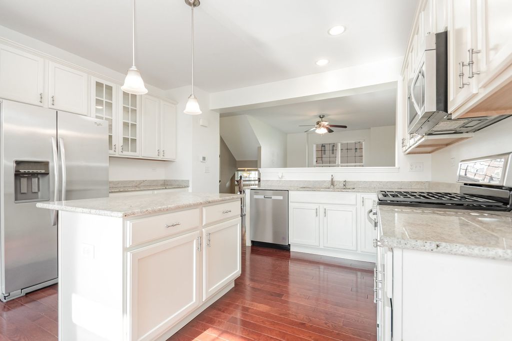 Discover this rare 3-bedroom townhouse in Sheffield Square. The house possesses several desirable features, including a kitchen with 42' white cabinets that features granite countertops, stainless steel appliances, a center island, pantry and private balcony. In addition, the home has hardwood flooring throughout the first floor, new carpet throughout the home and a newly renovated bathroom. The home is located in the heart of one of Orland Park's most desirable communities and combines modern comfort with unbeatable convenience. The home connects directly to a walking path for scenic walks and the train station for a stress-free commute. In addition, it is centrally located near annual fireworks displays, summer carnivals, and the renowned Centennial Park and Aquatic Center. Shopping, dining, and entertainment are all minutes away.