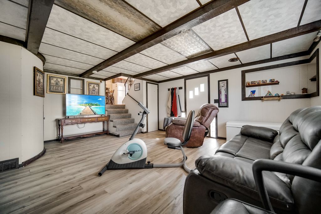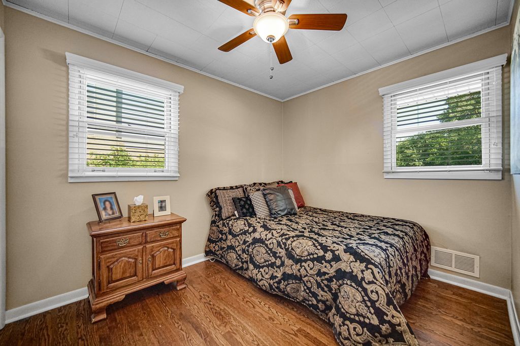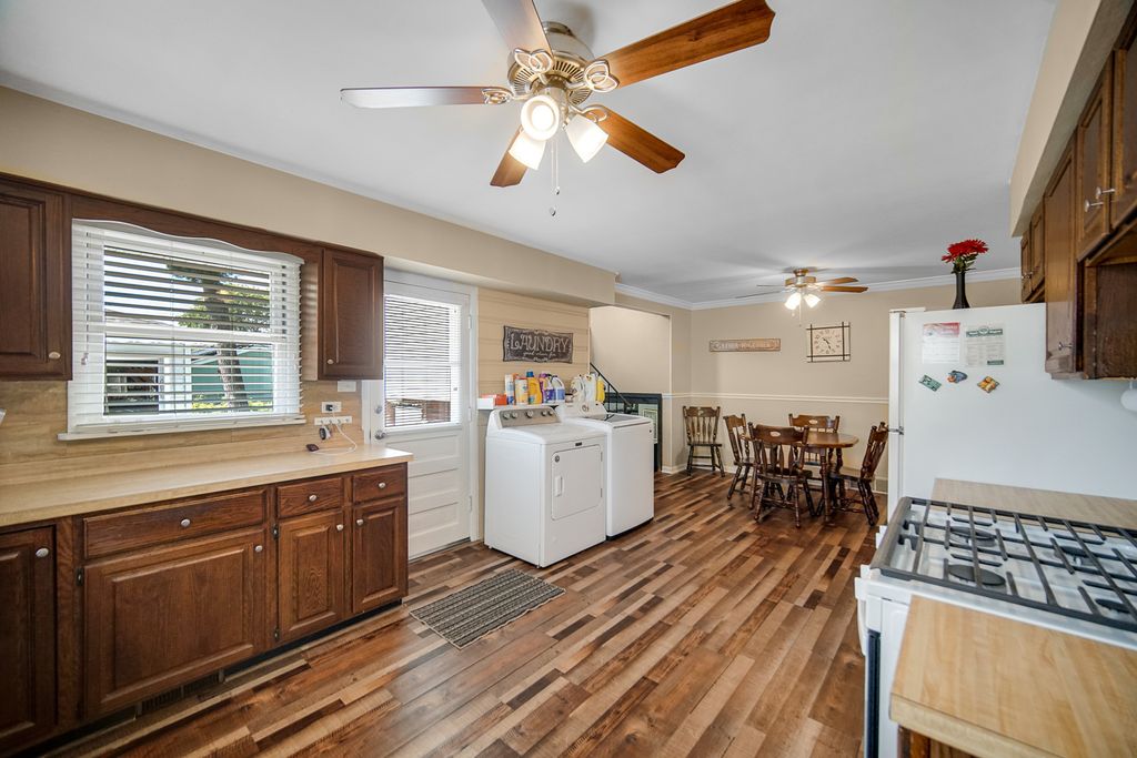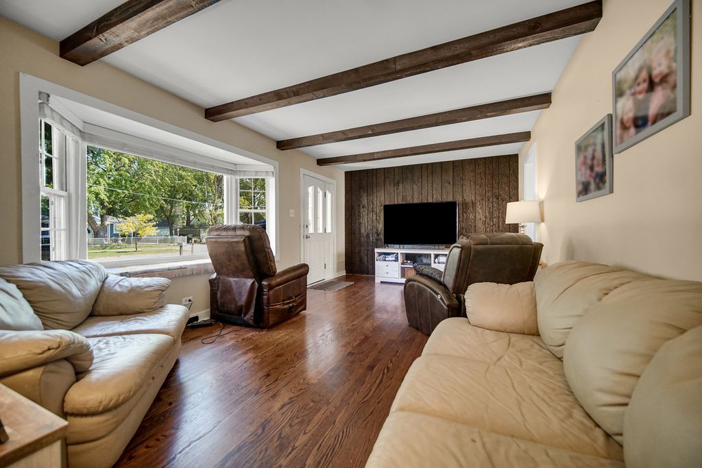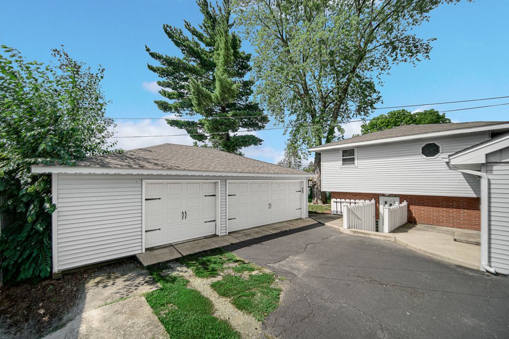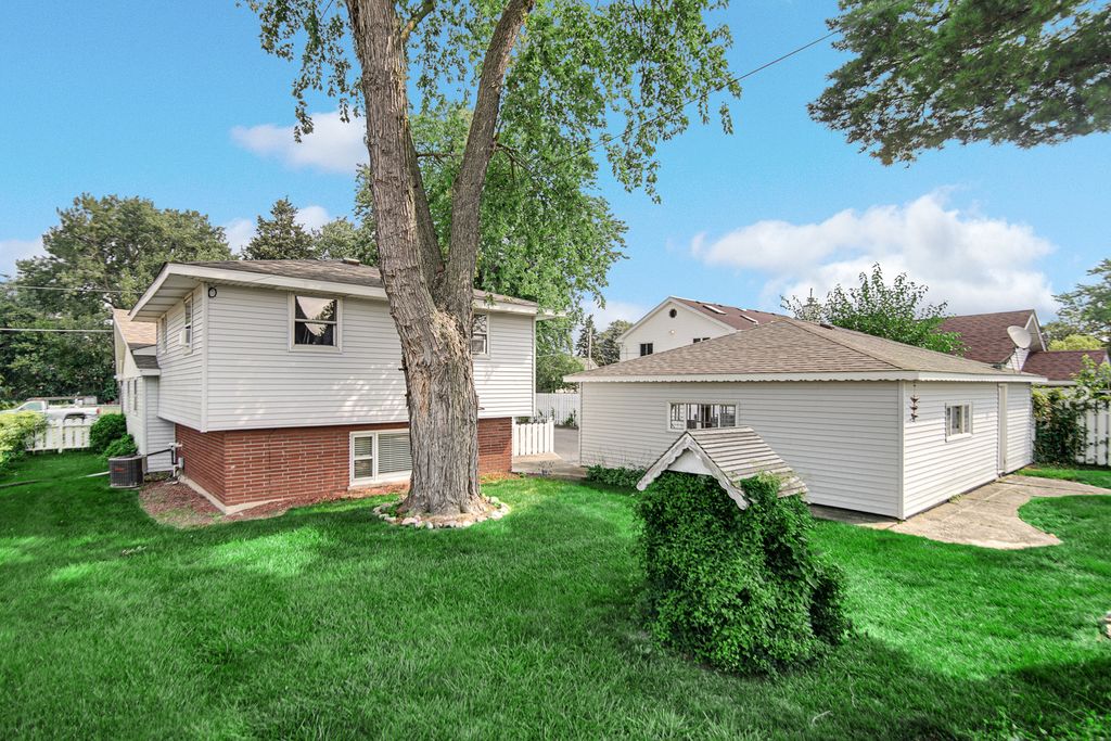 This home has been well maintained and all of the major updates have been done. The roof on the home is 7 years old, the new vinyl siding on the home was put on last year to match the garage siding that was put on 7 years ago. The oversized 3.5 car garage had a new concrete flooring put in recently. Newer garage door openers with smart technology and newer garage doors were put in 7 years ago. The list of other items within the last 7 years are: remodeled main bath, refinished hardwood floors, repainted interior walls, newer dryer. Washing machine, stove/oven, refrigerator, and furnace are 1 year old. There are 2 bedrooms on the main level with a full bath and 2 bedroom upstairs (6 stairs) to the other 2 bedrooms with a full bath. There is a lower level rec room with a walkout to the backyard. The family room has a nice sized bay window overlooking the front yard and there is plenty of space to arrange your furniture. Very good sized family room and kitchen! This home sits on a good sized yard and it is fully fenced in. This yard is nicely landscaped and deep. This is unusual for the area to find a yard this big. Also, you are only about 2 miles away from the airport, minutes away from shopping and dining, and a short drive to the expressways. So many nice things to say about this location!