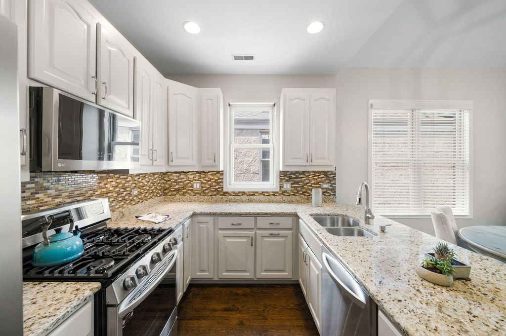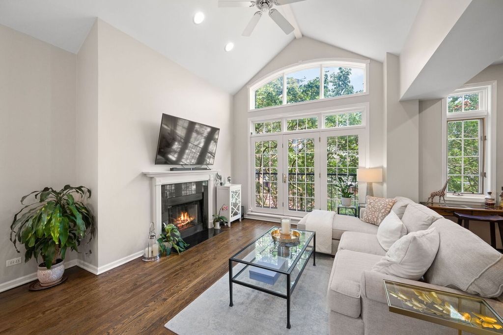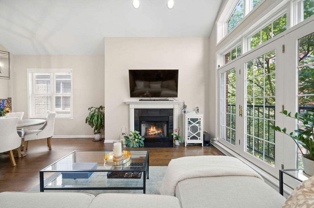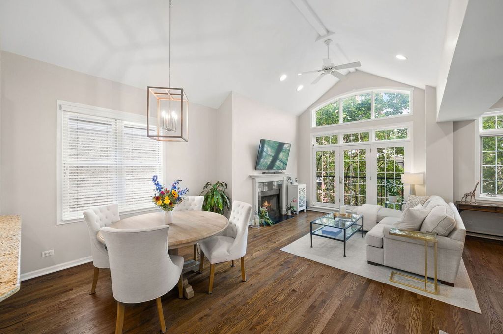 Enjoy the very best of Lincoln Park living in this super bright and spacious top-floor condo with soaring 14' vaulted ceilings and an extra-wide 20' interior. The open layout is filled with natural light from oversized windows and a Juliette balcony, creating an airy, inviting atmosphere even on a dreary day. Terrific kitchen was refreshed with newly updated cabinetry, a stylish glass tile backsplash, and newer stainless steel appliances. A large breakfast bar flanks the living area, where a cozy fireplace makes the perfect focal point for entertaining or relaxing. Refinished hardwood floors run throughout the well-designed home. The generous primary suite offers two walk-in closets and opens to a private deck-ideal for grilling, or unwinding after a long day. The spa-like stone bath features double sinks, a whirlpool tub, and a separate shower, plus a linen or storage closet. The second bedroom is ideal for home office or guest room (or both!) while the ample closet space keeps the home feeling organized and clutter-free. All of this in a peaceful, top-floor setting with attached garage parking included. Steps from great restaurants, plentiful shopping, awesome nightlife, numerous parks, and all transit options -this sensational home puts you right in the heart of it all.