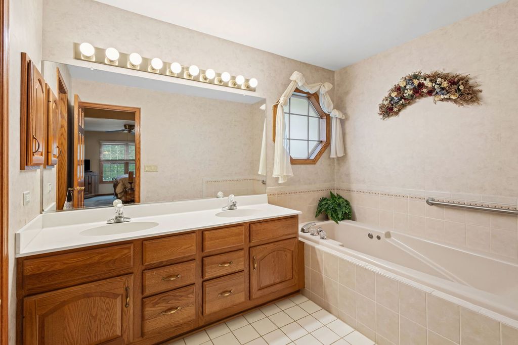 WELCOME HOME to Hickory Ridge community of West Elgin! This spacious Ridgewood model townhome offers 2,700+ sq. ft. of finished living space with 3.1 baths and a rare first-floor master suite featuring a whirlpool tub, dual sinks, separate shower & walk-in closet. The cathedral-ceiling great room with skylights and fireplace flows into the dining area and deck-perfect for entertaining or relaxing with wooded views. A bright kitchen offers plenty of cabinets , and eat-in space. Upstairs you'll find a versatile loft, large bedroom, full bath, and a storage room. The finished basement provides a huge family room, 3rd full bath, and flexible space for a 3rd bedroom, recreation room, gym, or in-law arrangement. With oversized closets, a dedicated storage room, and abundant basement storage, this home has space for everything. Additional highlights: welcoming foyer, first-floor laundry, 2-car attached garage, and maintenance-free living. Convenient location near Randall Rd, Rt 20, I-90, Metra, shopping, and dining. The seller is also including a 1-year Choice Home Warranty.