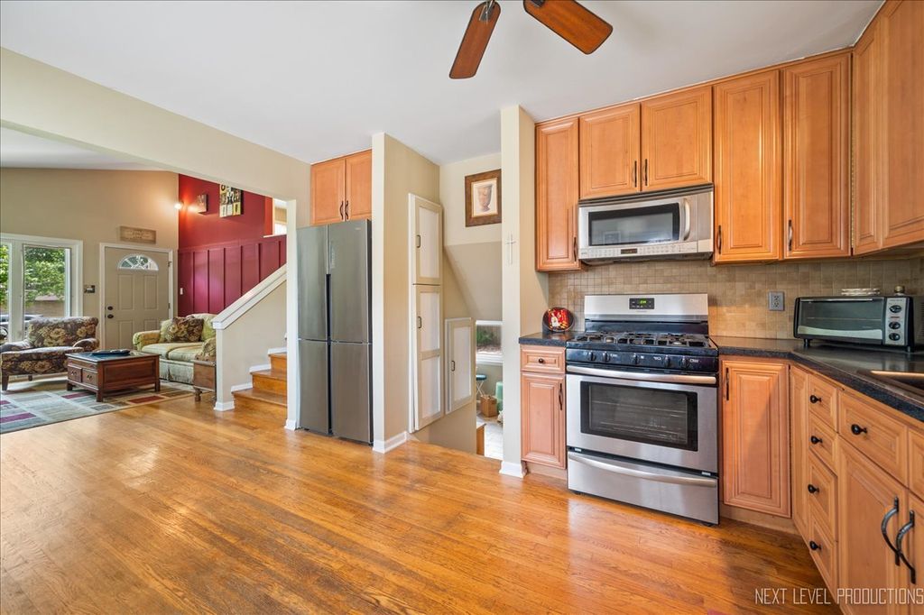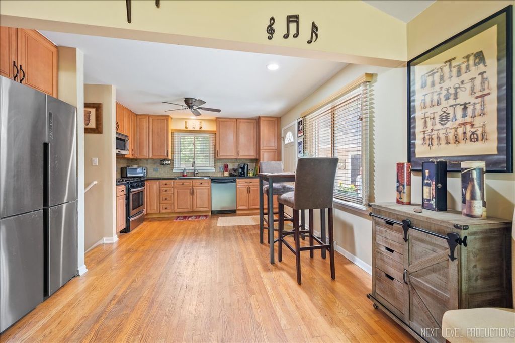 Located within walking distance to the vibrant downtown Bartlett, this home offers unparalleled convenience to the train, shops and local amenities, with the elementary school, park, restaurants, pubs and golf course no more than 4 blocks away. A Meticulously maintained and move-in-ready home features three bedrooms and two full baths, includes Brand New Upgraded second floor carpeting and fresh New Flooring on the primary level...all providing a clean, modern living space. Inside, you'll find a spacious living room ideal for relaxing and entertaining. Recent upgrades include a New washer, Kohler sink, faucet, and garbage disposal in the kitchen, as well as a Completely Renovated upstairs bathroom and plumbing, drywall, stylish tile vanity, sink, fixtures, and waterproof vinyl plank flooring. The lower bathroom has also been Fully Updated from top to bottom with contemporary fixtures. The interior boasts fresh paint and new wall trim throughout, creating a bright and welcoming atmosphere. Outside, the home has been beautifully refreshed with premium Sherwin Williams paint, including doors and shutters, enhancing its curb appeal. The garage features a New insulated door with a heavy-duty spring assembly and a modern Chamberlain Wi-Fi-enabled opener and New vinyl siding . The garage and driveway are extra wide. New Facia and soffits recently installed for peace of mind. Upgraded laundry room with copper plumbing with tub, and sink, combining style and functionality. This stunning home, with its stylish updates, practical amenities, and unbeatable location, make it an ideal sanctuary for your family to grow and thrive.