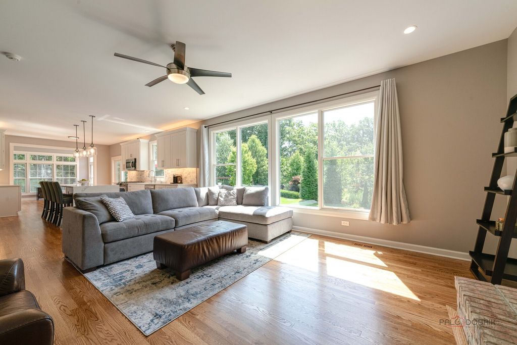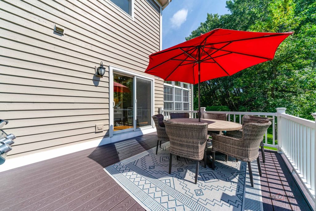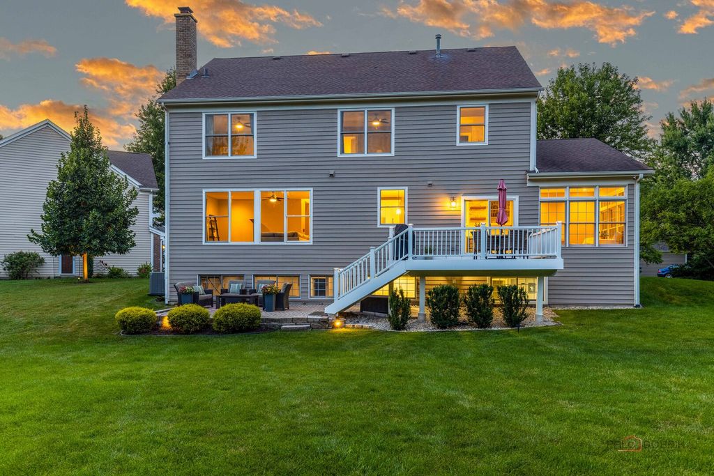 PRIME LOCATION, STYLISH UPDATES, AND A PEACEFUL CUL-DE-SAC SETTING-THIS GLENMORE WOODS HOME IS SURE TO CHECK ALL THE BOXES! Perfectly situated on a private .35-acre lot-one of the largest in the subdivision-this property is framed by lush, mature landscaping that creates a truly serene backdrop. The curb appeal captivates instantly, but it's the extensive upgrades that will steal your heart: brand-new oak hardwood flooring, fresh designer paint, a stunning kitchen remodel with quartz countertops and new cabinetry, plus major mechanical improvements including a new furnace and A/C (2019), water heater (2020), sump pump with battery backup (2019), and a low-maintenance Trex deck (2017)-just to name a few (see attached list for more). Inside, a dramatic two-story foyer sets the tone with abundant natural light and a welcoming sense of space. To each side, formal living and dining rooms provide elegant, flexible areas for gatherings large or small. At the heart of the home, the showstopping kitchen features impressive quartz counters, chic marble tile backsplash, abundant white cabinetry with crown molding and under-cabinet lighting, quality stainless steel appliances, and a generous center island with breakfast bar seating. Whether you're whipping up a gourmet feast or simply enjoying your morning coffee, this kitchen was designed for both beauty and function. The sunny breakfast area overlooks the backyard and opens to the Trex deck-perfect for summer dining-while steps below, a brick paver patio and backyard firepit area invite evening relaxation. Back inside, the family room offers a warm, intimate atmosphere with a gas log fireplace, ideal for movie nights or catching up with loved ones. A bright sunroom adds even more versatility, easily transforming into a home office or reading nook. A half bath and well-appointed laundry/mudroom complete the main level. Upstairs, double French doors lead to the primary bedroom suite, where vaulted ceilings, a custom-organized walk-in closet, and a spa-like bath with a soaking tub, dual-sink vanity, and separate shower create a private retreat. Three additional generously sized bedrooms, plus a second full bath with dual-sink vanity, complete the second floor. The finished, city-loft-inspired basement offers endless possibilities, from an in-law or hangout retreat to an expansive recreation space. It includes a large rec area, and a versatile bonus room with its own closet and bath access. The unfinished section provides abundant storage or finish and add even more living space. The attached 2.5-car garage is finished with a sleek epoxy floor for style and durability, and is equipped with an EV charger outlet-ready to power your electric vehicle with ease. Located just minutes from two scenic paths-one leading to Middlefork Savanna Forest Preserve and the other to the North Shore Bike Path. All within the highly acclaimed Blue Ribbon Rondout (K-8) School and award-winning Libertyville High School district. This is a must-see!