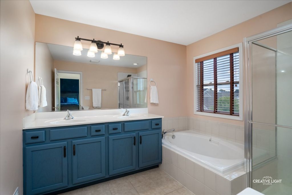 Welcome Home to Mill Creek and this exceptional 4 bed, 3.5 bath village home featuring a rare 3-car garage. Step inside and you'll be wowed by the expansive 2-story foyer, freshly painted walls, and gorgeous hardwood floors. The main level features a spacious dining room, a well-appointed kitchen, an eating area that flows seamlessly into the cozy family room adorned with a beautiful fireplace. Finishing out the main floor is a convenient laundry room/mudroom and a powder room. The kitchen was updated in 2021 showcases all-new, high-end stainless steel appliances. Upstairs, discover three spacious bedrooms and two bathrooms. The master bedroom is a true retreat with vaulted ceilings, a walk-in closet, double sinks, a garden tub, and a walk-in shower. The deep pour basement offers additional living space, including a 4th bedroom, full bath, exercise room, and a media room complete with a wet bar! There is also a large storage room. Outside, a beautiful deck awaits, functionally designed with enclosed storage below. Adjacent to the deck, you'll find a private patio with stamped concrete and a wood-burning fireplace, creating the perfect ambiance for outdoor gatherings. This home stands out as one of the few Village Homes with its fully finished deep pour basement and an extra deep 3-car garage. Also, as a corner house, there is extra room behind the property for off-alley parking for guests. Other bonuses include a newer furnace (2018), hot water heater (2018), washer/dryer (2018), and radon system installed in 2021. Enjoy maintenance free living with a LOW HOA fee.
