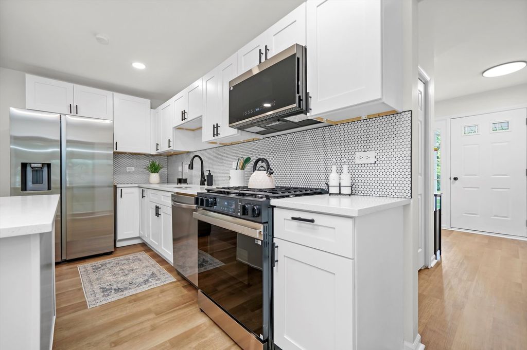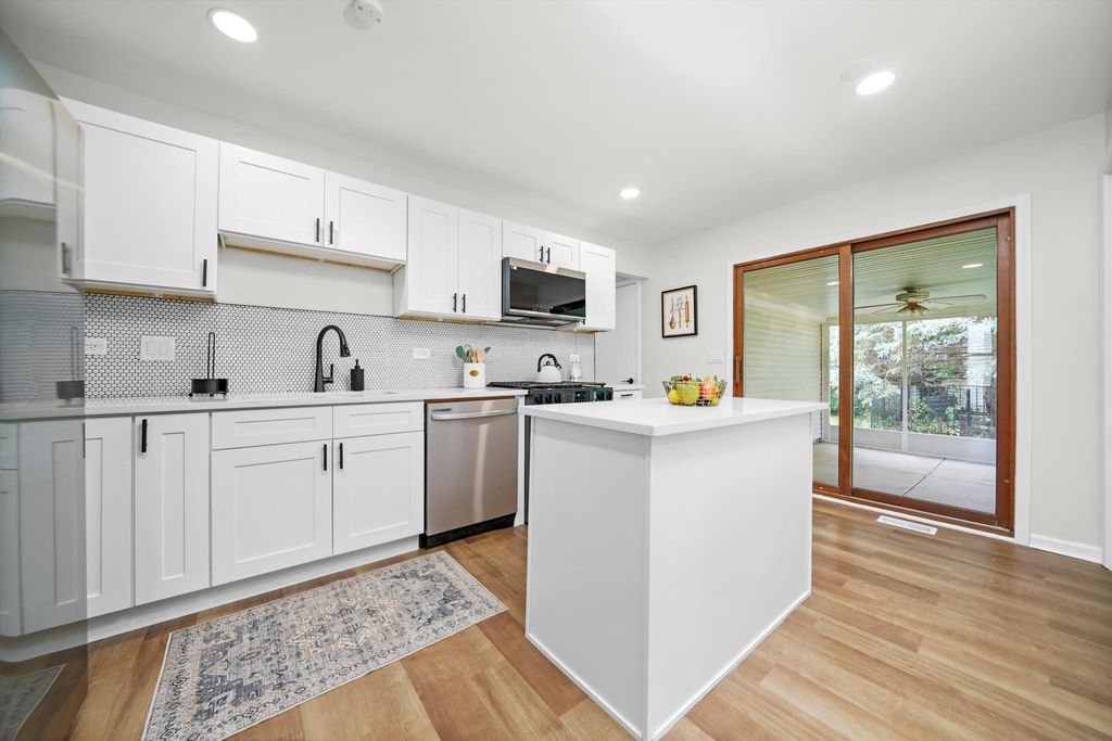 Welcome home to this stunning, move-in ready 3-bedroom, 2-bath split-level in highly sought-after Bolingbrook, featuring a unique and versatile layout that perfectly balances open living and private spaces. From the moment you step inside, you'll be wowed by brand-new luxury vinyl plank flooring, fresh modern paint, recessed lighting, and sun-drenched rooms throughout.The designer chef's kitchen is the heart of the home, boasting white shaker cabinetry, quartz countertops, a spacious island with storage, mosaic tile backsplash, and stainless-steel appliances. Upstairs, discover three spacious bedrooms, including a primary suite with walk-in closet and access to an updated full bath with sleek, modern finishes. The lower level offers a large family room with plush new carpeting, a full bath featuring gorgeous tile, and a laundry/utility room with washer/dryer hookups. The partially finished basement plus a sub-basement with exposed black ceilings offers a perfect blank canvas for a home gym, playroom, media center, or entertainment area - truly highlighting the home's flexible and unique floor plan. Step outside to your enclosed porch overlooking a sprawling backyard - ideal for entertaining, summer fun, and relaxing evenings. Located in the top-rated Valley View School District, this home is conveniently close to shopping, restaurants, parks, The Promenade Bolingbrook, and offers quick access to I-355 & I-55 for an easy commute. With its unique layout, modern updates, versatile living spaces, and prime location, this home is a rare find! Don't miss your chance - schedule your showing today!