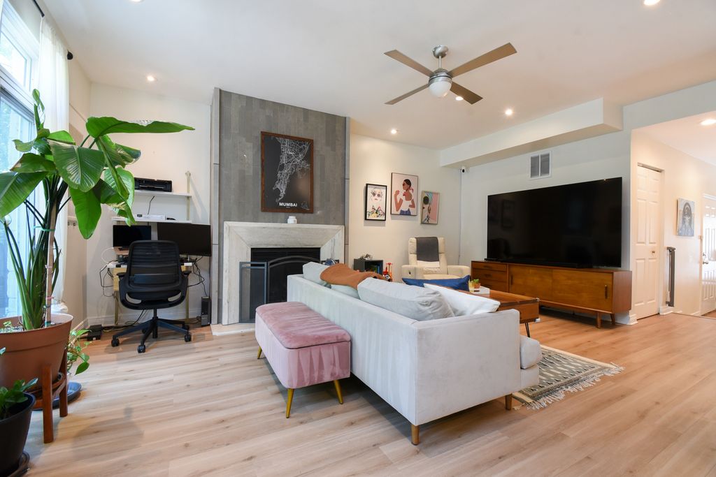 Welcome to your move-in ready oasis in one of the South Loop's most coveted gated townhome communities! Be the envy of your neighbors living in this quiet, private courtyard-facing, two-story townhome with a massive end-unit patio. Phenomenal floor plan includes an open-concept living room with a custom wood-burning fireplace, updated kitchen with newer stainless appliances, custom island, and quartz counters. Rare layout with a powder room on the main level. Kitchen and living areas are flooded with natural light and lead to the patio with custom-designed pavers, rustic planters with arborvitae, and a hydrangea tree for privacy. This home has been substantially updated during the current owner's tenure, with all major mechanicals and appliances modernized. Spacious bedrooms on the 2nd level, both with updated en suite bathrooms. Newer in-unit laundry conveniently located on the 2nd level as well. Private 1-car garage + 1 exterior pad space included for a 2nd vehicle. High ceilings in the garage offer additional storage space. Steps to the Lake, Soldier Field, Museum Campus, three nearby parks, and Fred Anderson Dog Park. Easy access to LSD, 90/94, and red/orange/green EL lines. South Loop Elementary. Extremely pet- and kid-friendly, with 2 dog parks and a children's park just minutes away. Over $800,000 in reserves with recent community modernization projects completed. No upcoming specials, no rental restrictions.