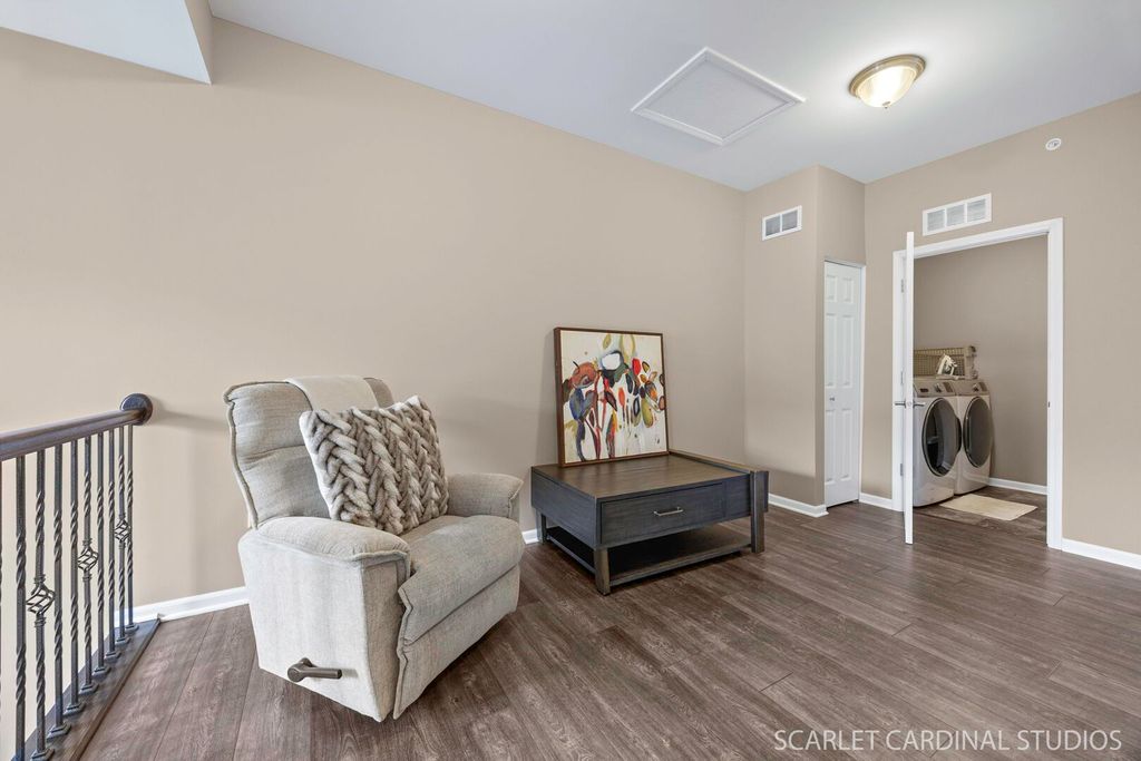 Gorgeous three-story townhome in the sought-after Mayfair Subdivision, featuring a private entrance and attached two-car garage. The lower level offers a versatile family room, perfect as a home office, gym, or play area. Upstairs, the main level boasts a spacious living room with a charming bay window and luxury flooring that extends through much of the home. The open layout flows seamlessly into the chef's kitchen, complete with stainless steel appliances, an island with seating, custom backsplash, two pantries, and a bright eating area with sliding glass doors to your private balcony. The primary suite is a true retreat, featuring a custom walk-in closet and private bath with a dual vanity, shower stall, and oversized soaking tub. The generously sized second bedroom also includes an upgraded closet. Laundry is conveniently located on the same floor as the bedrooms. Enjoy this townhome's fantastic location near scenic walking trails, local shopping, and dining, Whole Foods, HomeGoods, DSW, Nordstrom Rack, Home Depot, Road Runner Sports, Chase Bank, and a variety of restaurants. Located in the highly acclaimed Naperville 204 school district. Don't miss the chance to call this beautiful home your own!