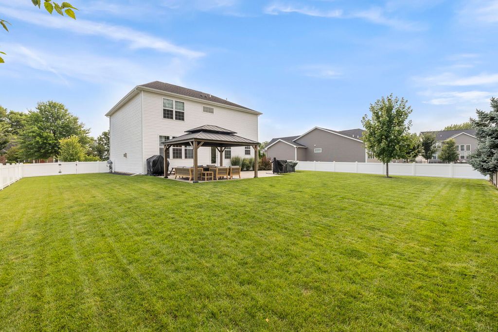 Check out this beautiful 4 bedroom/2.5 bathroom home with a 3 car garage that was built in 2021 by Pulte Homes! Enter the foyer and be greeted by the luxury vinyl flooring throughout the main level. The family room has a gas fireplace, windows that over look the large backyard, and allows for plenty of natural light. The eat-in kitchen has an island with a breakfast bar, granite countertops, plenty of cabinets, stainless steel appliances, a range hood, pantry closet with built ins, and a door to the paver patio. The mud room has a coat closet, extra cabinets, and a custom bench with hooks. The flex room has many options; home office, playroom, sitting room, and more. The powder room and coat closet round out the main level. Head up the upgraded staircase to find a primary bedroom that has an ensuite bathroom offering a large walk-in shower with a bench, double sinks, and a walk in closet with organizers. The three additional bedrooms all have walk in closets with organizers. Also, there is a hall linen closet and the laundry room with a utility sink on the second level. The unfinished basement with rough in plumbing is waiting for someone's finishing touches. Attached 3 car garage with epoxy flooring, heater with Nest thermostat, insulated garage and garage doors, and ceiling fan. Check out the fully fenced backyard and a large paver patio with a gazebo. Upgrades: epoxy floor in the garage, heater in the garage, insulated garage & garage doors, walkway to the backyard, large paver patio, gazebo, Cat 6 cables run throughout the home, upgraded staircase, larger trim, all rooms wired for ceiling fans, all closets and the pantry have closet organizers, the bench in the mudroom, large walk in shower with bench in the primary, luxury vinyl flooring, and much more! Close to schools, parks, restaurants, shopping and minutes from the highly desired Downtown Plainfield! The community park is just a few blocks away. This home is one you will not want to miss!