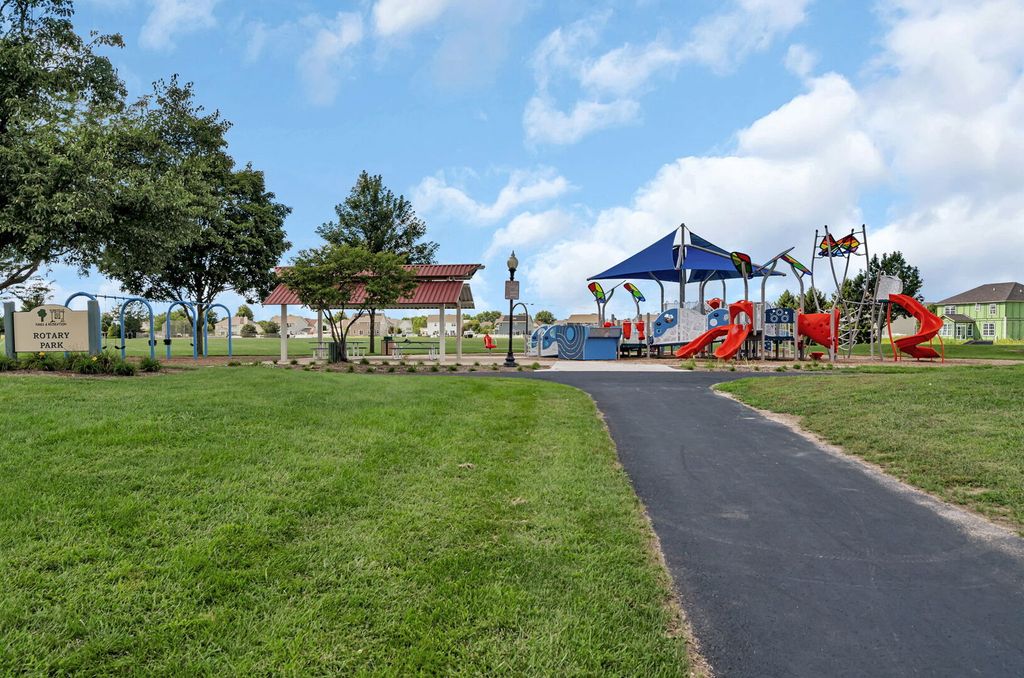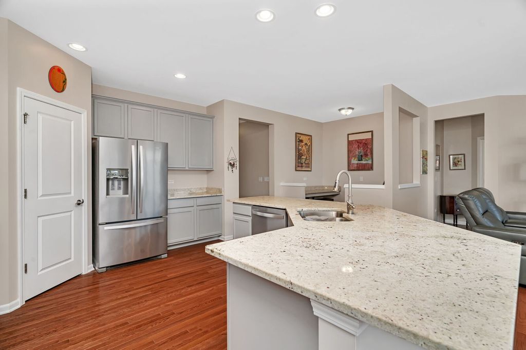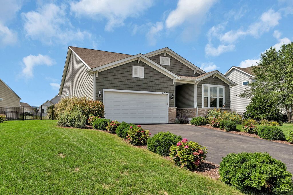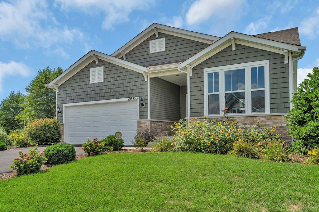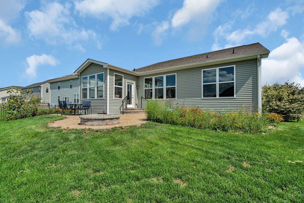 Beautiful 3 Bedroom, 3 Bathroom Ranch with Full Finished Basement & Scenic Yard! This beautifully designed ranch offers 1,969 sq. ft. of main floor living with an open floor plan, 9' ceilings, and a split-bedroom layout for added privacy. The kitchen boasts 42" shaker cabinets, granite counters, breakfast bar, walk in pantry and a large breakfast area for table space, opening to both the family room and a sunroom, an upgraded builder's option perfect for relaxing or entertaining. A "study" nook off the kitchen allows for the perfect work from home situation, home schooling, homework, or crafting, the choices are yours. The master is a suite with walk in closet and private bath. All baths have linen closets and laundry is located on the main floor. 9 foot ceilings and hardwood floors flow through the entire home. The full finished, deep pour, basement expands your living space with a recreation room, playroom, gaming area, and a 3rd full bath. Step outside to a lovely landscaped, fully fenced backyard featuring a kidney shaped paver patio with fire pit, backing to a peaceful open space with native plants. The garage offers a surprise, while it looks like a 2 car, a generous bump-out creates room for a 3rd stall with storage. Interior was painted and roof replaced in 2025, humidifier in 2024.Walk to park and pool. Close to shopping and restaurants. Move-in ready and packed with thoughtful upgrades, this home blends style, function, and comfort.