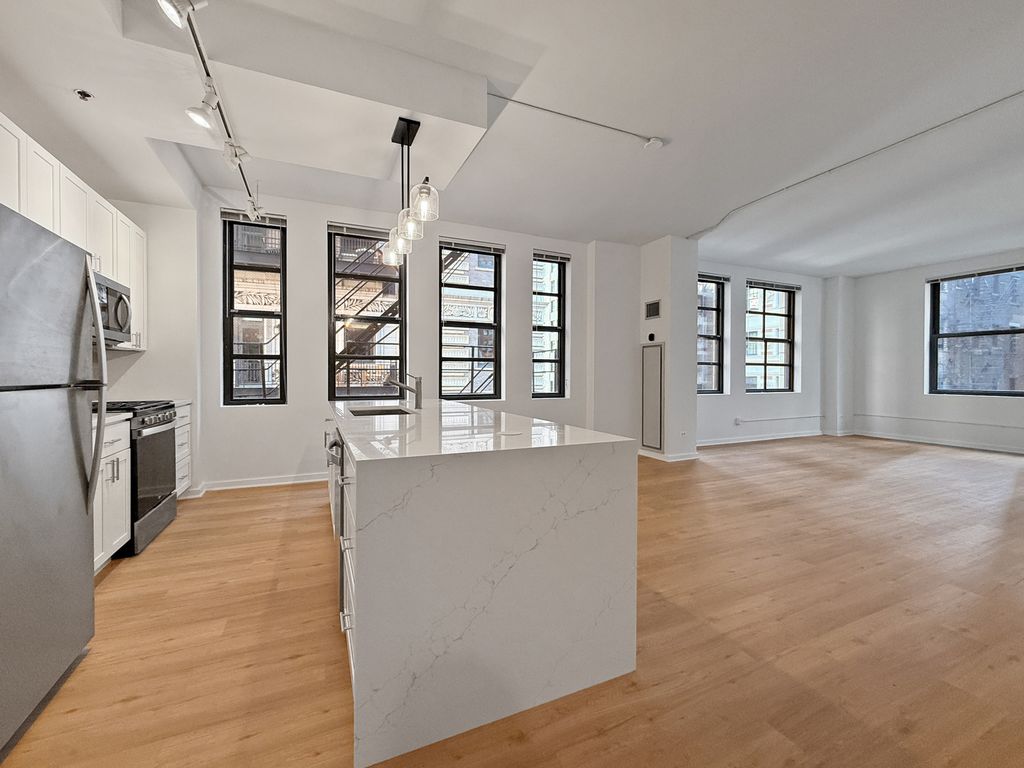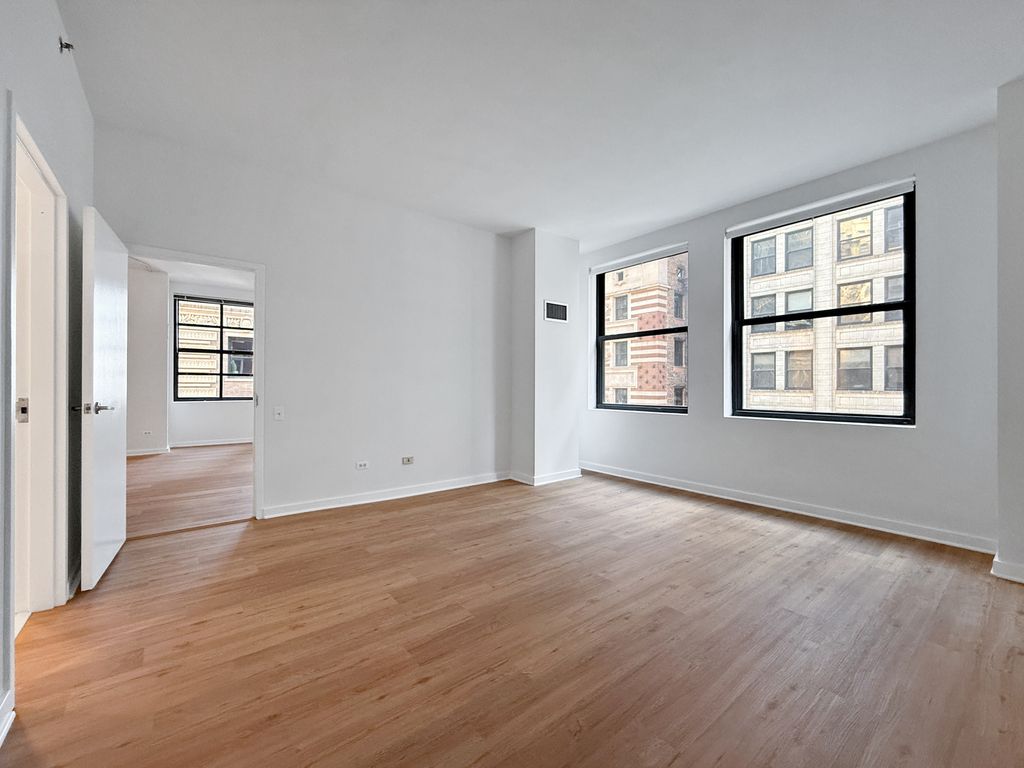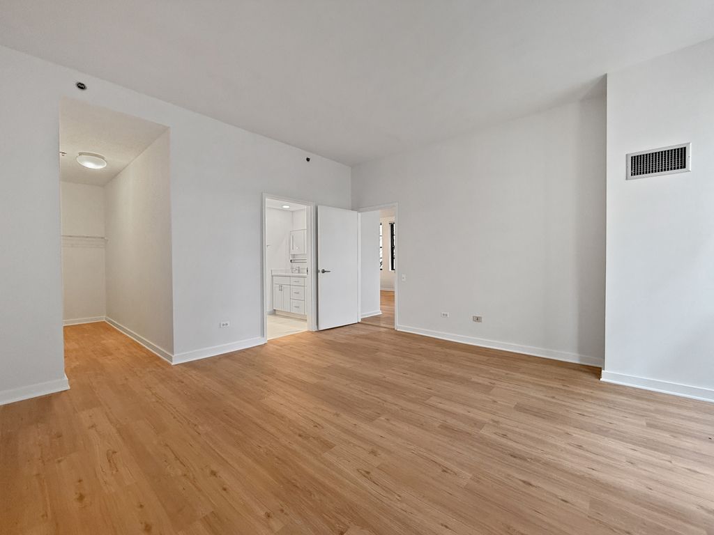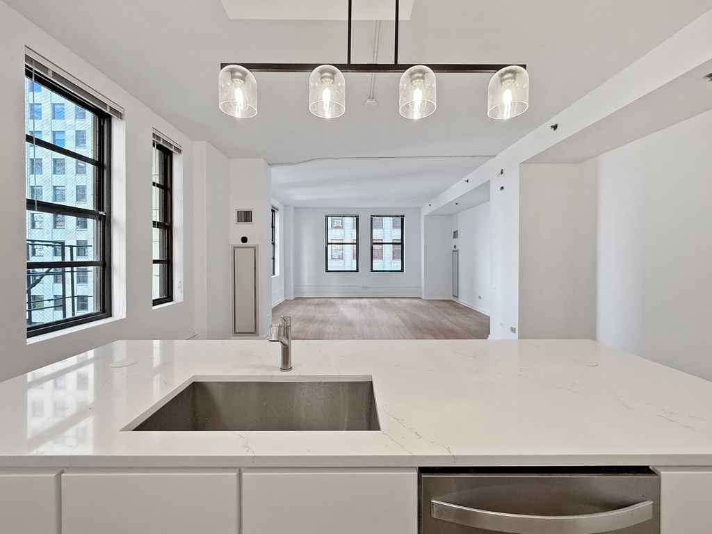 Live in the middle of it all! Walk to work, shopping, transportation, entertainment, Grant Park, and the lakefront. This 1600+ sqft corner unit 2-bedroom/2-bath soft loft, boasts bright South and West views, a new kitchen with quartz waterfall counters, and a full suite of new stainless steel appliances. The spacious combined living/dining space provides plenty of room for hosting the extended family for a sit-down dinner and room to socialize afterward in a living area that will accommodate the largest sofa pit group and television. The primary bedroom with en-suite bath and walk-in closet will easily accommodate a king bed, dressers, and a sitting area! The secondary bedroom will also accommodate a king bed and furniture. A separate flex space could be an office/den, a home gym, or even a guest bedroom area. A stacked washer/dryer rounds out the conveniences offered by this well-appointed unit. The large storage room is located directly across the hall from the unit. HOA fees include heating, air-conditioning, and gas, so electricity and Internet are paid separately. Pet-friendly building permits both cats and dogs.