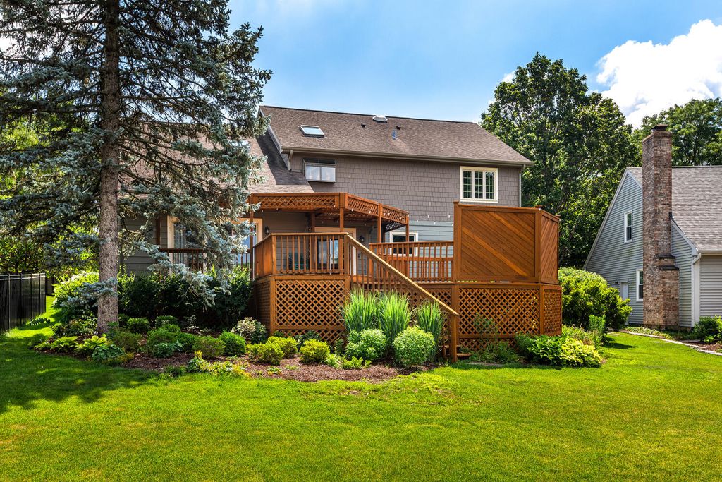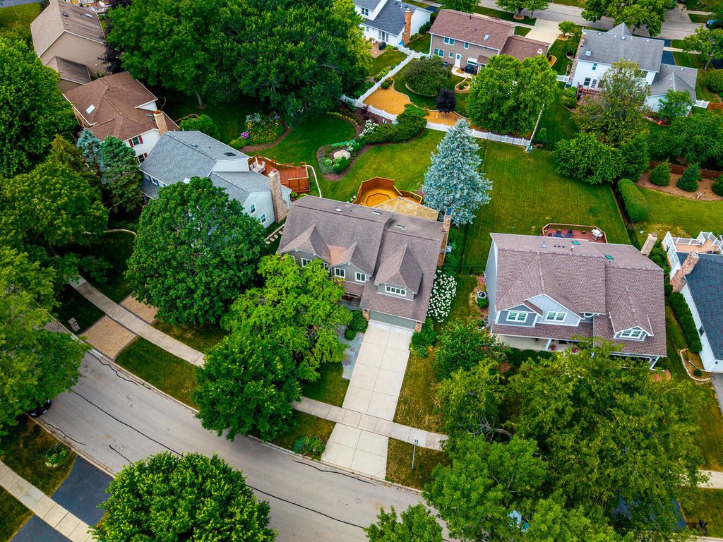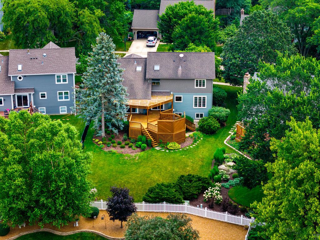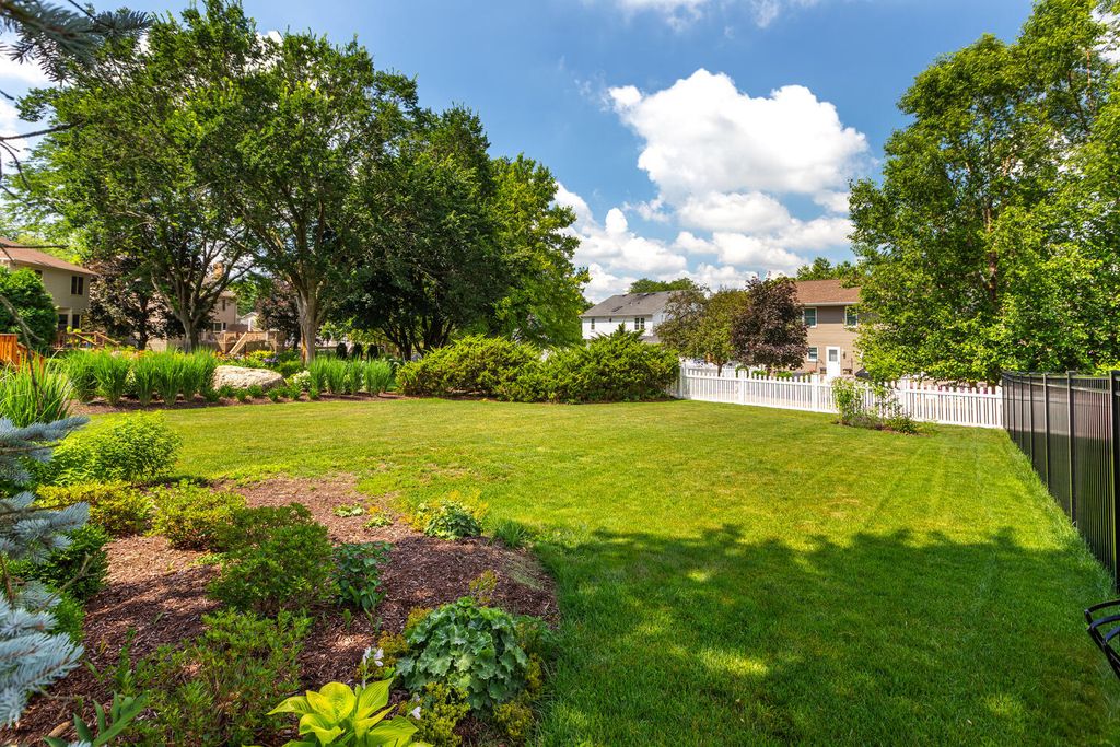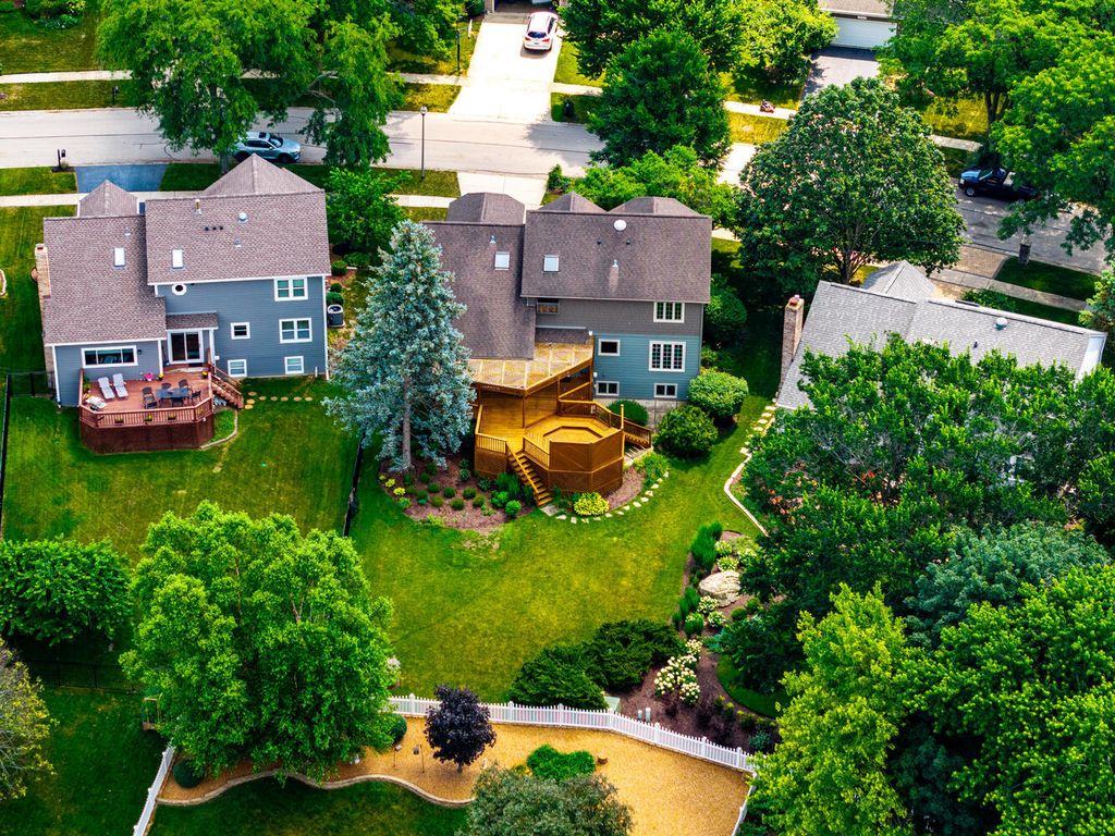 Welcome to this stunning two-story home nestled in Naperville's highly sought-after Farmington Subdivision, with award winning district 203 schools, Riverwood Elementary, Madison Junior High, and Naperville Central High School. Offering 5 bedrooms and 3.1 baths, this spacious residence showcases a timeless and functional floor plan perfect for everyday living and entertaining. The beautifully appointed eat-in kitchen features stainless steel appliances, a cooktop on the island, double oven, granite countertops, and updated lighting throughout. The kitchen flows seamlessly into the cozy family room, complete with a masonary chimney/gas fireplace, built-in beverage center, a charming beamed ceiling, and easy access to the expansive partially covered deck (26x15). Designed for outdoor enjoyment, the deck includes separate hosting and dining areas (23x22), overlooking a nicely landscaped yard that provides both privacy and comfort. A lower patio adds versatility-ideal extra seating. Inside, recently refinished hardwood floors on the first floor, enhanced by large windows that invite in natural light and a strong connection to the outdoors. Upstairs, the generous Master Suite offers vaulted ceilings, an extra-large walk-in closet, a whirlpool tub, separate shower, and double vanity. The additional bathrooms have also been thoughtfully updated with modern finishes. The finished English basement extends the living space with a spacious family room, full bath, and a large fifth bedroom or home office, along with a substantial storage area. Numerous updates include a new water heater (2024), sump pump (2024), furnace and A/C (2018), concrete driveway (2017), windows replaced throughout the home (Marvin and Pella), sliding glass doors (Anderson), and the siding has been replaced with high end fiber cement board. Pool memberships available at Farmstead swim and Racquet Club and Naper Carriage Hill Swim & Racquet Club. Perfectly located near Farmington Park, the Naper Library, shopping, dining, and just minutes from DuPage River Park and Whalon Lake, this home offers comfort, style, and convenience in a prime Naperville location. Don't miss your opportunity-schedule your tour today!