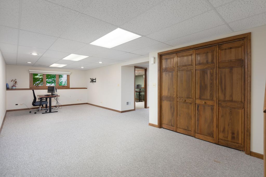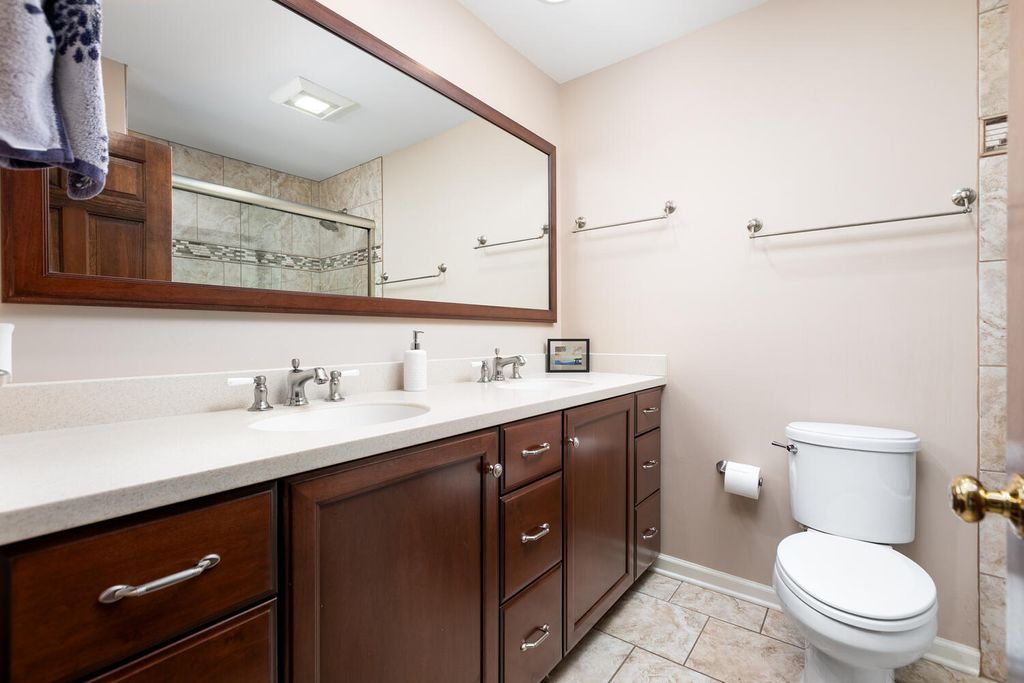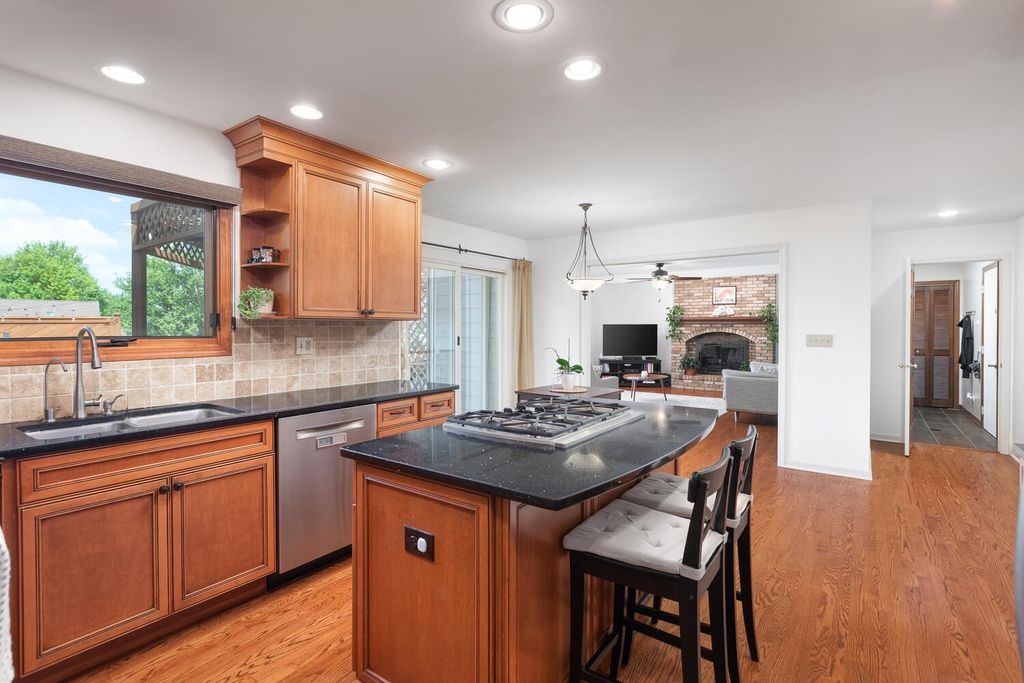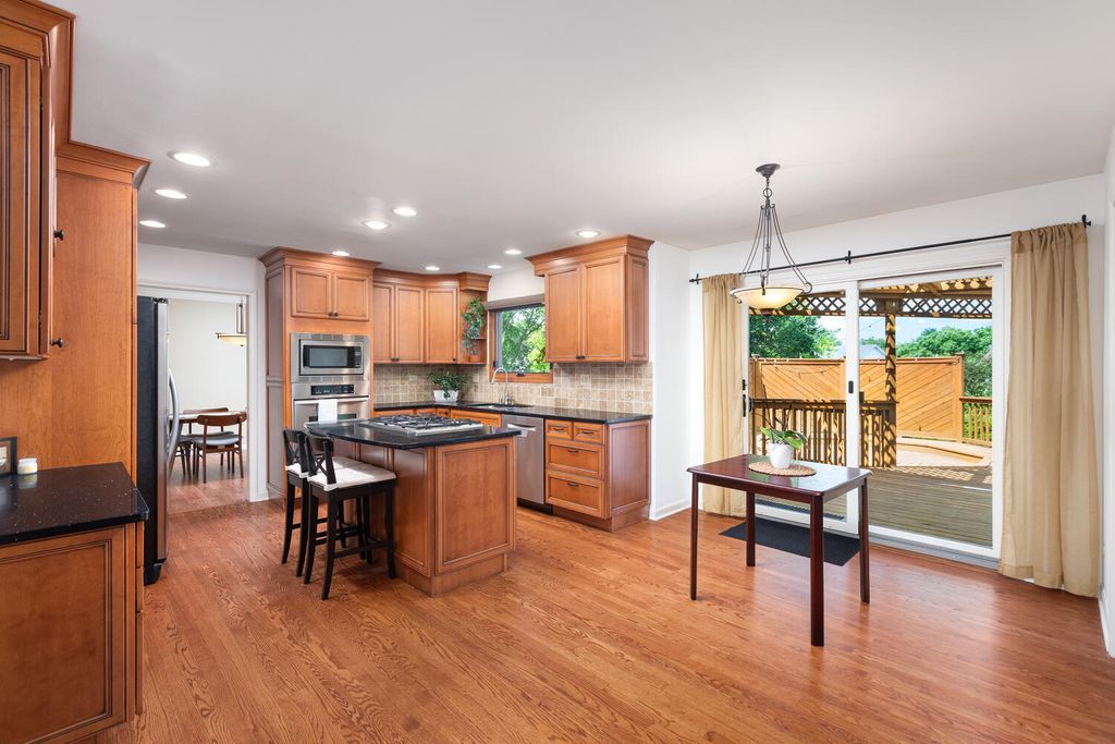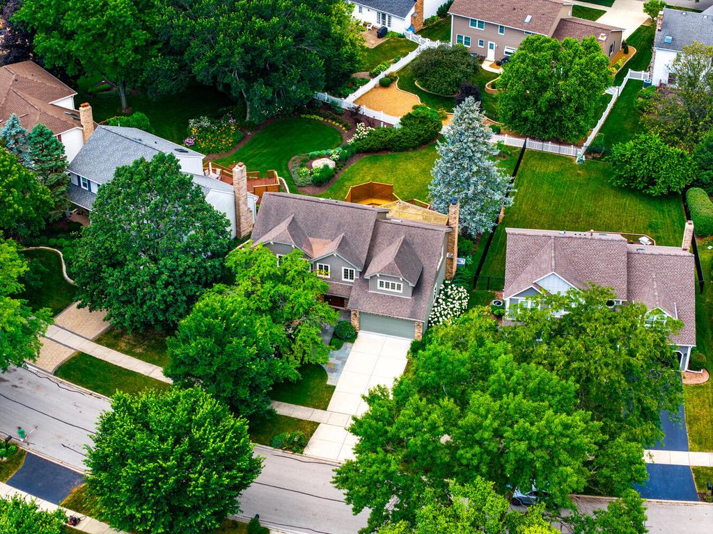 Welcome to this stunning two-story home nestled in Naperville's highly sought-after Farmington Subdivision, with award winning district 203 schools, Riverwood Elementary, Madison Junior High, and Naperville Central High School. Offering 5 bedrooms and 3.1 baths, this spacious residence showcases a timeless and functional floor plan perfect for everyday living and entertaining. The beautifully appointed eat-in kitchen features stainless steel appliances, a cooktop on the island, double oven, granite countertops, and updated lighting throughout. The kitchen flows seamlessly into the cozy family room, complete with a masonary chimney/gas fireplace, built-in beverage center, a charming beamed ceiling, and easy access to the expansive partially covered deck (26x15). Designed for outdoor enjoyment, the deck includes separate hosting and dining areas (23x22), overlooking a nicely landscaped yard that provides both privacy and comfort. A lower patio adds versatility-ideal extra seating. Inside, recently refinished hardwood floors on the first floor, enhanced by large windows that invite in natural light and a strong connection to the outdoors. Upstairs, the generous Master Suite offers vaulted ceilings, an extra-large walk-in closet, a whirlpool tub, separate shower, and double vanity. The additional bathrooms have also been thoughtfully updated with modern finishes. The finished English basement extends the living space with a spacious family room, full bath, and a large fifth bedroom or home office, along with a substantial storage area. Numerous updates include a new water heater (2024), sump pump (2024), furnace and A/C (2018), concrete driveway (2017), windows replaced throughout the home (Marvin and Pella), sliding glass doors (Anderson), and the siding has been replaced with high end fiber cement board. Pool memberships available at Farmstead swim and Racquet Club and Naper Carriage Hill Swim & Racquet Club. Perfectly located near Farmington Park, the Naper Library, shopping, dining, and just minutes from DuPage River Park and Whalon Lake, this home offers comfort, style, and convenience in a prime Naperville location. Don't miss your opportunity-schedule your tour today!