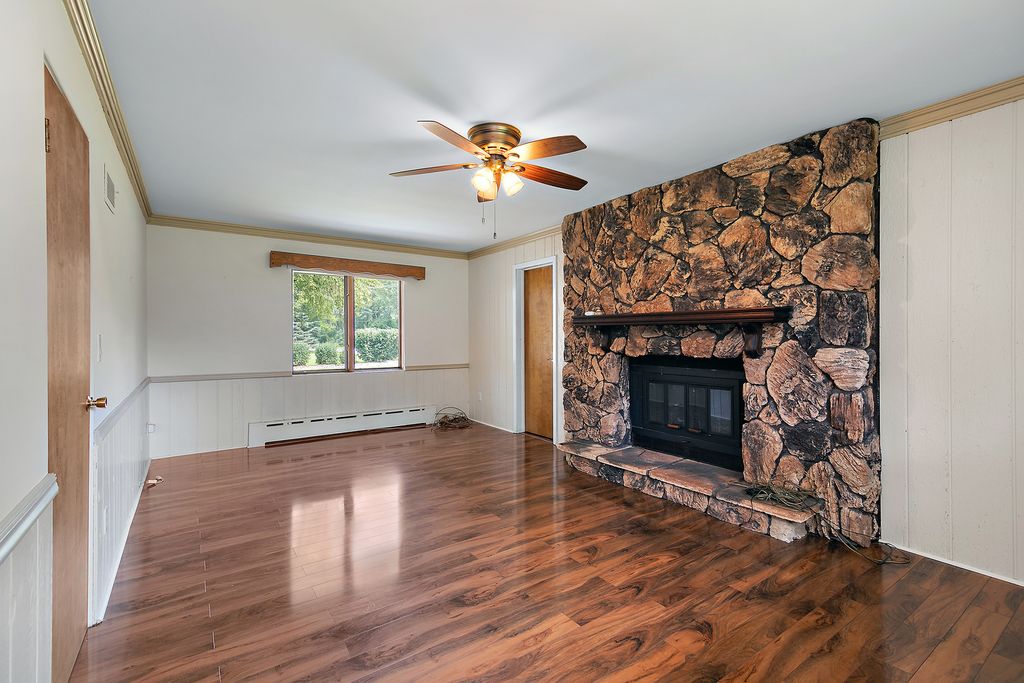Spacious brick ranch on a .33-acre lot offering 1,847 sq ft of comfortable living space! This well-maintained 2 bedroom, 2 full bath home features a bright living room with a cozy fireplace and a large sliding door with backyard views. The dining room, located just off the kitchen, showcases wood laminate floors and another sliding door leading to the expansive patio-perfect for entertaining. The kitchen offers custom cabinetry, Corian countertops, stainless steel appliances, and a door to the backyard. A convenient main floor laundry includes a sink and additional cabinet storage. The main bedroom shares a full bath with shower, while the second bedroom enjoys access to a second full bath. A large family room with a second wood-burning fireplace provides even more living space. With abundant closet storage, multiple exterior access points, a 22x22 attached garage, and a whole-house generator, this home combines comfort, function, and peace of mind.
