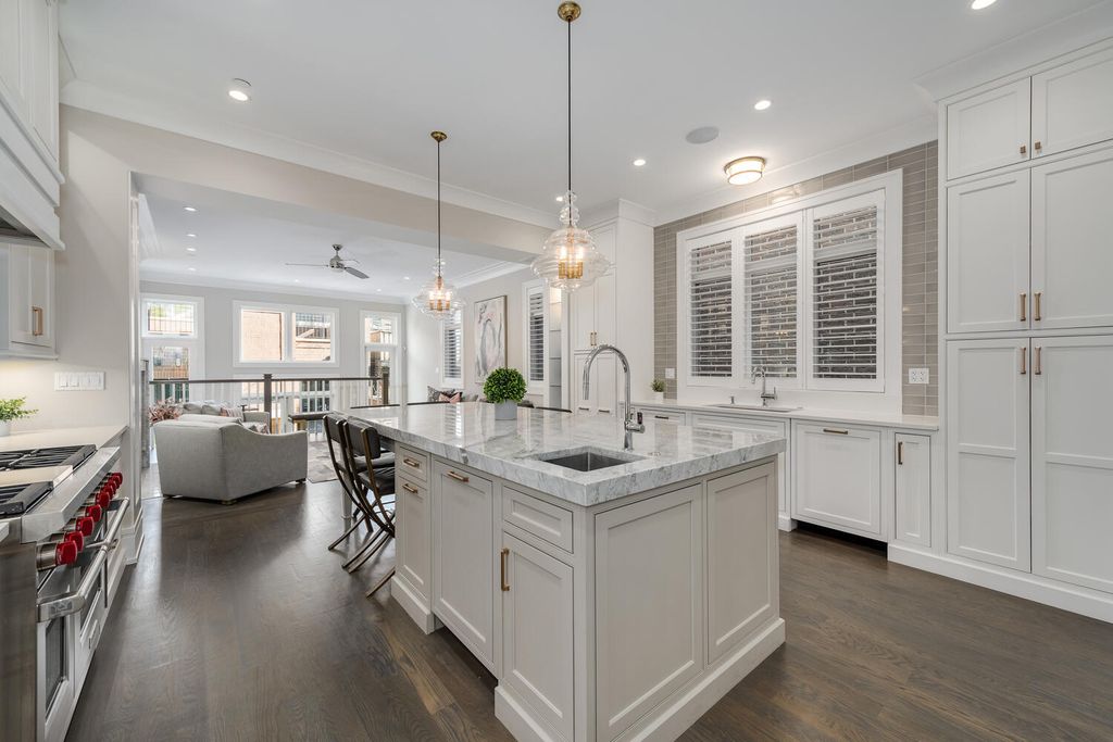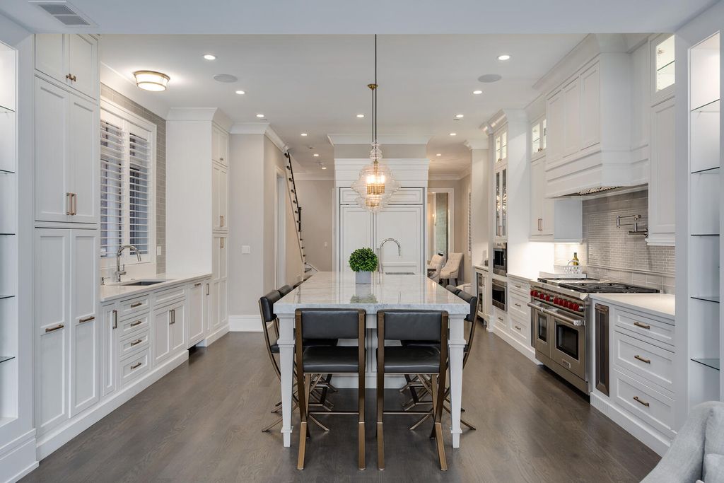 Meticulously maintained Platinum Homes resale with truly unbeatable Chicago skyline views! Located on the coveted east side (not on "L") of beautiful, lush Bissell Street! Completed in 2016, this elegantly designed limestone and brick home offers the ultimate in luxury living. Up to the minute finishes with ECO2 Lutron lighting, triple zone radiant heat, snowmelt on both the front and back patio all controlled through the convenience of your smart phone. Intricate millwork, poplar moldings, custom shutters and white oak plank flooring with herringbone inlay on the main level allow for a true air of sophistication. Step inside, where a gracious foyer welcomes you this outstanding open floorplan. Boasting a formal living and dining room with oversized west facing windows and a gorgeous, stone fireplace. Natural light pours through the main level with west, south, and north facing windows. Entertaining is truly easy in the sleek white kitchen boasting quartz countertops, a custom oversized statutory marble island, Wolf range and coffee maker, two Bosch dishwashers, SubZero fridge and freezer, fantastic pantry and storage space, plus a well-equipped butler's pantry with a u-line beverage center. East facing windows overlooking the incredible outdoor space is the focal view of the great room with custom built-ins surrounding a second marble fireplace. An extension of your home's living space, the adjacent back patio offers an outdoor kitchen with a woodburning fireplace and ample room to dine, relax, or play, plus access to the heated 2.5 car garage. The built-in mudroom area makes for easy in and out access with smart storage solutions. A powder room and ample storage space complete this level. Three ensuite bedrooms make up the second level, including the relaxing primary suite boasting dual walk-in closets, and a marble spa bath with dual vanities, an oversized soaking tub and steam shower. A fantastic laundry center with a sink and great storage space can also be found. Find the most magnificent views of the city just one floor up on your huge penthouse level roof deck! Opening up to an exceptional rec room with a wet bar and a huge guest bedroom and full bath. The lower has it all, featuring high ceilings, a generous family room with great built-ins, a third wet bar, two nicely sized bedrooms, a full white bath and secondary laundry. Perfect location in the heart of Lincoln Park, within walking distance to wonderful restaurants, parks, and Sheffield/Armitage shopping, plus in Oscar Mayer School District!