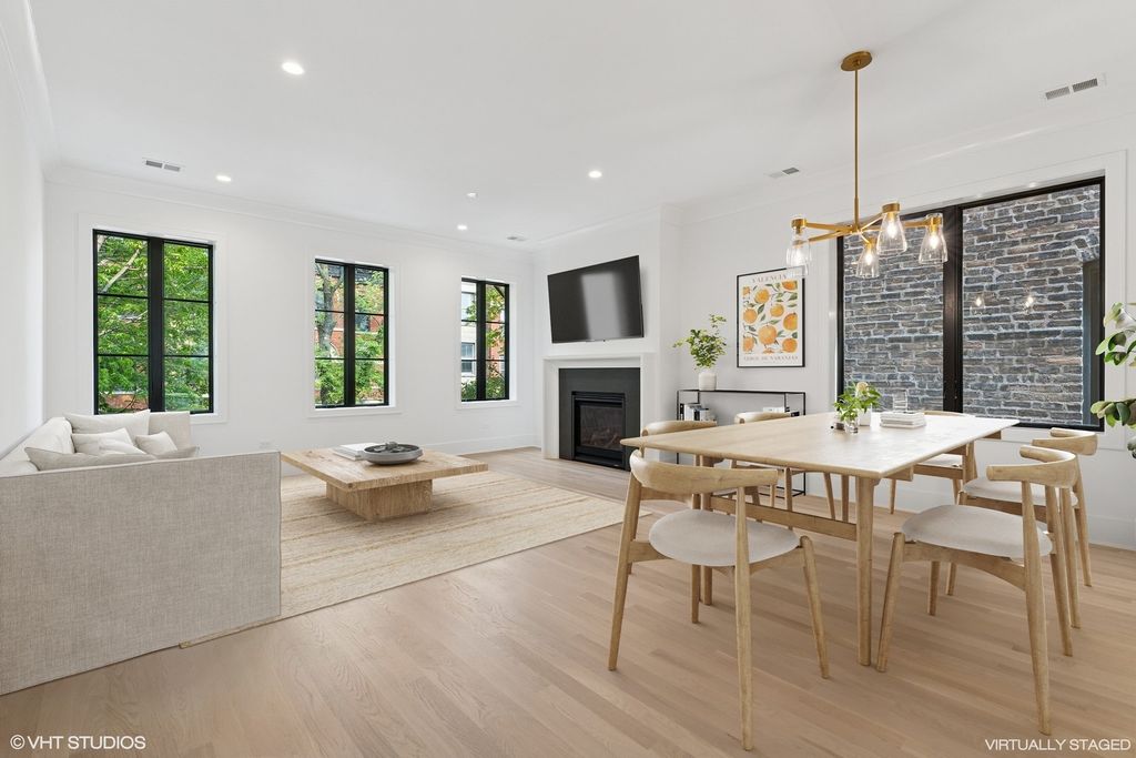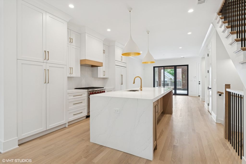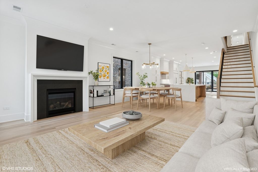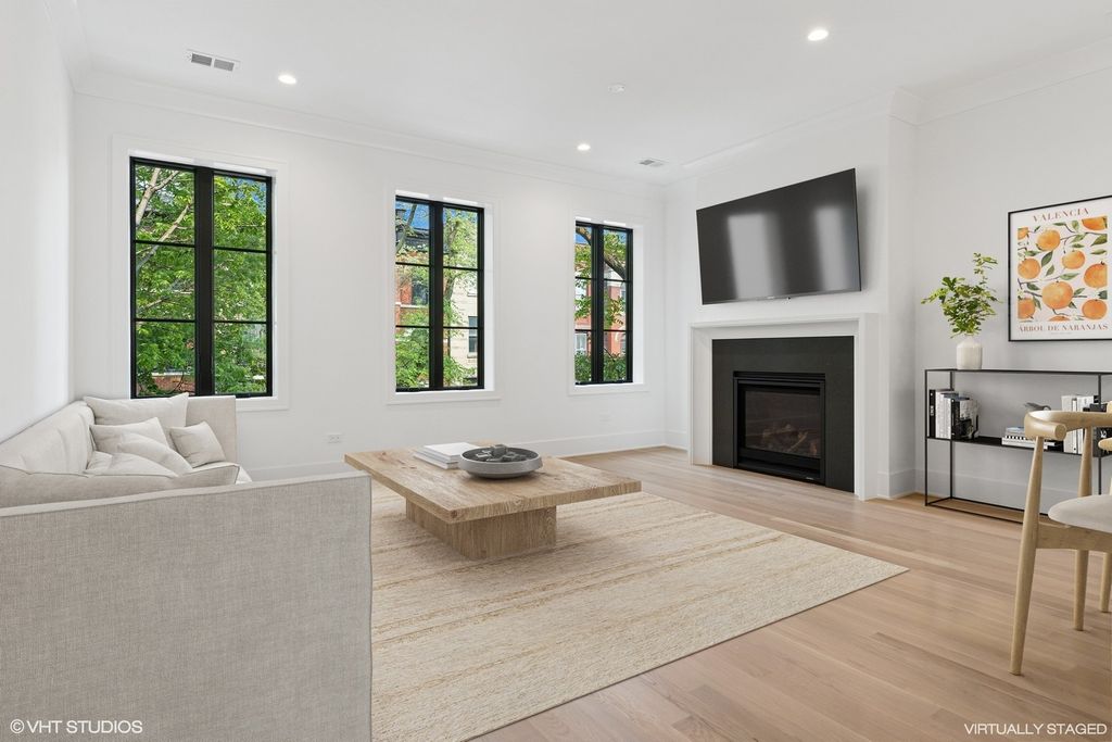 Stately brick and limestone new construction duplex up in an intimate two unit building. Situated in the heart of Lincoln Park, featuring unparalleled finishes throughout and presented by an experienced Lincoln Park builder. This four bedroom three and a half bath home boasts an open floor plan with abundant outdoor space. Expansive white kitchen with professional grade appliances included Subzero and Wolf, stone countertops with stunning waterfall edging and a full height backsplash. Oversized family room / dining with fireplace. Great room with a dry bar opens to a 300 square foot covered patio with an outdoor fireplace perfect for entertaining. Four bedrooms and three bathrooms up with a true laundry room. Owners suite with two walk in closets and designer bathroom including oversized shower with rain, free standing soaking tub, double vanity and heated floors. Generously sized bedrooms, one with on suite bathroom perfect for guests and a versatile fourth bedroom with french doors. Private roof deck completed in pavers with water and gas hook up. Private 1.5 car garage provides additional storage and is per-wired for EV charges / heaters. Property is complete and ready for occupancy, buyers will not be disappointed.