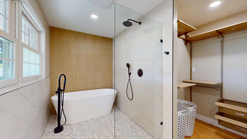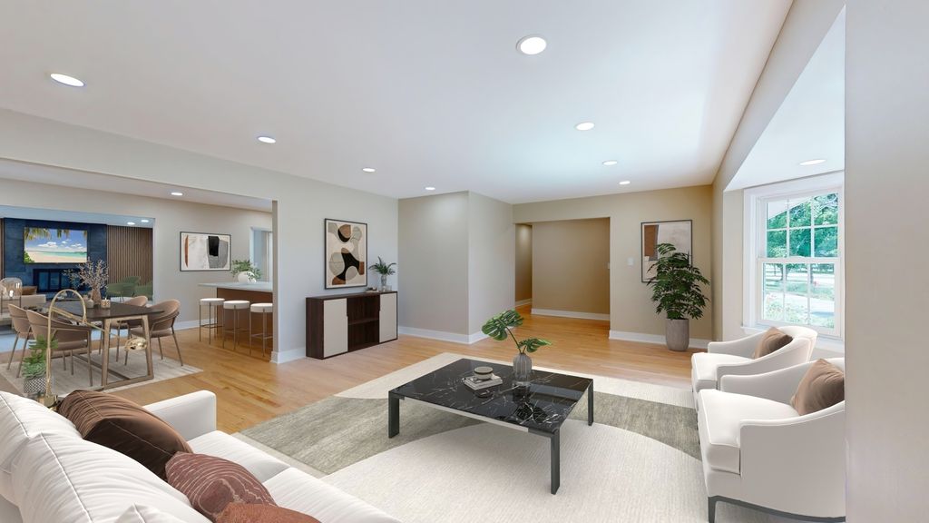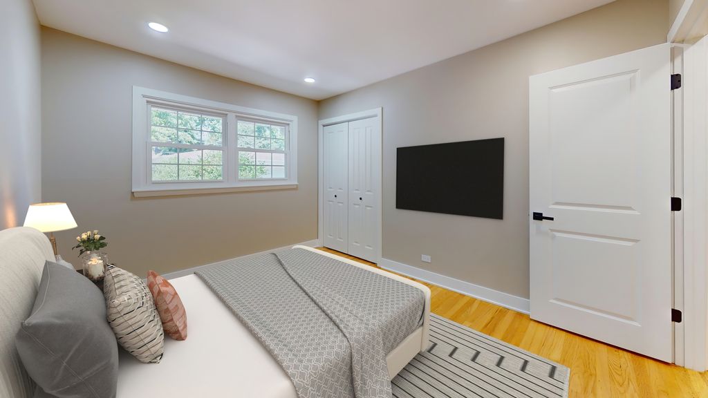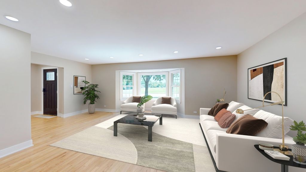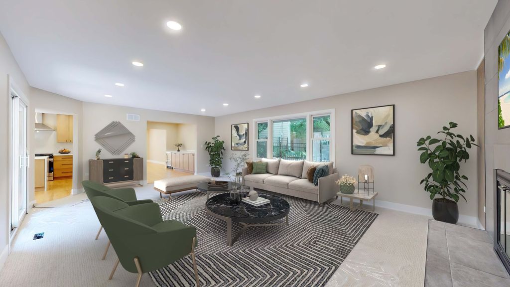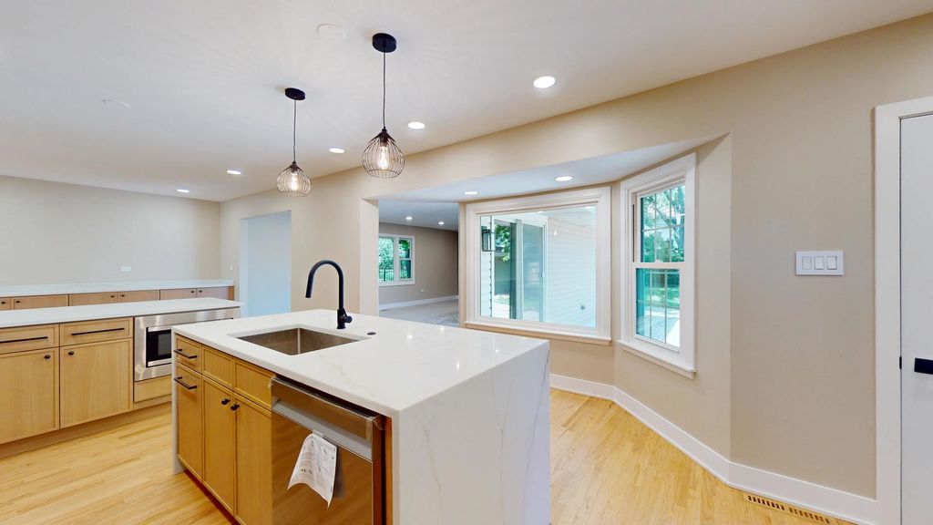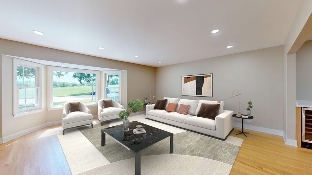 Location! Schools! Updates! Value! Welcome home to a totally renovated ranch that blends modern elegance and functionality. This gorgeous 3 bedroom, 2-1/2 bathroom home with a 2-car garage and finished basement is located in a highly sought-after Libertyville neighborhood, offering a prime location just minutes from schools, parks, downtown, and a variety of restaurants and shops. As you enter, you'll be greeted by a spacious living room with hardwood floors and a bay window that invites natural light into the home. The living room flows seamlessly into the eating area, featuring extra cabinets, quartz countertops, and a beverage fridge. The beautifully updated kitchen boasts European shaker cabinets, a large island plus a peninsula, quartz countertops, and high-end stainless steel appliances making the home perfect for the chef and entertaining! A breakfast bar with quartz waterfall is the perfect spot for your morning joe or a quick meal. The spacious family room offers new carpet, a modern fireplace and an accent wall, with a sliding door leading to the paver patio and backyard. A newly added powder room and first floor laundry adds to the home's function and appeal. The primary bedroom is a true retreat, complete with hardwood floors, a walk-in closet, plus two additional wall closets. The modern en-suite bathroom features a large vanity with two sinks, and a luxurious wet room that includes a freestanding tub and a spacious shower. The two additional bedrooms are generously sized, featuring hardwood floors and wall closets. The hall bathroom is elegantly designed with modern hex tiles, a tub with a tile shower surround, and a large vanity that provides additional counter space. The basement has been beautifully finished, featuring new carpet, recessed lighting, and plenty of space for both a large recreation room and a play area. Additionally, the basement offers a second laundry area and ample storage. With its prime location overlooking an open field, this home is close to everything Libertyville has to offer. Don't miss the opportunity to make this beautifully updated ranch the place you call home!