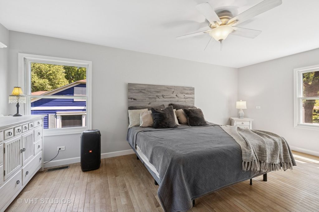 Live the coveted lakeside lifestyle just steps from the water-only 1.5 blocks away-and enjoy being moments from the vibrant Dole Arts Park and Crystal Lake Country Club. This beautifully updated home is perfectly situated in a prime location with access to the optional CCAPOA membership, which offers four private beaches, boat docks, and community events. Inside, the open-concept layout is filled with natural light and warm hardwood floors throughout. The kitchen features 42" oak cabinetry, stainless steel appliances, modern lighting, and a generous breakfast bar that seamlessly connects to the dining area-perfect for everyday living and entertaining. The main level includes a stylishly updated powder room and a convenient laundry area. Upstairs, the spacious primary suite impresses with a walk-in closet outfitted with custom built-ins and a fully remodeled, spa-inspired ensuite bath. Additional bedrooms are served by an updated hall bath with contemporary finishes. The expansive family room opens onto a newer deck complete with a hot tub and pergola, all overlooking a private, fenced backyard-ideal for relaxing or hosting guests. Recent updates include a freshly painted interior and exterior, central air system (2023), and a roof that's approximately 10 years young. This is a rare opportunity to own a move-in-ready home in one of the most desirable neighborhoods near the lake-don't miss it!