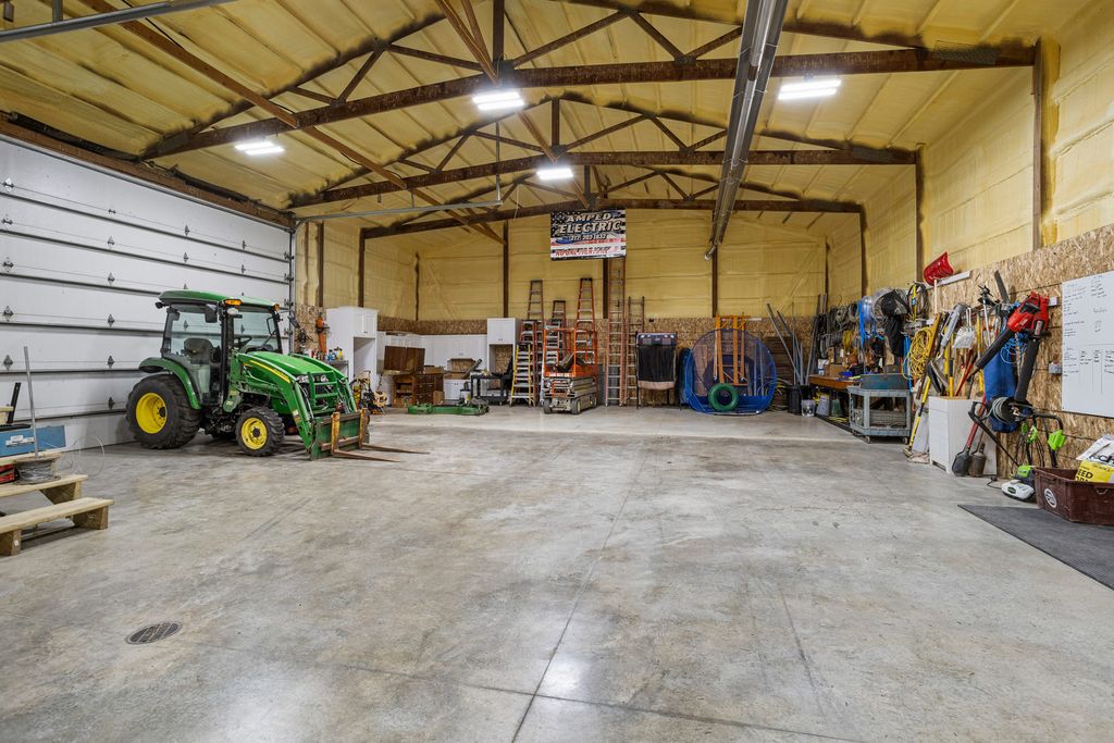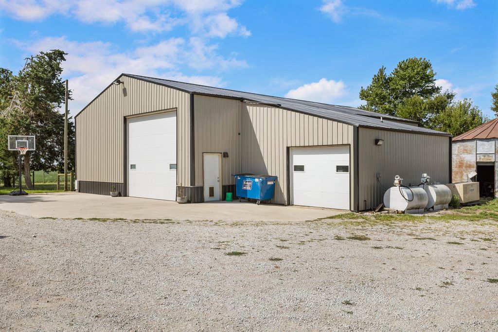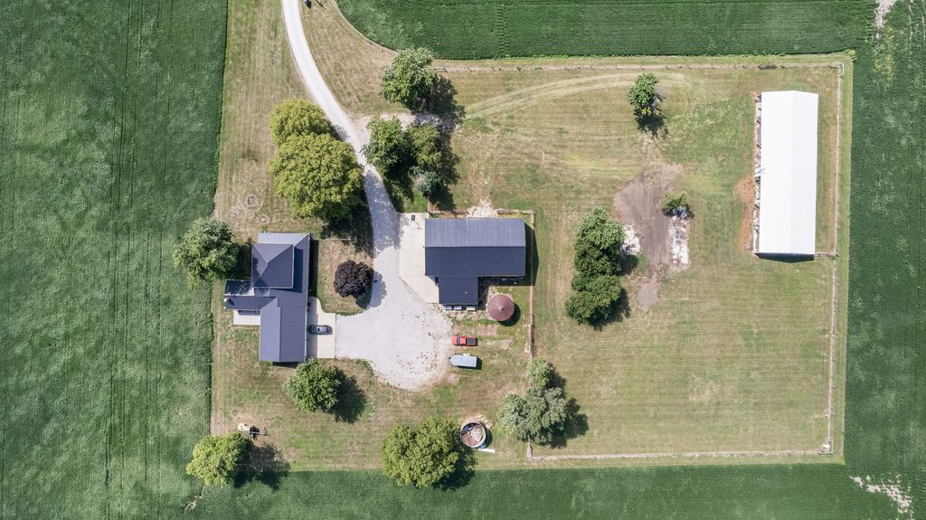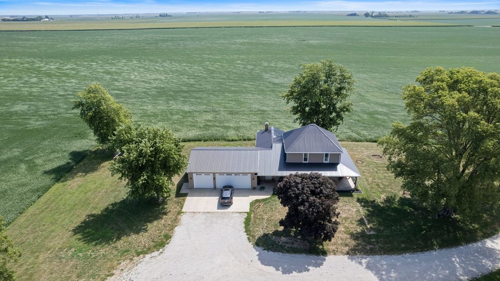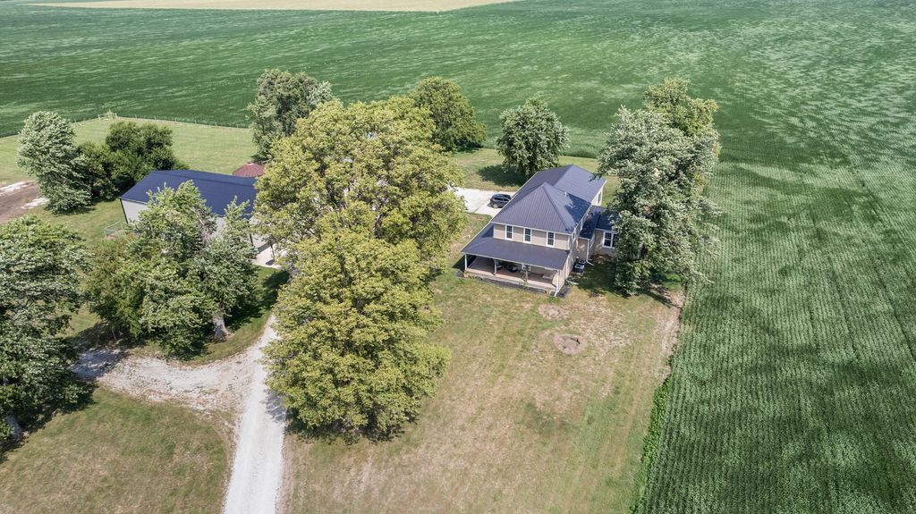 The RURAL REMODEL on 3100 North is a delightful, metal-roof 2-story with decades of history. If only walls could talk! Come home to 4BR, 2.5BA and an amazing 3-car attached garage. Resting on just under 4 acres, between the farmhouse, magnificent metal-finished shop w/office AND bathroom, the possibilities are endless. As with most country homes, enter first into the back porch and the amazement begins with ample windows offering natural light, outside views, a DROP ZONE for coats, shoes, backpacks and such, an opening between porch and kitchen, entry to the basement and beautiful stained glass window on exterior passage door itself. Proceed to the open concept kitchen into living room delighted by a LARGE ISLAND with abundant storage and tasteful pendant lighting above, further detailed with highly desired STAINLESS STEEL APPLIANCES and PANTRY. While working in the kitchen, you can't help but welcome the gathering feature with the seamless space into living room with WOOD BURNING STONE FIREPLACE, cozy wood floors and window views to the North, South and East. POWDER ROOM at halfway point between living room and kitchen. On a nice evening, enjoy the STAMPED CONCRETE PATIO off living room, whether grilling out, playing in the yard or just taking in a quiet evening listening to the sounds of nature and gazing at the stars. To the other side of kitchen is a separate DINING ROOM with wood floors, three uniquely positioned windows to change it up a bit and classy pendant lighting above DR table. The spacious PRIMARY SUITE will not disappoint with spacious bedroom, separate shower, large free-standing whirlpool tub, dual vanity, separate water closet, large WIC which is conveniently located next to LAUNDRY ROOM. Head up to the 2nd level for THREE BEDROOMS and a FULL BATH. No fear of heat/cooling distribution with TWO HVAC SYSTEMS! While the basement is not finished, that hasn't stopped the current space from being utilized for entertainment and "hang out space" plus extra storage space. The 3-car attached garage has a metal ceiling with significant lighting which is always a huge plus. Take the tour outside and be wowed by the to-die-for SHOP! Two large overhead doors, one garage-style overhead door and a passage door. HEATED and INSULATED with CONCRETE FLOOR, separate OFFICE with BATHROOM, that can still utilize garage door to exterior, offering flexibility for future use. Large open livestock building on the South/West of property for future critters or perfect for equipment storage. OK,....OK....I'll stop now. Check out all the photos and AERIAL VIEWS to get the full feel for what this property has to offer. You'll be glad you did.