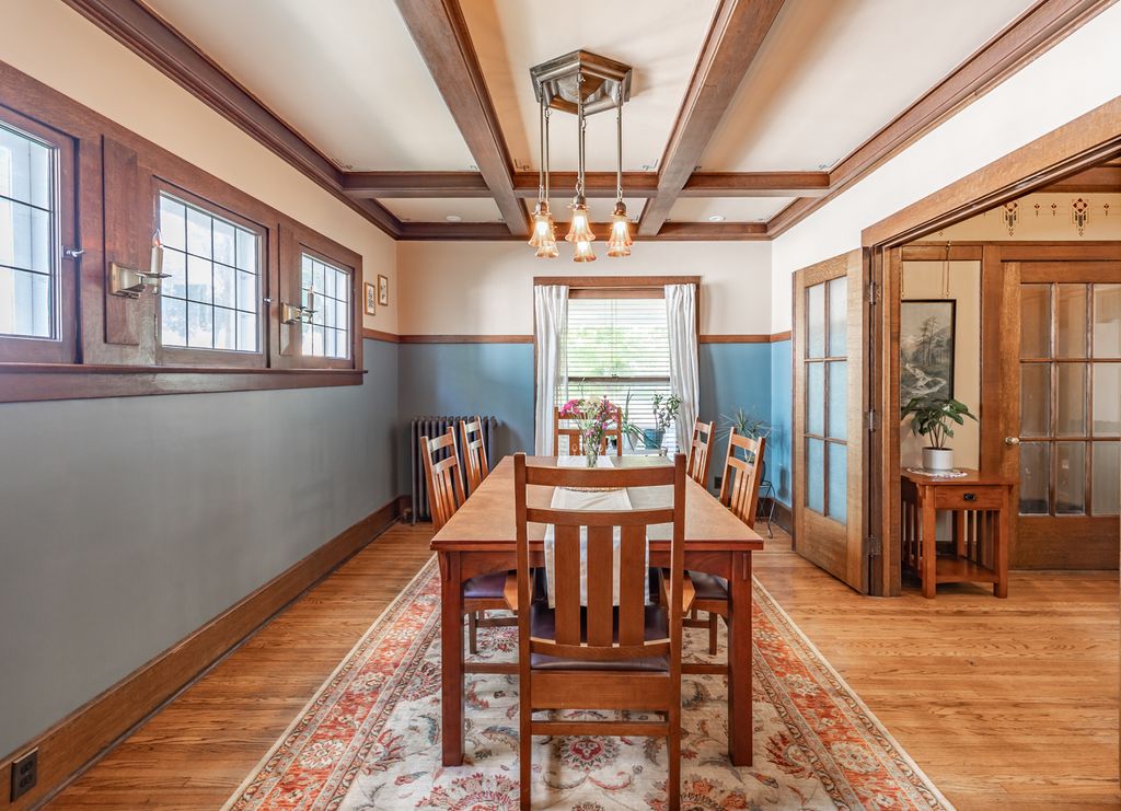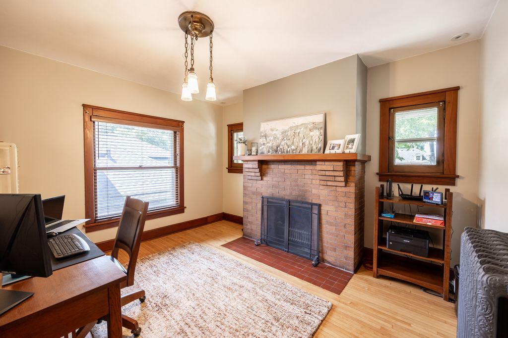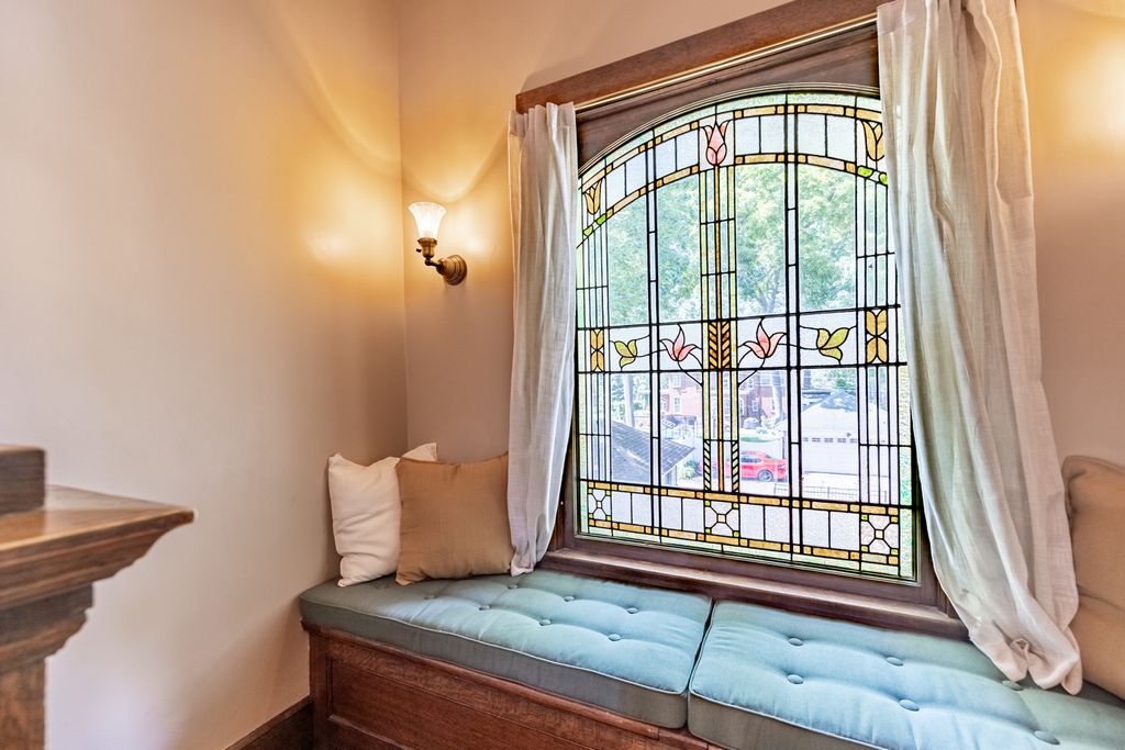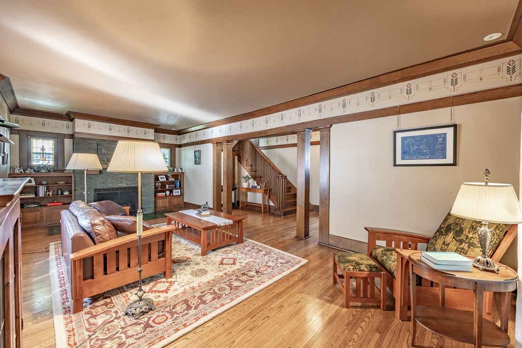 Pleasing Prairie Perfection on Spring, in Elgin's Gold Coast. Wow! a 3/4 bedroom prairie-style home with details galore. Beautiful wood trim, floors, and built-ins, all original. Lights fixtures that are either original or appropriate prairie style, including a Steuben fixture in the dining room. On the main floor there is a living room with a wood-burning fireplace, flanked by two stained glass windows and built-in cabinets. A bench seat is located in a bay window. Enter thru the original French doors to the dining room, which has a coffered ceiling and a showcase Steuben light fixture. A swing door separates the dining room from the cozy kitchen, with the original ceramic floor and freshly painted cabinets and walls. The 1950's era refrigerator might not have enough space for today's needs, but it is a classic. Besides, right downstairs there is an additional refrigerator and freezer to accommodate your food. The first floor powder room with the original ceramic tile, has just been freshened up. Going up the beautiful oak staircase you can take a seat on the bench seat, and look up behind to view a large, prairie-influenced art window. At the top of the stairs is a curved balustrade and a built-in linen cabinet. The floors on this level are all original maple. One of the three bedrooms has two separate closets. Another bedroom has a wood-burning fireplace, flanked by leaded glass windows. The full 9'x8' bathroom has the original bathtub and tile. The last room could be a fourth bedroom or an office. There is an attic, accessible by a walk-up stair, that has lots of storage space. The basement is dry and clean, as it has been waterproofed.