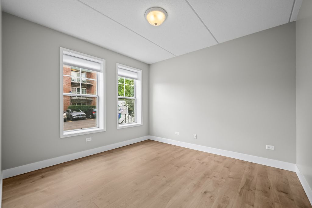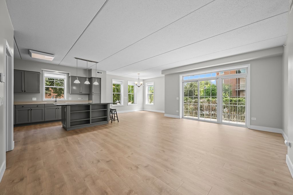 Rarely available first floor unit in prestigious Benchmark of Palatine! Directly across from Towne Square Park and just two blocks from the Palatine Train Station - restaurants and shops are right out the door. This corner unit offers a magnificent open floor plan featuring a spacious living area and a large center-island kitchen with stainless steel appliances. The large primary bedroom offers a walk-in-closet and a private master bath with separate tub and easy-access walk-in shower. The second bedroom is also generously sized. Convenient in-unit laundry room. Check it out. This special property won't last long!