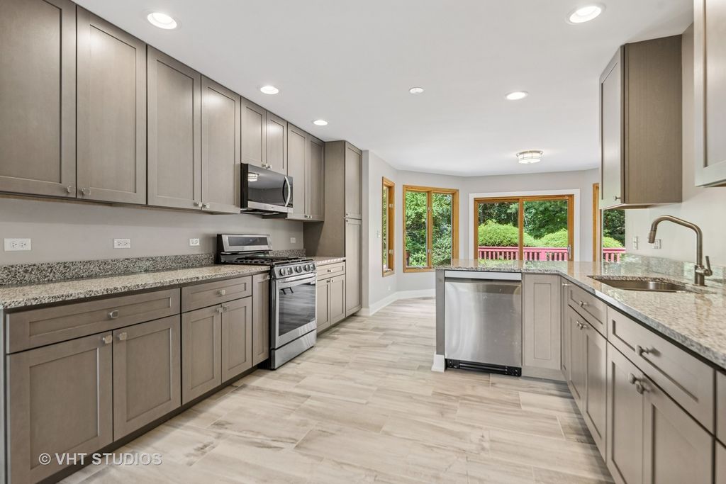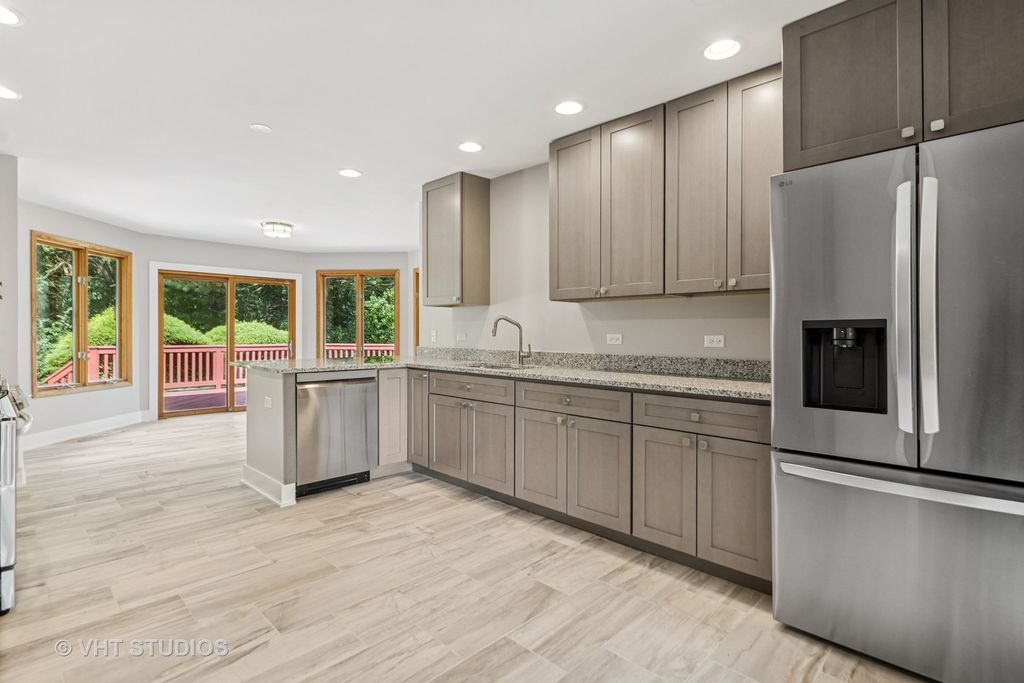 Beautifully renovated quality custom brick three bedroom ranch home on over 1/2 acre wooded land. Everything NEW including electrical, plumbing, HVAC, tankless hot water heater, two full bathrooms and kitchen with all new cabinets, granite countertops and appliances. Hardwood flooring in bedrooms, living room and dining room. Enter into the large living room with fireplace and large window overlooking front yard. Formal dining room leads to kitchen with breakfast area overlooking amazing yard with large deck and brick patio. Full finished basement with fireplace. Two car attached garage. Highlands school district. Perfect location close proximity to downtown Western Springs, Hinsdale and Burr Ridge Village Center.