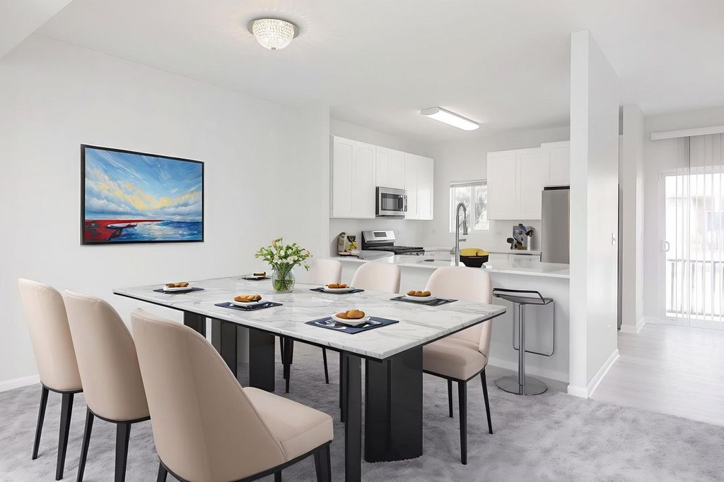 Wake up each day to the gentle shimmer of pond views framed by graceful trees, right from your own windows. This beautifully remodeled 2-bedroom, 2.5-bath townhome welcomes you with an airy open-concept design, where the living, dining, kitchen, and eating areas flow effortlessly together-perfect for gatherings or quiet evenings at home. The updated kitchen with granite countertops, featuring sleek new stainless steel appliances, opens to the sunny eating area, making every meal feel warm and inviting. Just beyond, the dining space offers a picturesque backdrop of nature's beauty, adding a sense of peace to your daily routine. Downstairs, the English basement is a space of endless possibilities-transform it into a cozy office, an extra bedroom, or a playful retreat. With fresh carpet underfoot, fresh paint and a location within walking distance to the playground, you're surrounded by convenience. Shopping, dining, and easy highway access are only moments away, yet you'll feel a world apart in your own tranquil haven. Come and experience it for yourself.