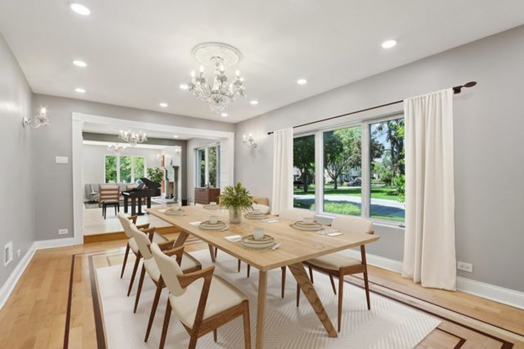 Welcome to Prestigious Knox Avenue - A Distinctive Residence of Style and Sophistication. Set on one of the most desirable streets in the neighborhood, this exquisite stone estate stands as a true architectural statement. Thoughtfully reimagined from top to bottom, this 4-bedroom, 3.5-bathroom home offers over 3,300 sq ft of refined living space above grade, designed for today's discerning Chicagoland buyer. From the moment you arrive, the home captivates with its impressive curb appeal - a full stone facade, detailed hardscaping, and a paver driveway set the tone for the quality found within. Inside, rich etched hardwood floors flow seamlessly through freshly painted interiors, complemented by designer lighting including recessed can lighting and elegant chandeliers. The heart of the home is the beautifully remodeled kitchen featuring cherry shaker cabinetry, sleek quartz countertops, and high-end finishes. Just off the kitchen is a charming deck with a hot tub perfect for relaxation. Adjacent is a stylishly updated powder room with a modern tiled accent wall and a versatile main floor bedroom - ideal for guests or an office. The inviting main living area boasts a gas-burning fireplace and ample natural light, while the finished lower level adds another dimension of space - perfect for a media room, play area, home gym, or guest suite - complete with a luxurious full bath featuring a full-body steam shower and exquisite tilework. Upstairs, four spacious bedrooms include a spectacular primary suite, offering a serene retreat with a gas fireplace, expansive windows, and a spa-caliber ensuite showcasing intricate mural tilework, a double vanity, steam shower, and a third fireplace for added ambiance. A charming loft area provides a perfect spot for a reading nook or home office. Located just minutes from downtown Chicago, and within close reach of award-winning schools, premier shopping, parks, and dining, this exceptional residence truly offers the best of suburban tranquility and urban convenience. A rare opportunity to own a timeless, fully renovated home in an unbeatable location.